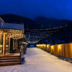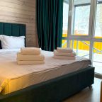 Отдыхали семьёй 4 человека, что хочется сказать об отеле. Отель молодой, территория ещё обустраивается. Наслаждаться красивым видом можно как на террасе за завтраком, так из окна спальни. Если вы хотите отдыхать под зеленью деревьев, то вам не сюда. Рядом с отелем можно прогуляться в лес, где течёт горный ручей. На территории и рядом отсутствуют магазины, но до центральной улицы можно пройти пешком минут 10 спокойным шагом. В домике было тепло, удобные матрасы. Вся мебель и посуда новые, в гостиной большой телевизор. На территории течёт горный ручей, это придаёт свой шарм территории.