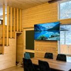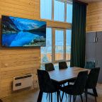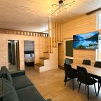 Для комфортного размещения гостей предоставляется деревянный дом с панорамными окнами, из которых открывается потрясающий вид на горные вершины. База отдыха располагает всеми современными удобствами: просторными спальнями с качественным текстилем и мягкими матрасами, уютными гостиными, где вы можете расслабиться после активного времяпрепровождения. В распоряжении гостей бесплатный интернет, тапочки, постельное белье и халаты.