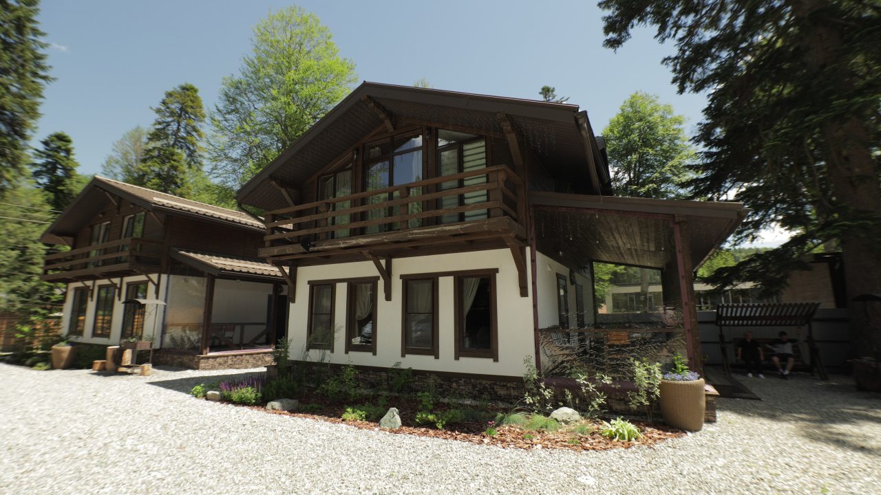 Приехали с моей семьей отдохнуть в этот замечательный край, который меня покорил своей красотой. Шикарные шале посреди тихого леса, оснащенные всеми удобствами для комфорта своих постояльцев. Питание тут самостоятельное, для чего организована общая кухня и мангальные зоны. Море позитивных эмоций от этого места!