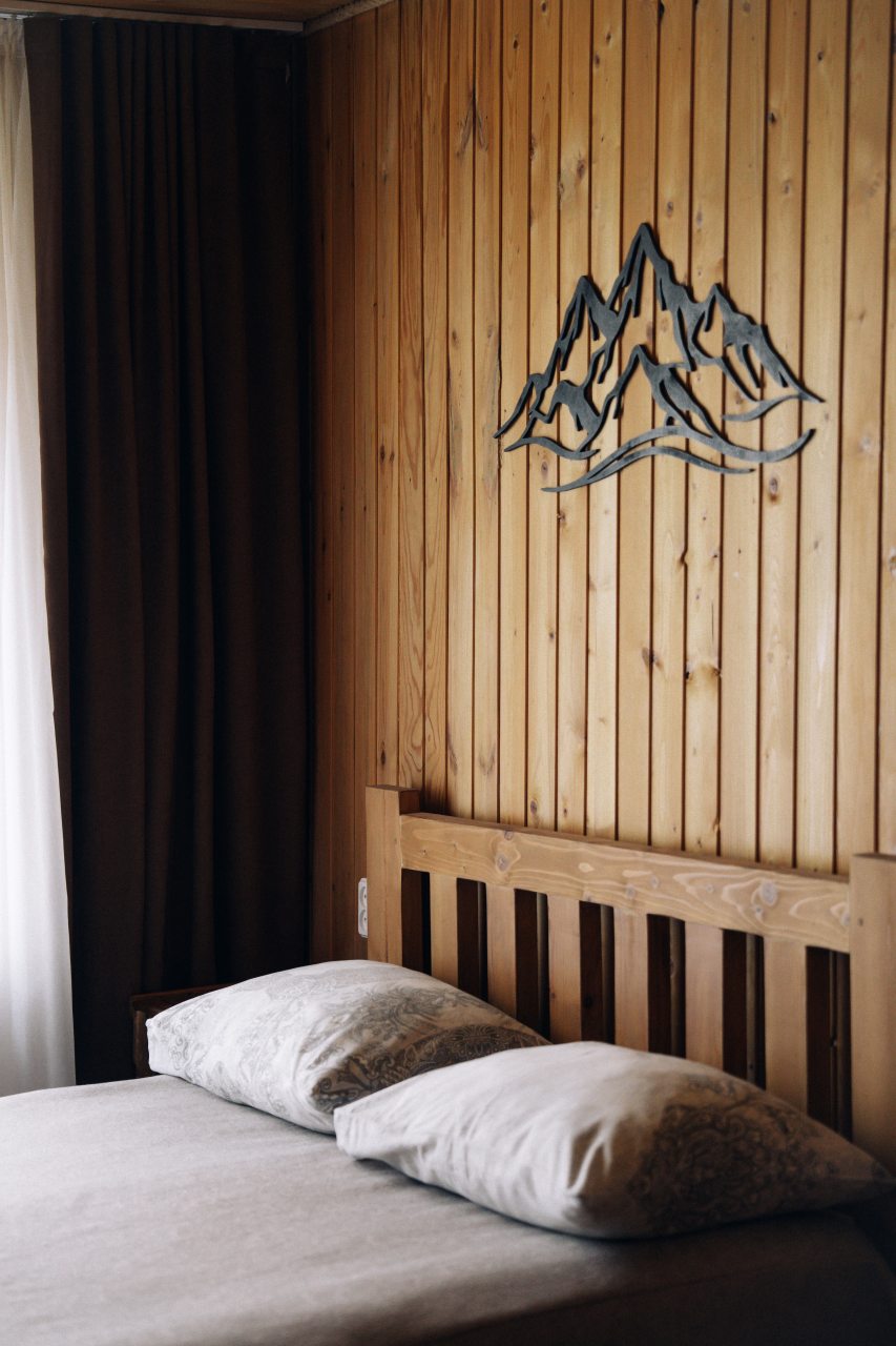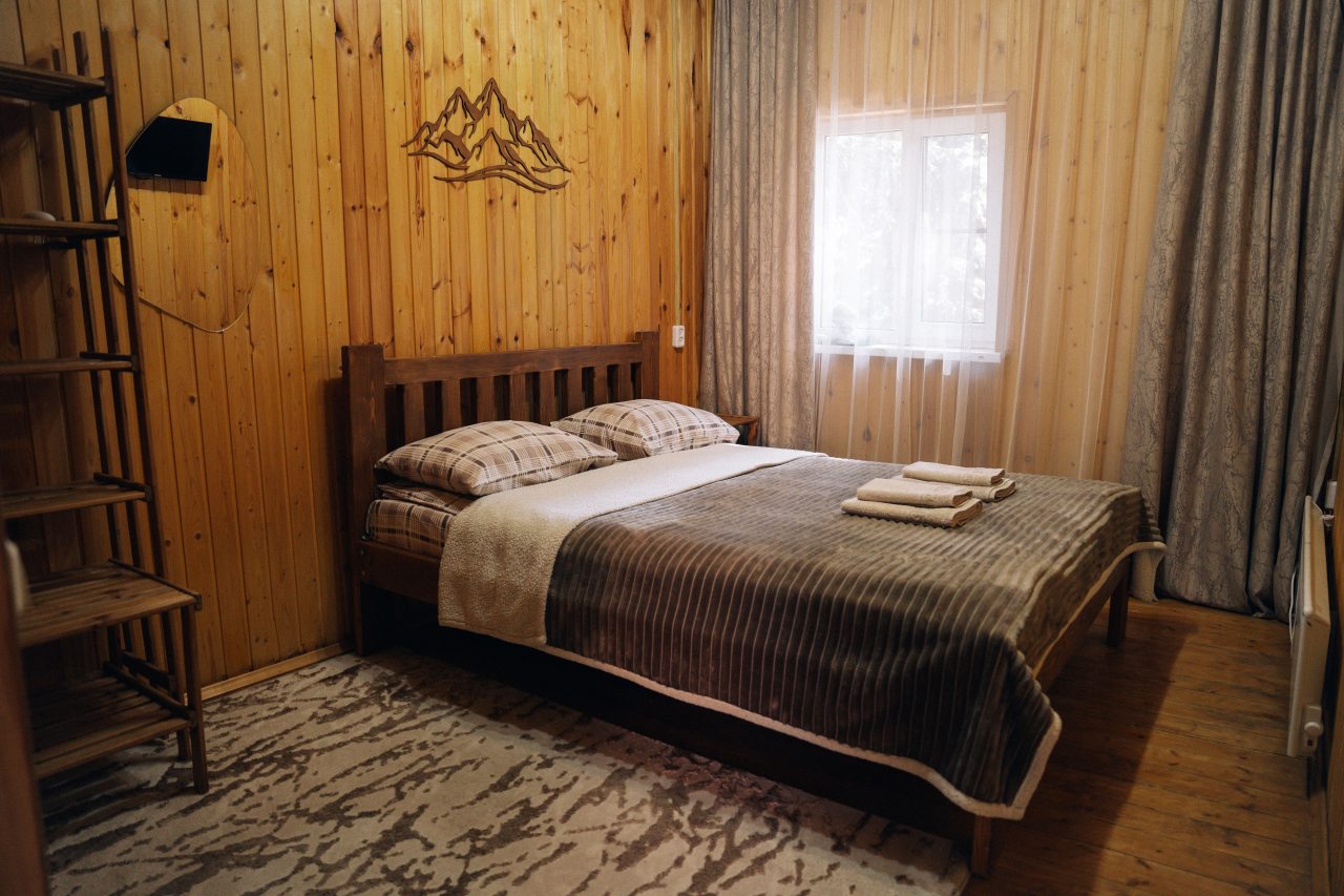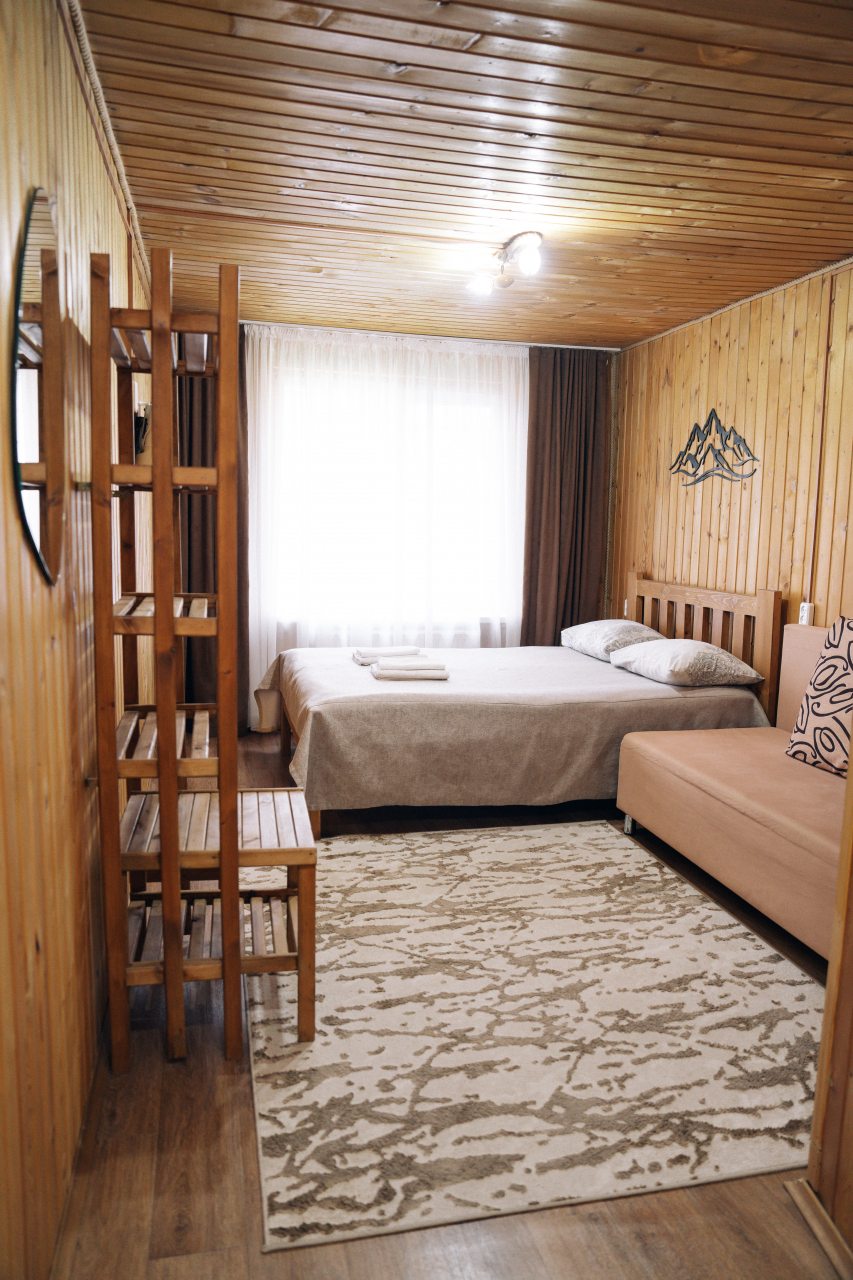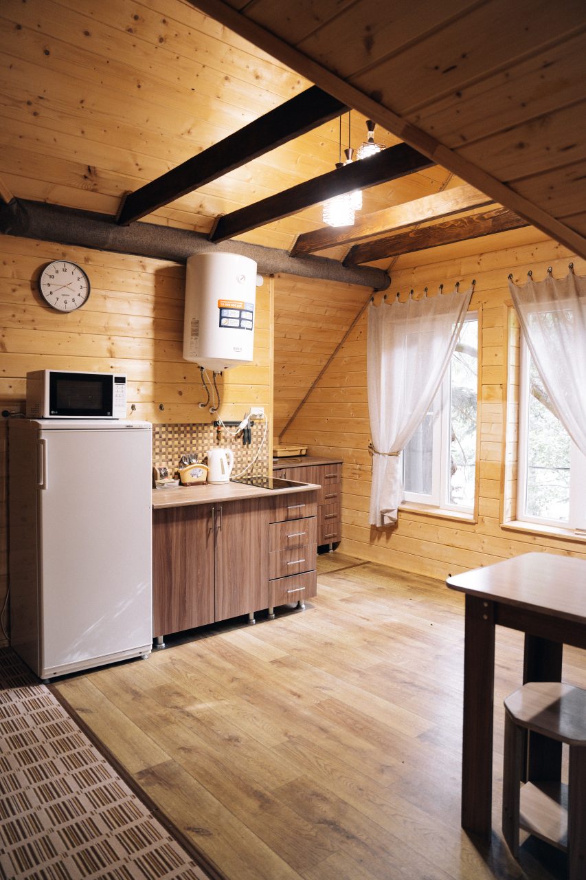 Чисто, уютно, развитая территория (мангалы, беседки, костровище), есть кухня со столовой. Летом может не хватать кондея, но кто едет в горы, чтобы сидеть в отеле?! :)