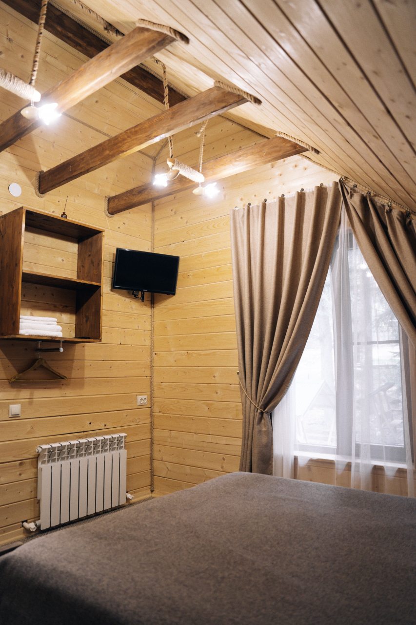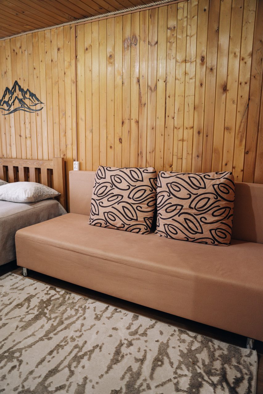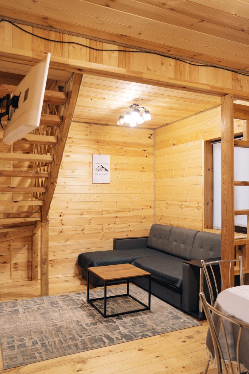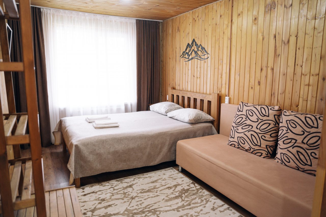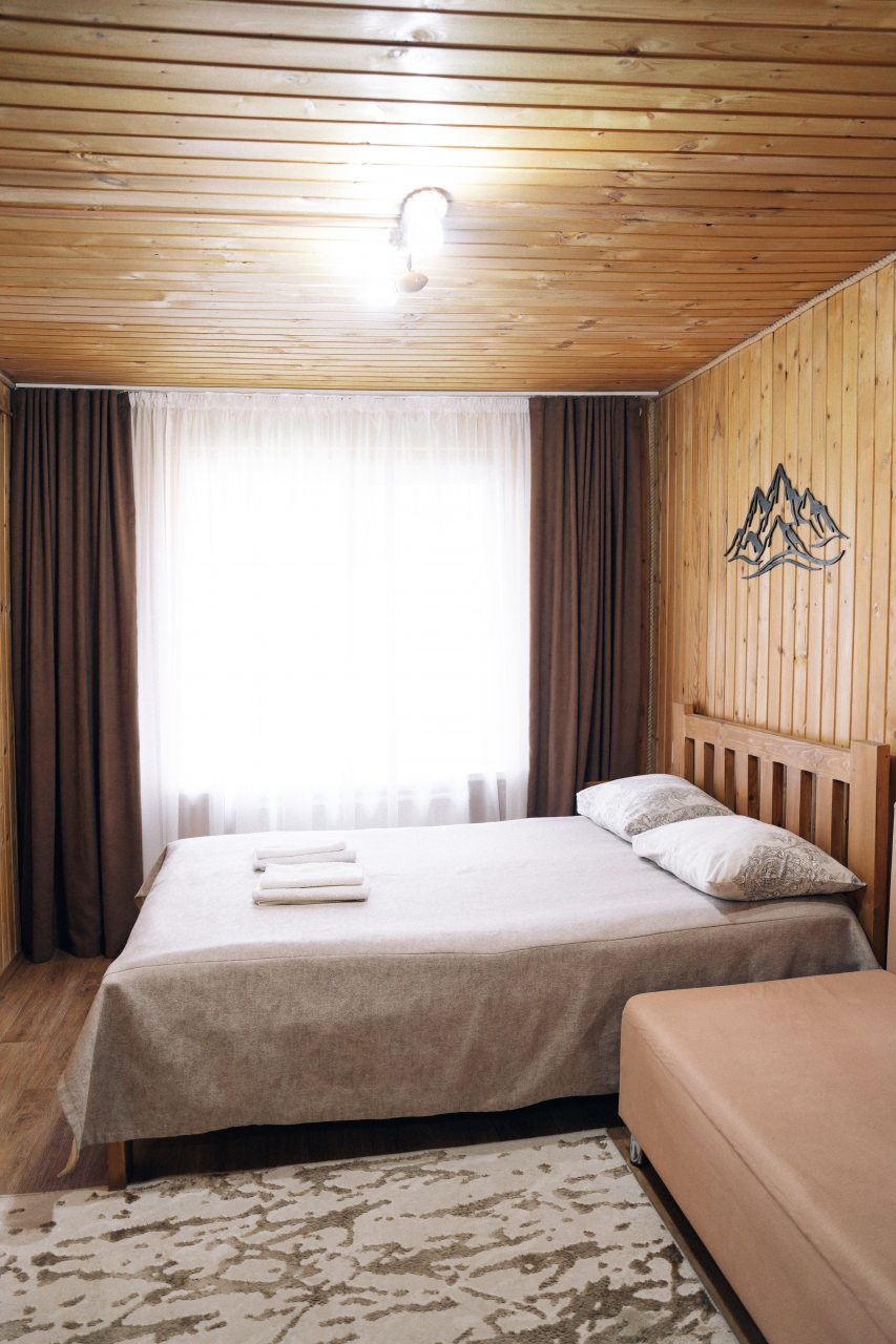 Чисто, уютно, развитая территория (мангалы, беседки, костровище), есть кухня со столовой. Летом может не хватать кондея, но кто едет в горы, чтобы сидеть в отеле?! :)