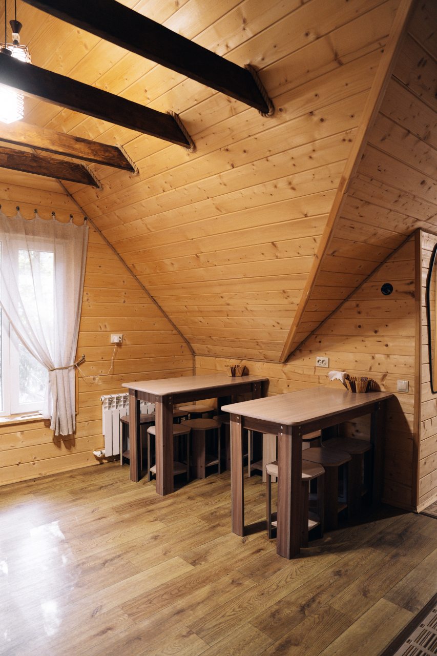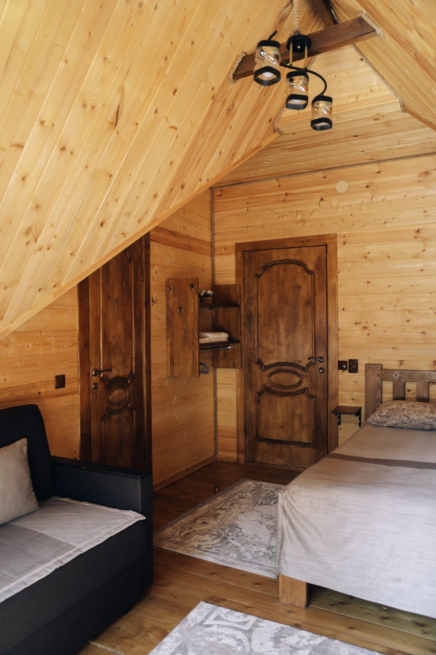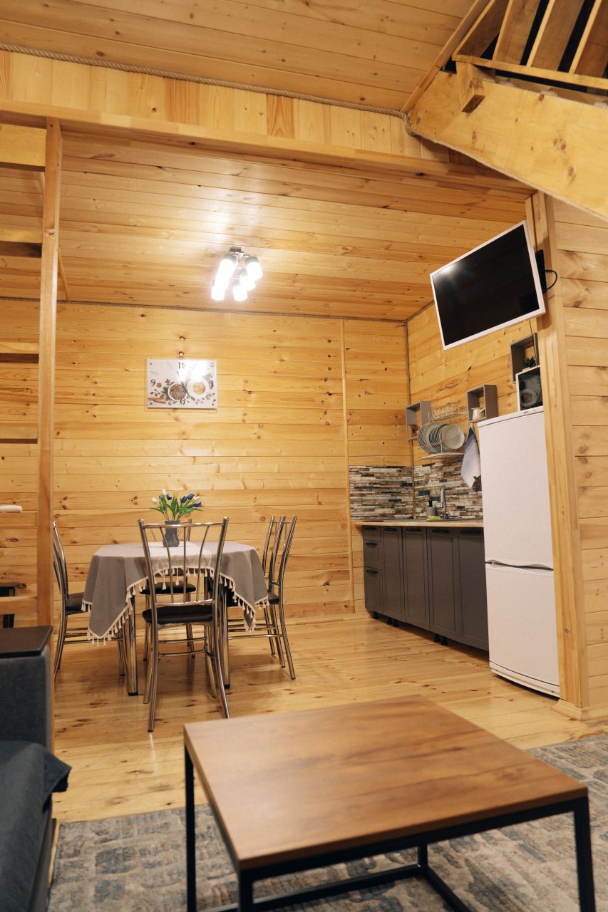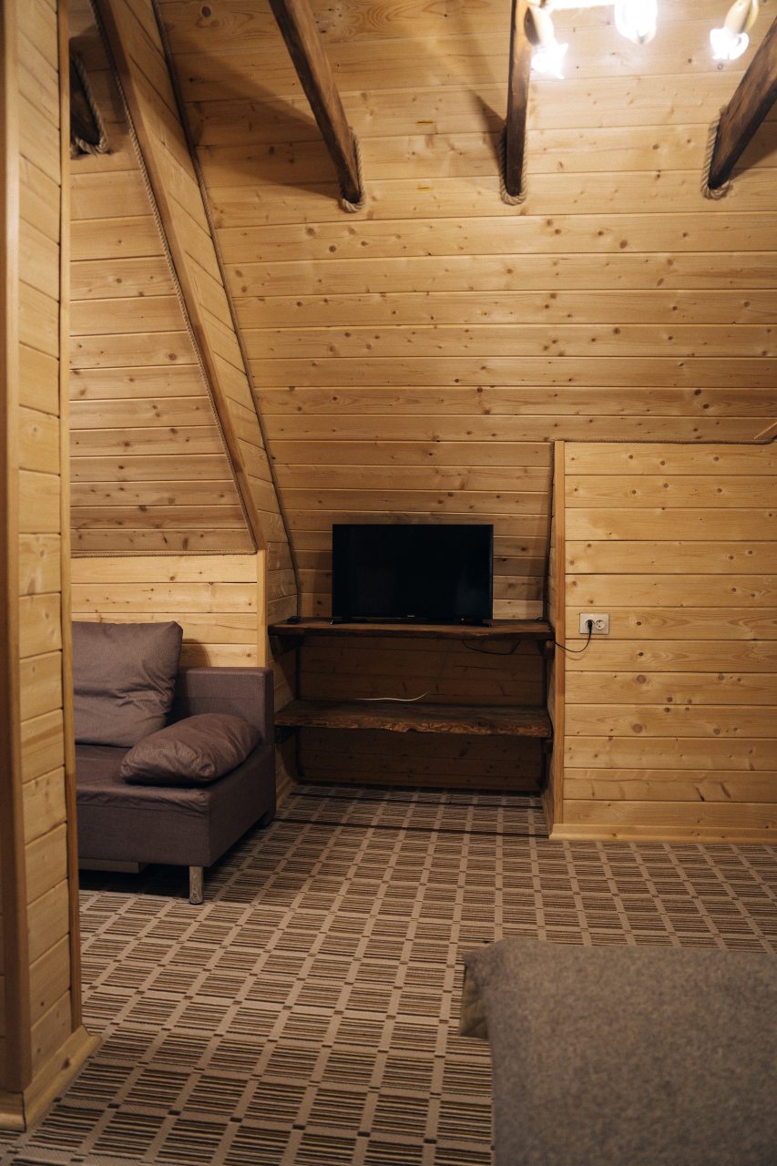 Чисто, уютно, развитая территория (мангалы, беседки, костровище), есть кухня со столовой. Летом может не хватать кондея, но кто едет в горы, чтобы сидеть в отеле?! :)
