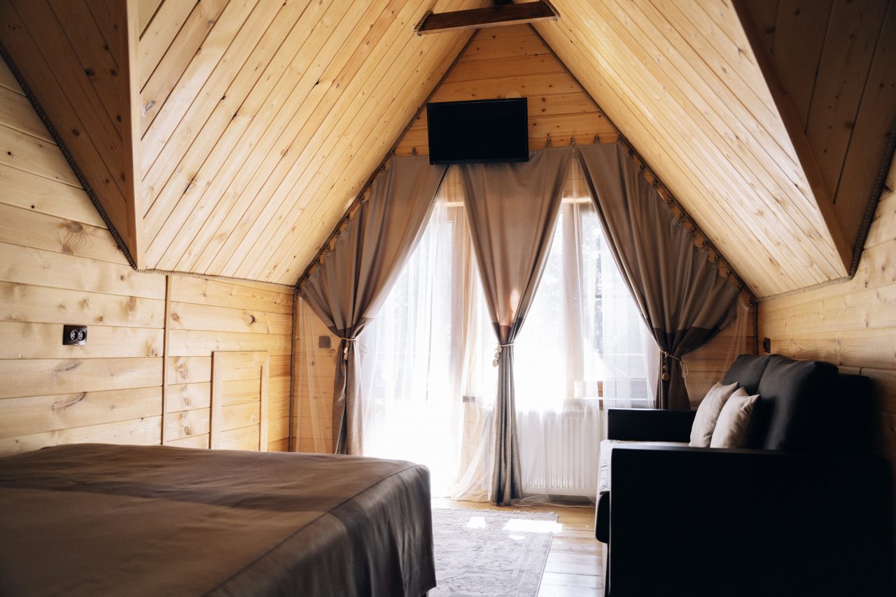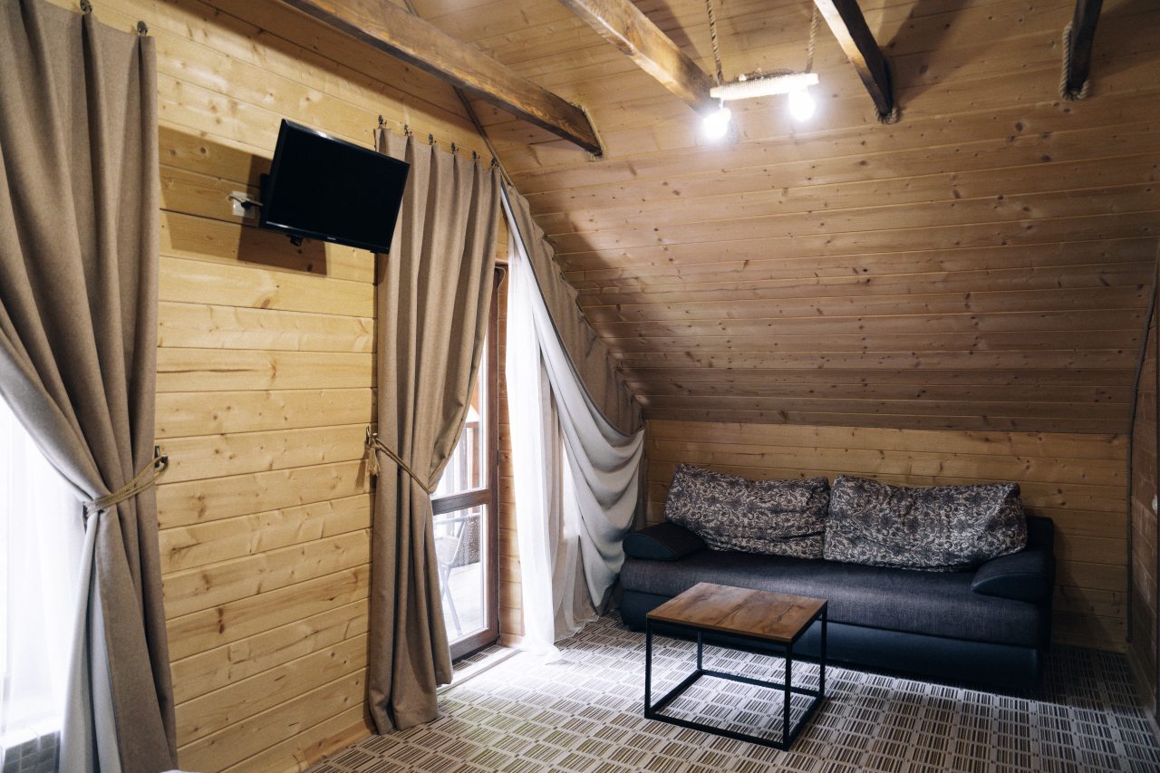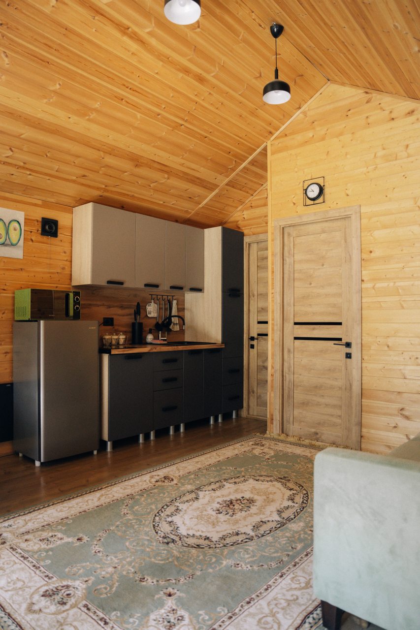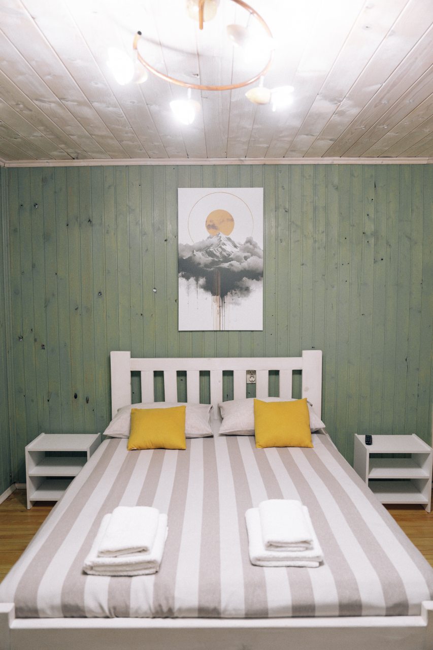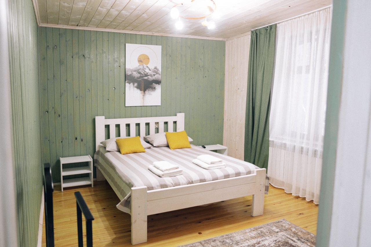 Чисто, уютно, развитая территория (мангалы, беседки, костровище), есть кухня со столовой. Летом может не хватать кондея, но кто едет в горы, чтобы сидеть в отеле?! :)
