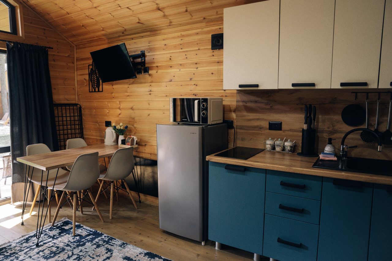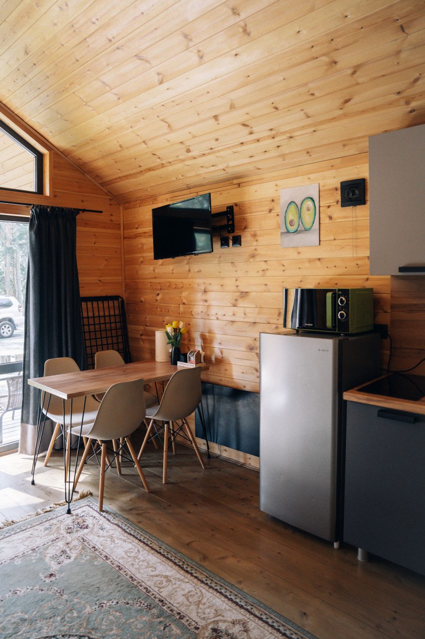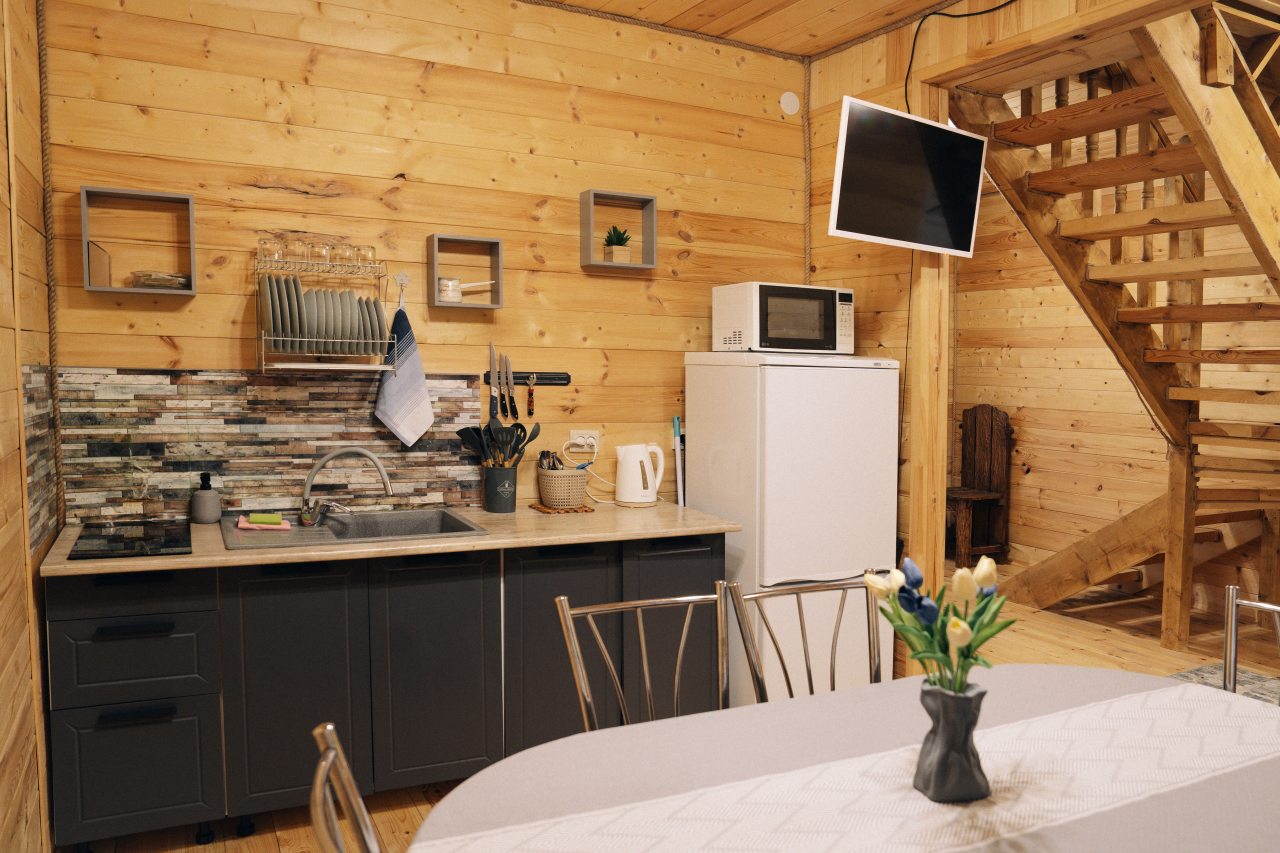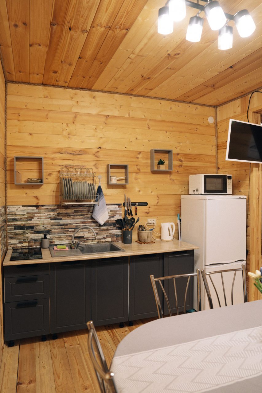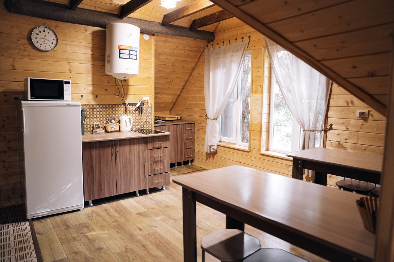 В номерах имеется холодильник, а на свежем воздухе установлена мангальная зона с беседками. Номера категории «Апартаменты» и «Шале» оснащены кухонной зоной с плитой, микроволновой печью, чайником и посудой.