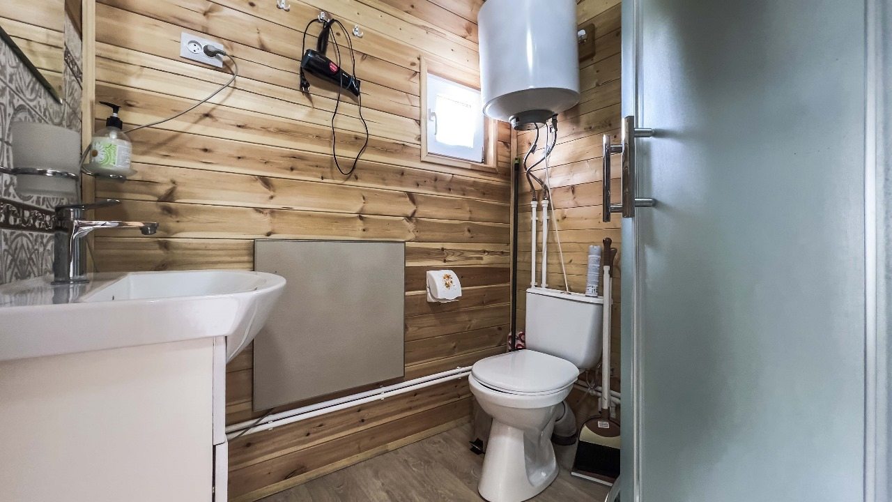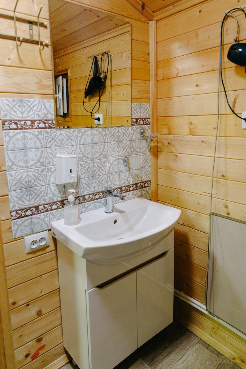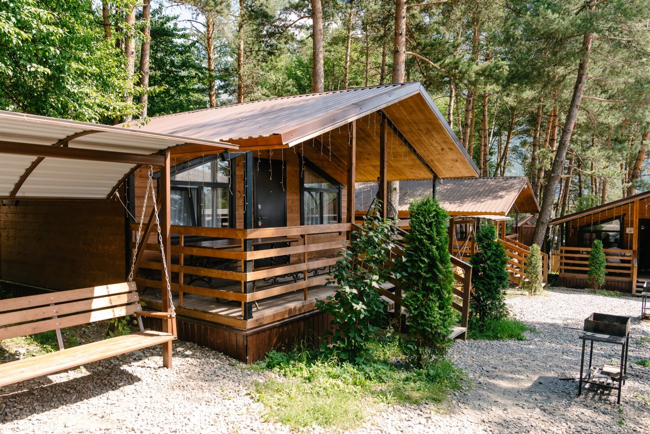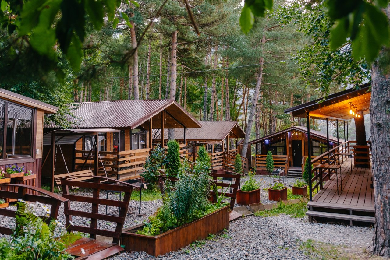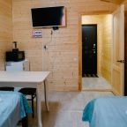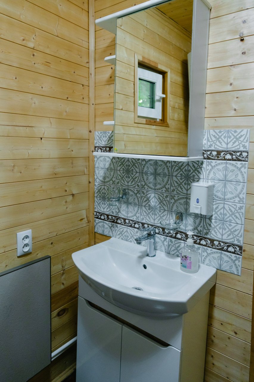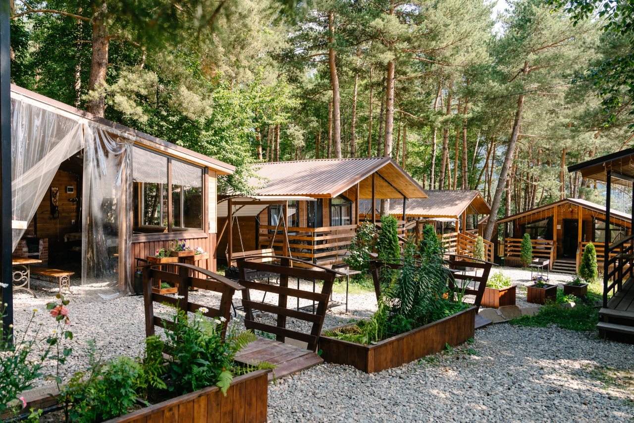 Для проживания предлагаются комфортабельные домики со всем необходимым для качественного отдыха и проживания, включая удобные кровати, диван, различные источники освещения, телевизор и собственный оборудованный санузел.