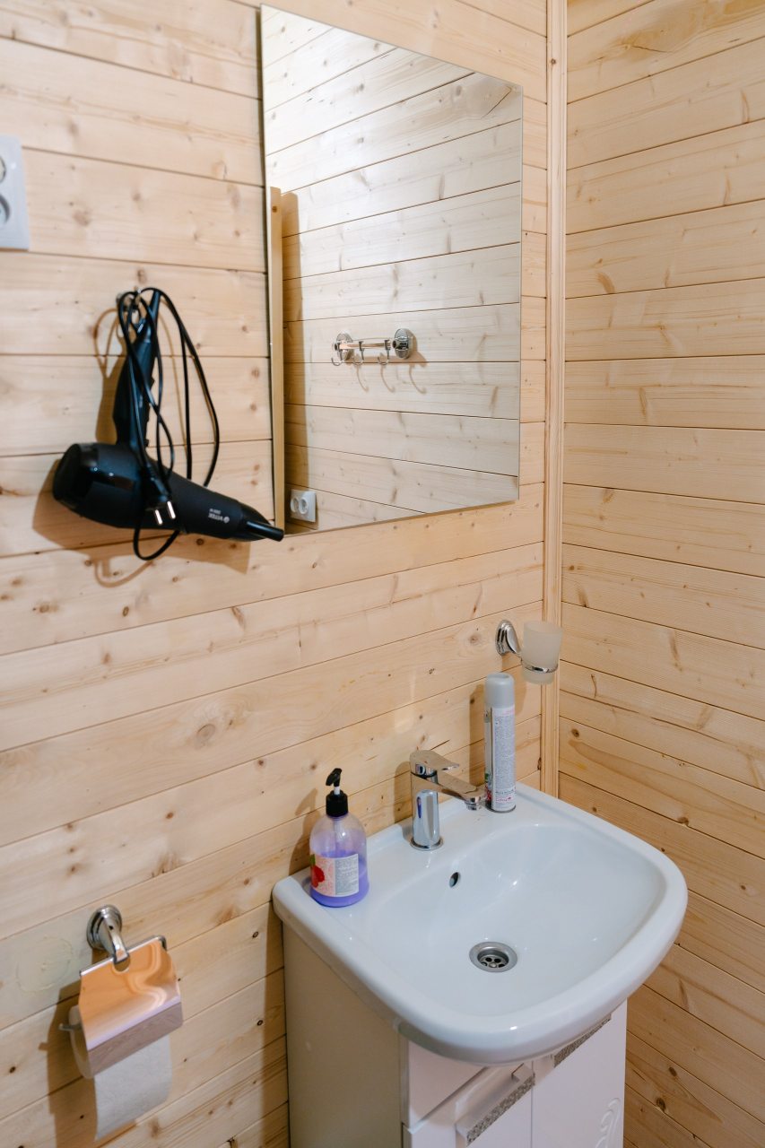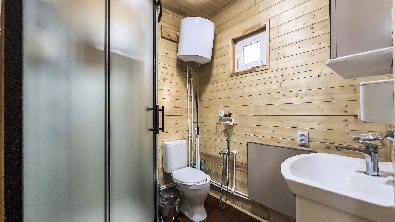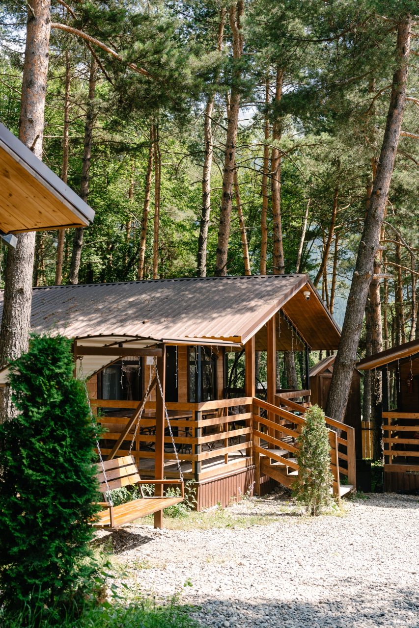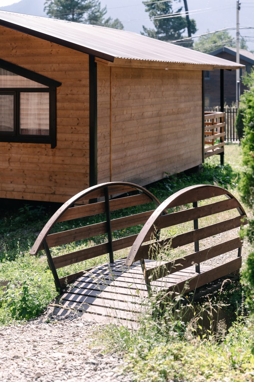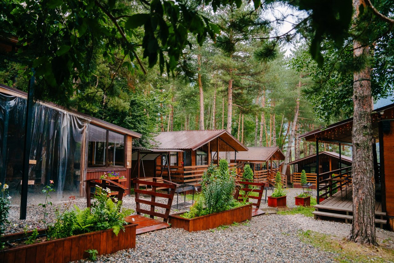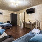 Для проживания предлагаются комфортабельные домики со всем необходимым для качественного отдыха и проживания, включая удобные кровати, диван, различные источники освещения, телевизор и собственный оборудованный санузел.