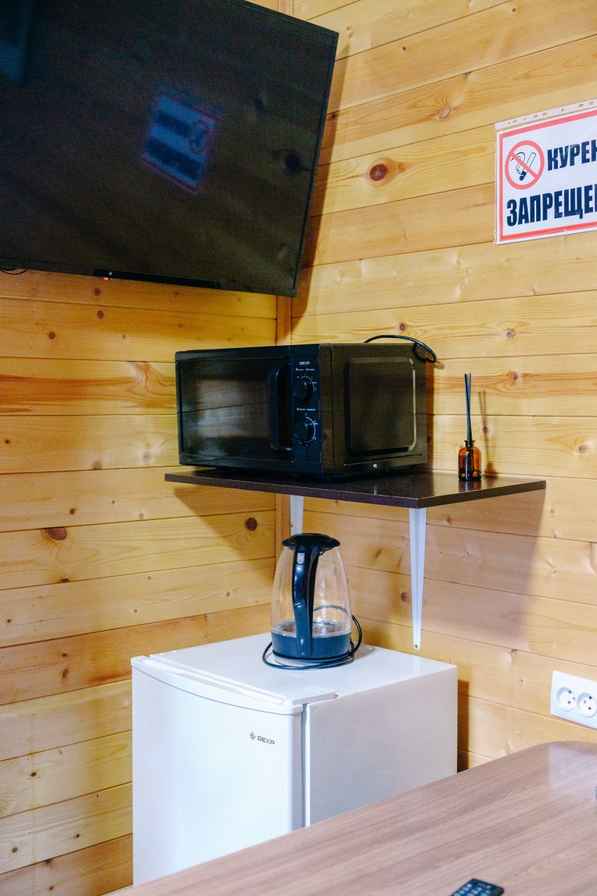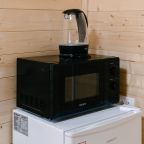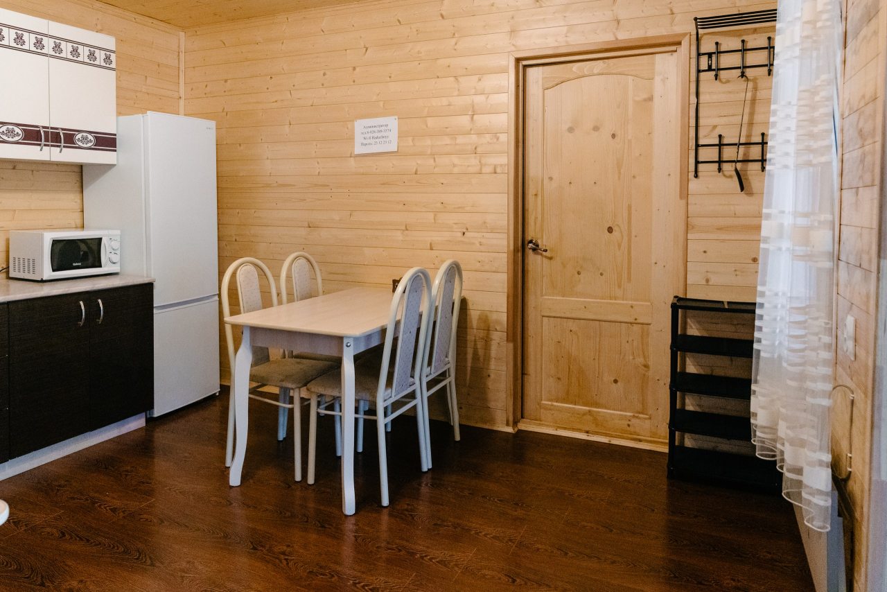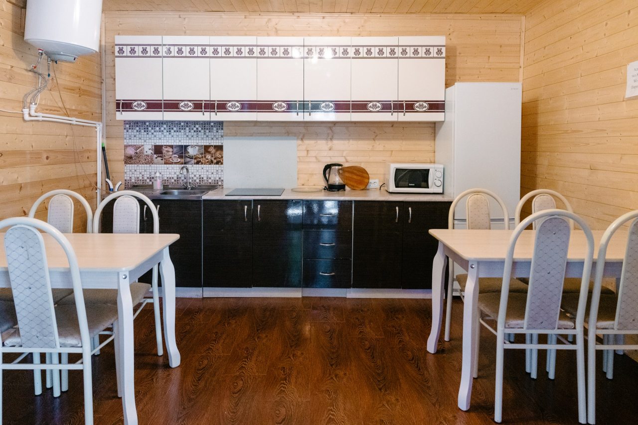 Также гостям предоставляется возможность воспользоваться кухней, которая включает в себя: мини-холодильник, микроволновую печь и электрочайник. Уютные обеденные зоны есть как внутри домов, так и на свежем воздухе в виде беседок.