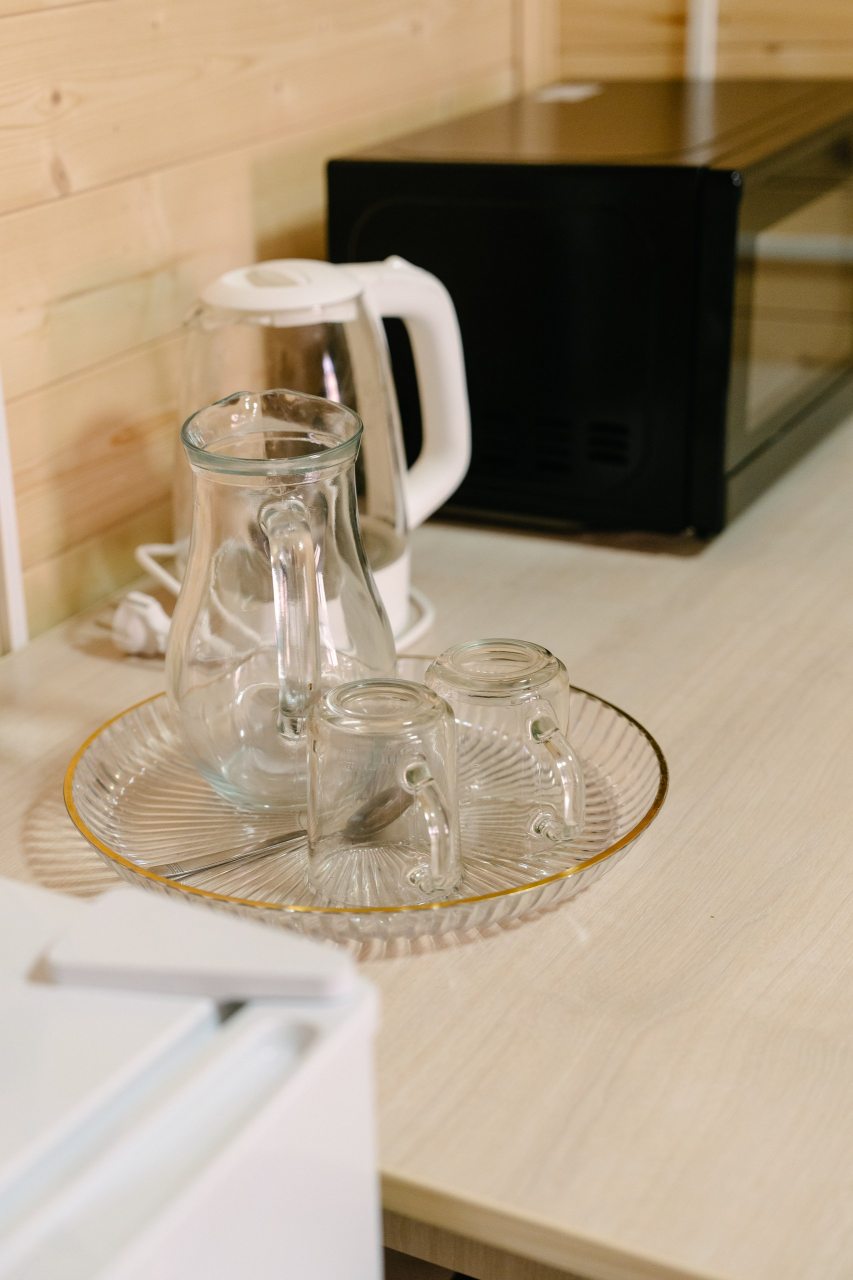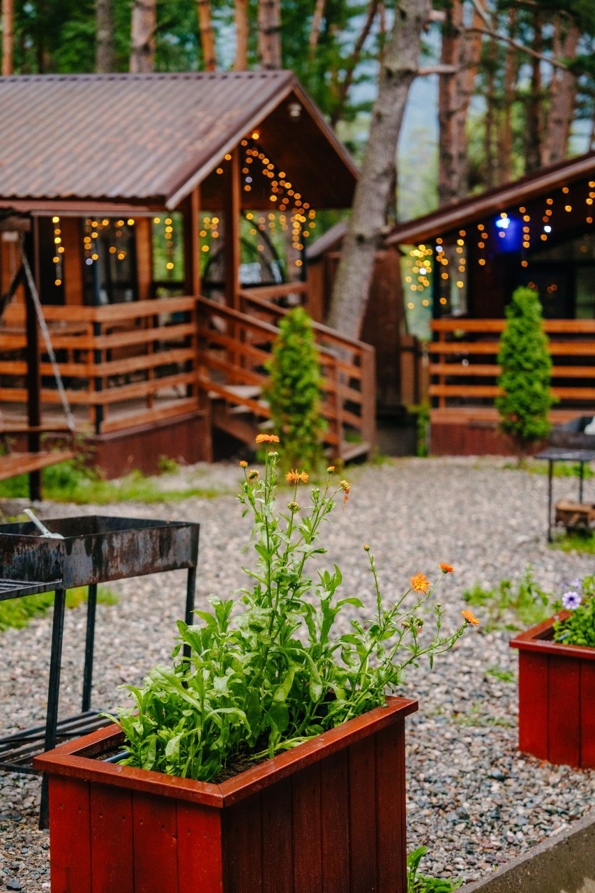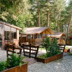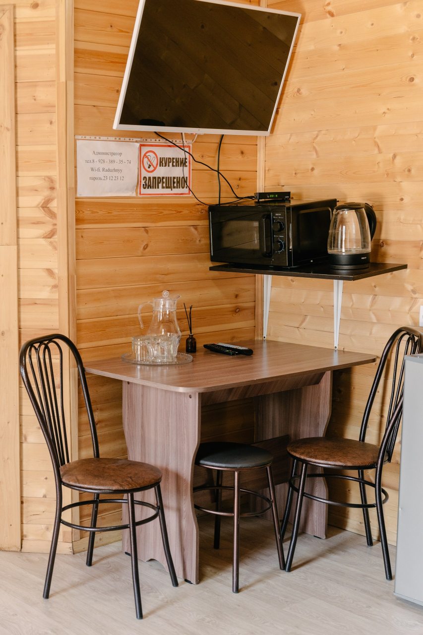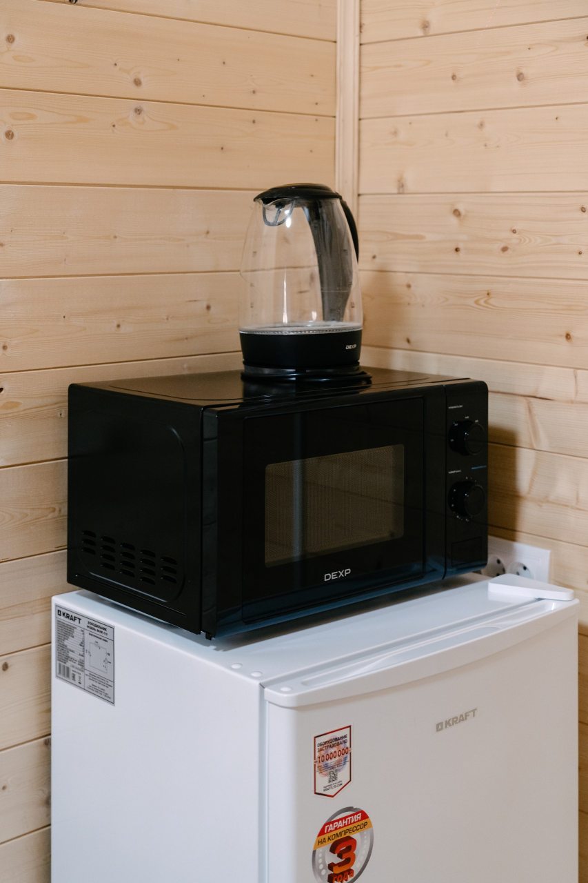 Также гостям предоставляется возможность воспользоваться кухней, которая включает в себя: мини-холодильник, микроволновую печь и электрочайник. Уютные обеденные зоны есть как внутри домов, так и на свежем воздухе в виде беседок.