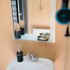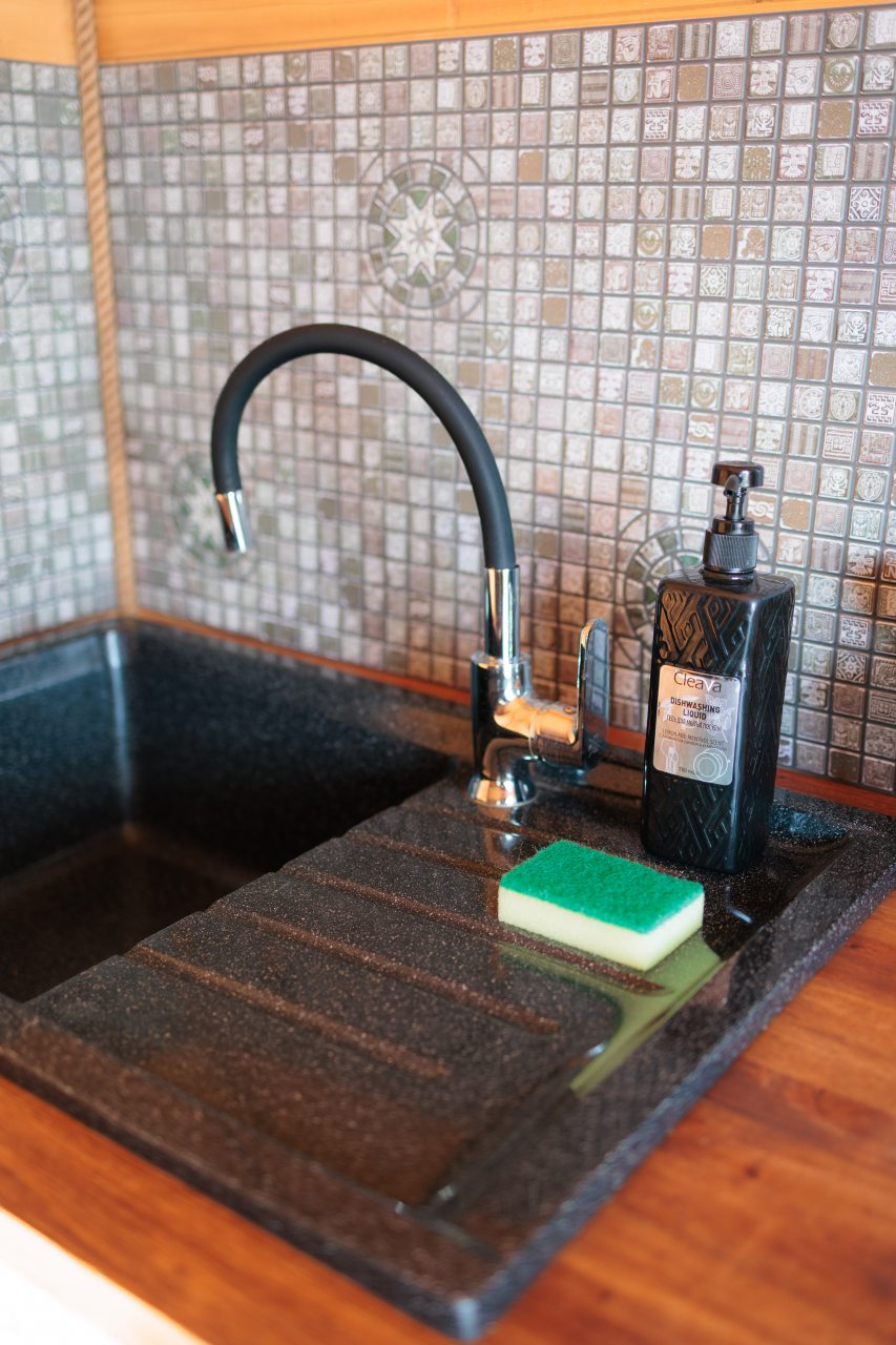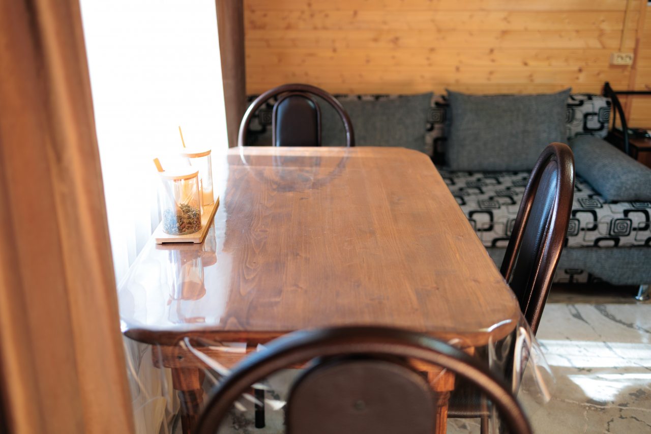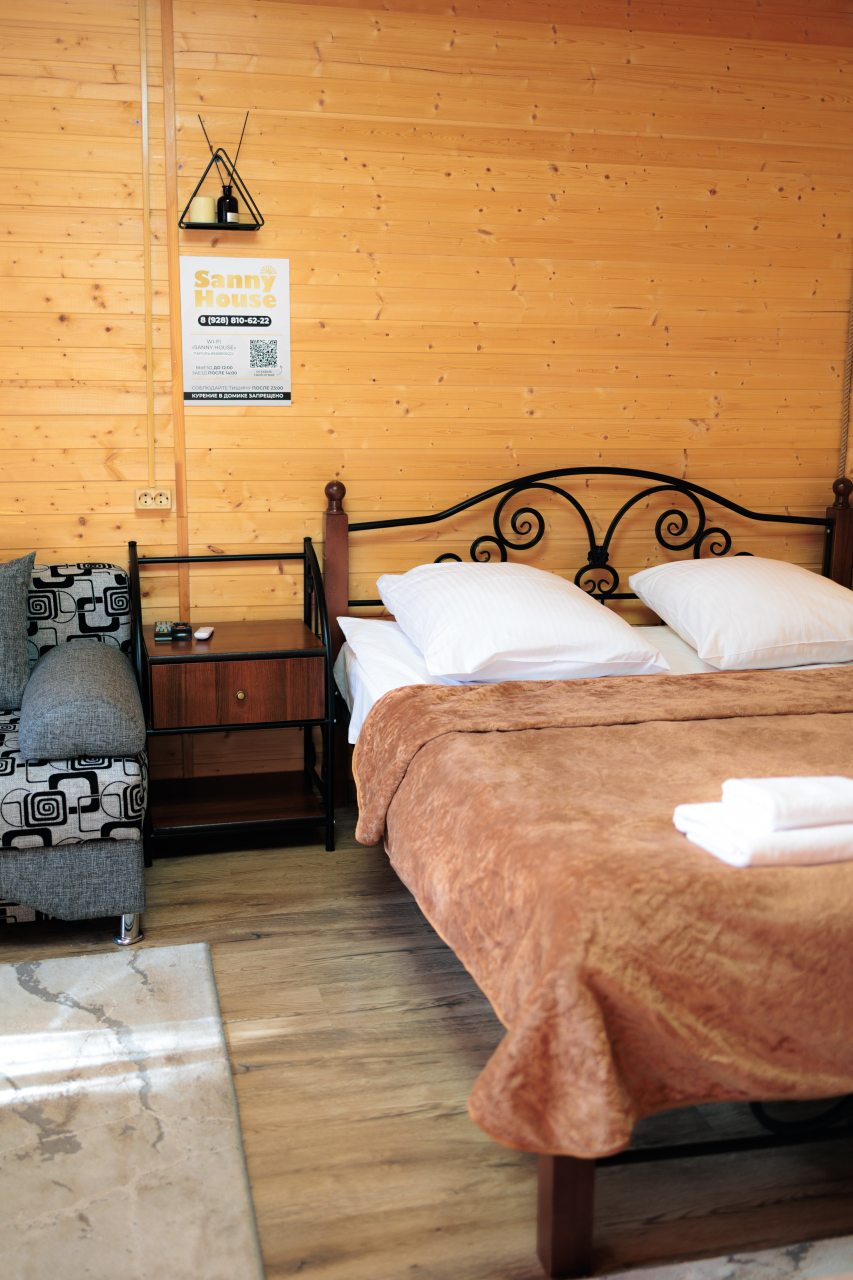Для размещения предлагаются уютные дома с собственной мини-террасой, которые оснащены необходимой мебелью и техникой, включая удобные кровати, различную мебель для хранения вещей, а также индивидуальный санузел с раковиной, душем, туалетом, набором полотенец и средств для личной гигиены.