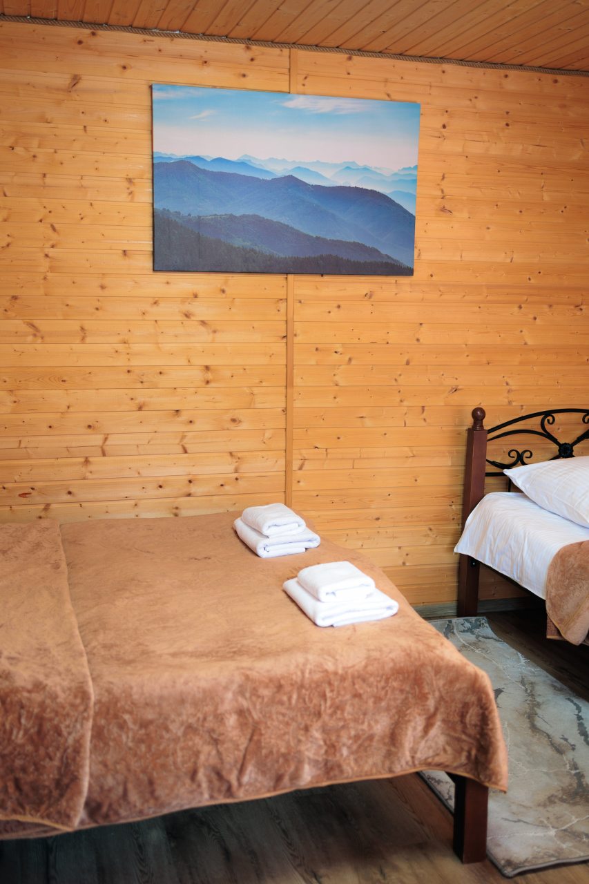 Для отдыха также доступны кресла-качели, баня и чан. Поблизости протекает река Большой Зеленчук. Расстояние до ближайшего железнодорожного вокзала «Роза Хутор» — 83 км, а до аэропорта Сочи — 110,4 км.