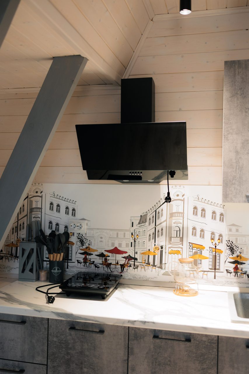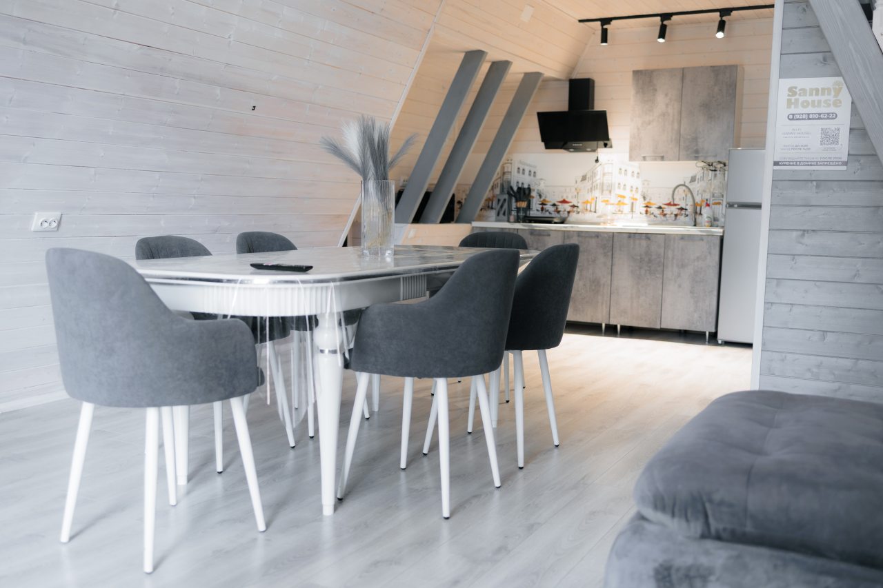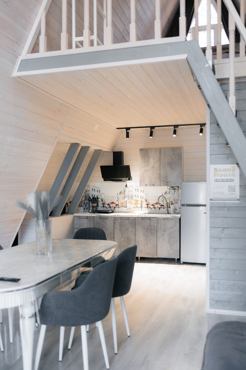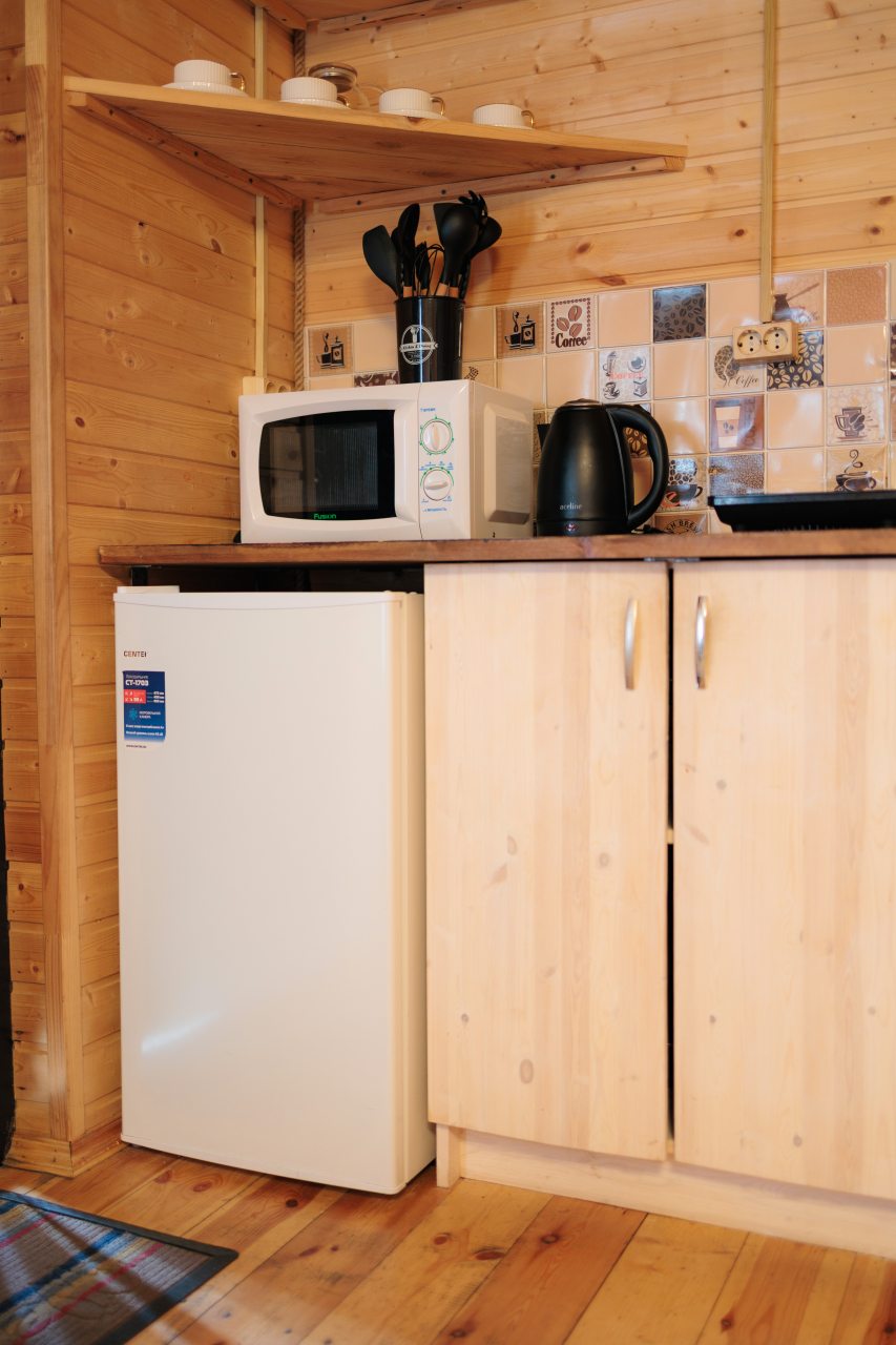 Комплектация кухонной бытовой техники может варьироваться. Большинство домов укомплектовано холодильником, плитой, чайником, СВЧ. Также в наличии мангальные зоны.