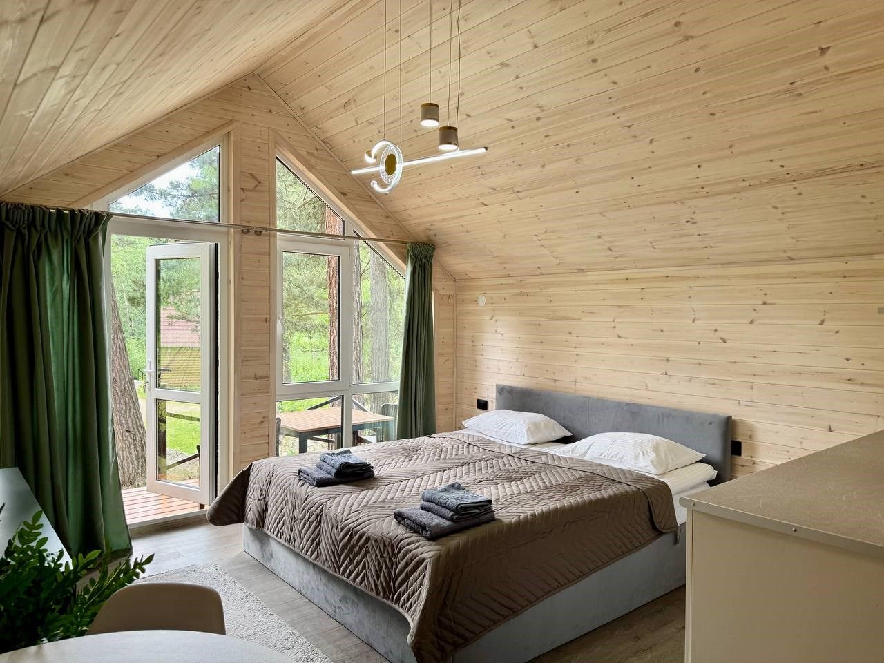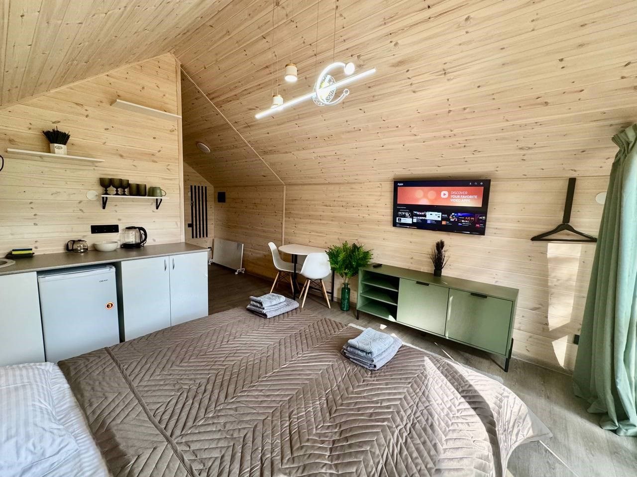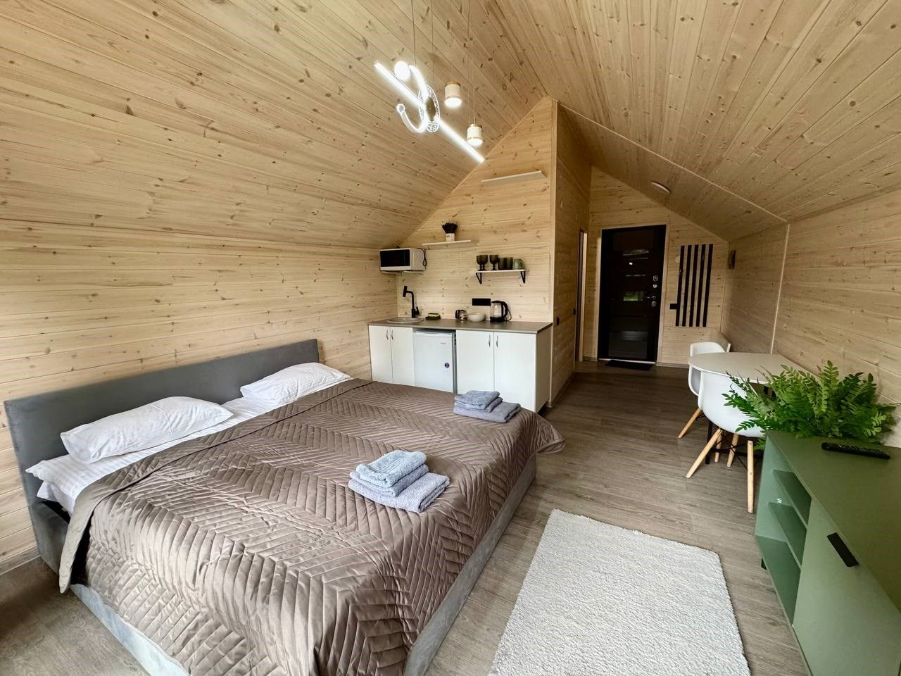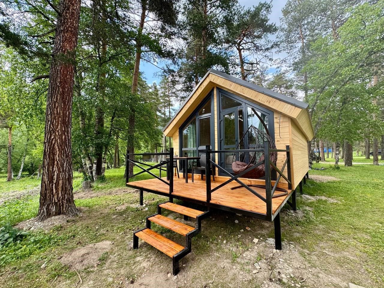 Для проживания гостям предлагаются стильные а-фрейм коттеджи различной вместимости, в которых есть всё для качественного отдыха, включая удобную кровать, комплект постельного белья и полотенец, а также индивидуальный санузел с туалетно-гигиеническими средствами.