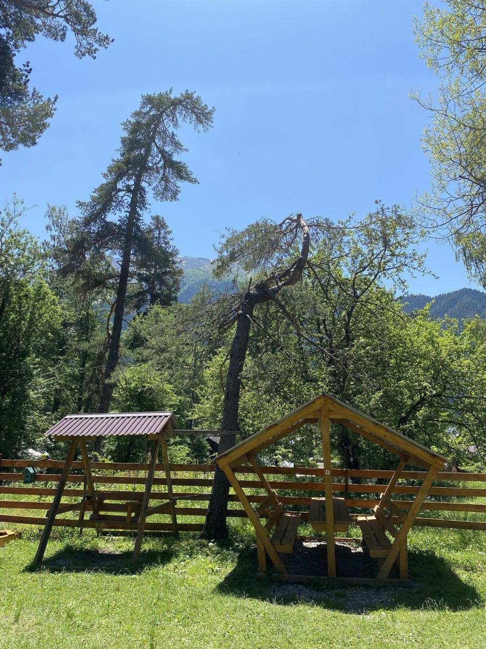 На территории есть множество зон отдыха, детская игровая площадка, настольный теннис, а также баня с купелью за дополнительную плату. Разнообразить досуг можно конной прогулкой, самостоятельными экскурсиями, посещением природных достопримечательностей. В 12 км находится горнолыжный курорт «Архыз». Расстояние до железнодорожного вокзала составит 96,5 км, а до аэропорта «Минеральные Воды» — 160,4 км.