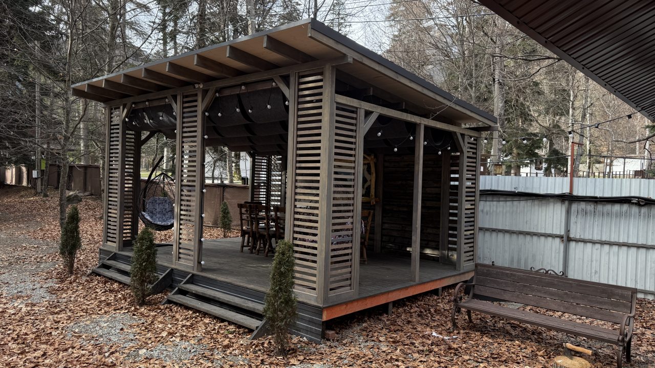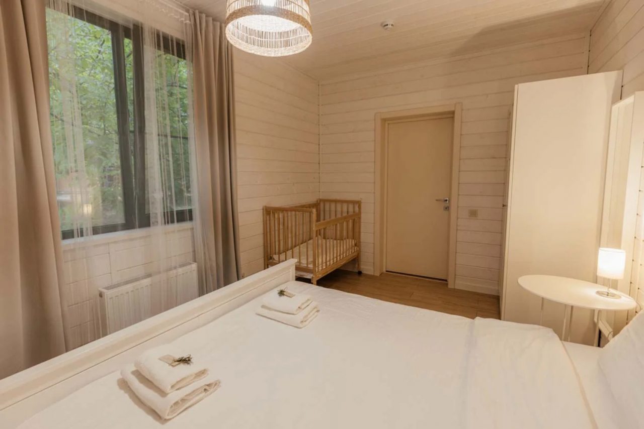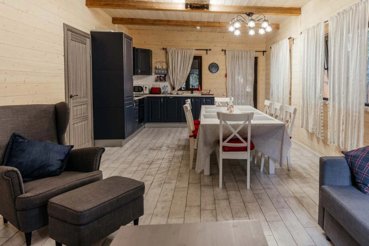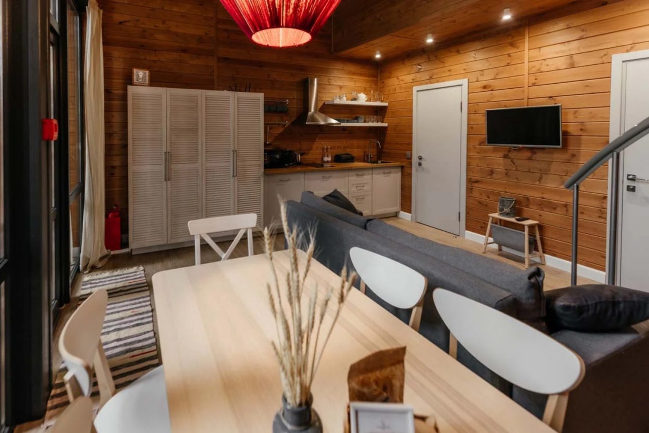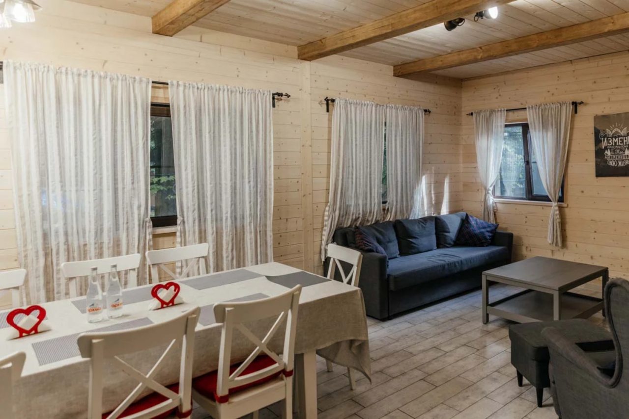 В этом апарт-отеле мы брали небольшой коттедж на компанию и отмечали здесь юбилей нашего отца. Собрались всей огромной семьей. Здесь 10 спальных мест, нас было девять человек. Разместились все отлично! Дом уютный и комфортабельный с шикарной террасой и оптимальным внутренним обустройством. Со всеми коммуникациями разобрались быстро. Электричество подведено и к спальным местам. Напряжения хватало даже если все включали.