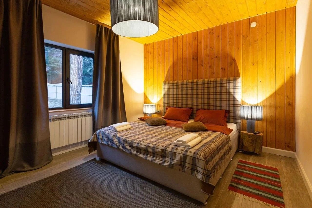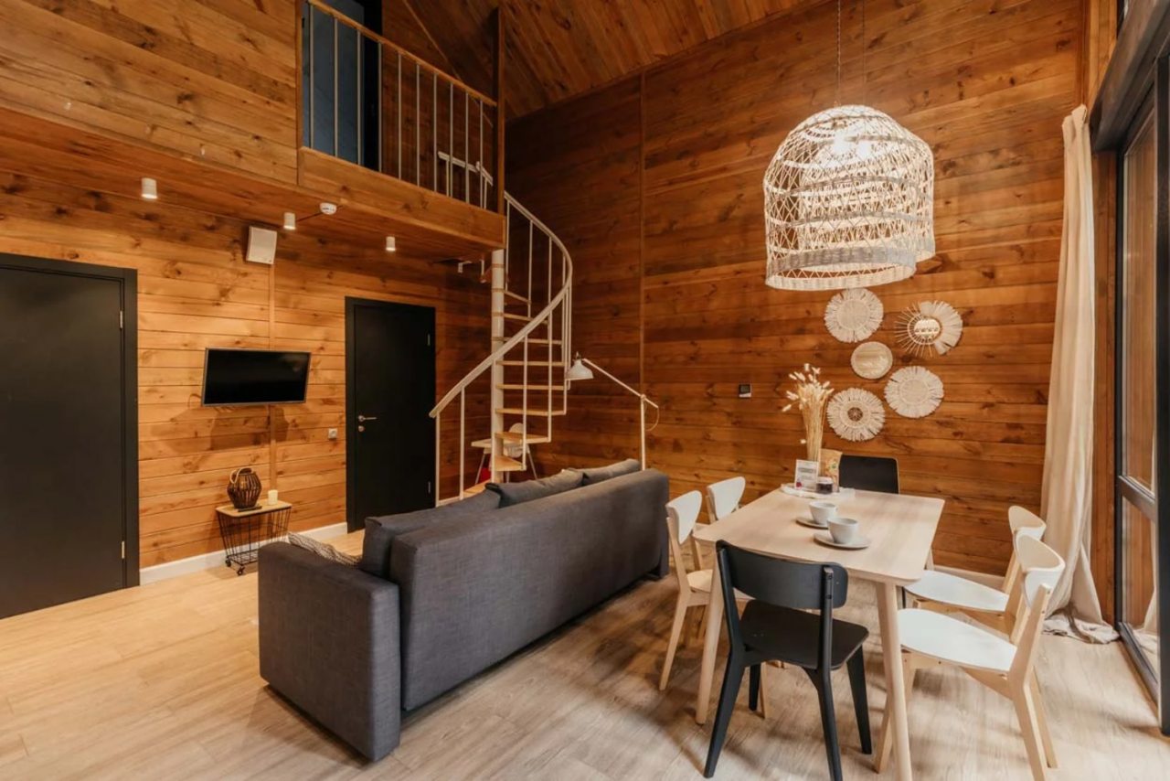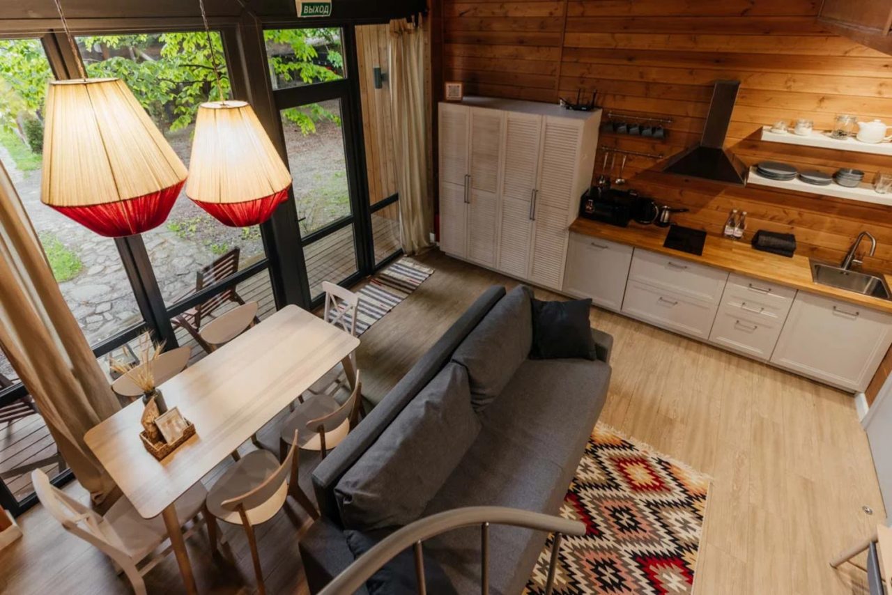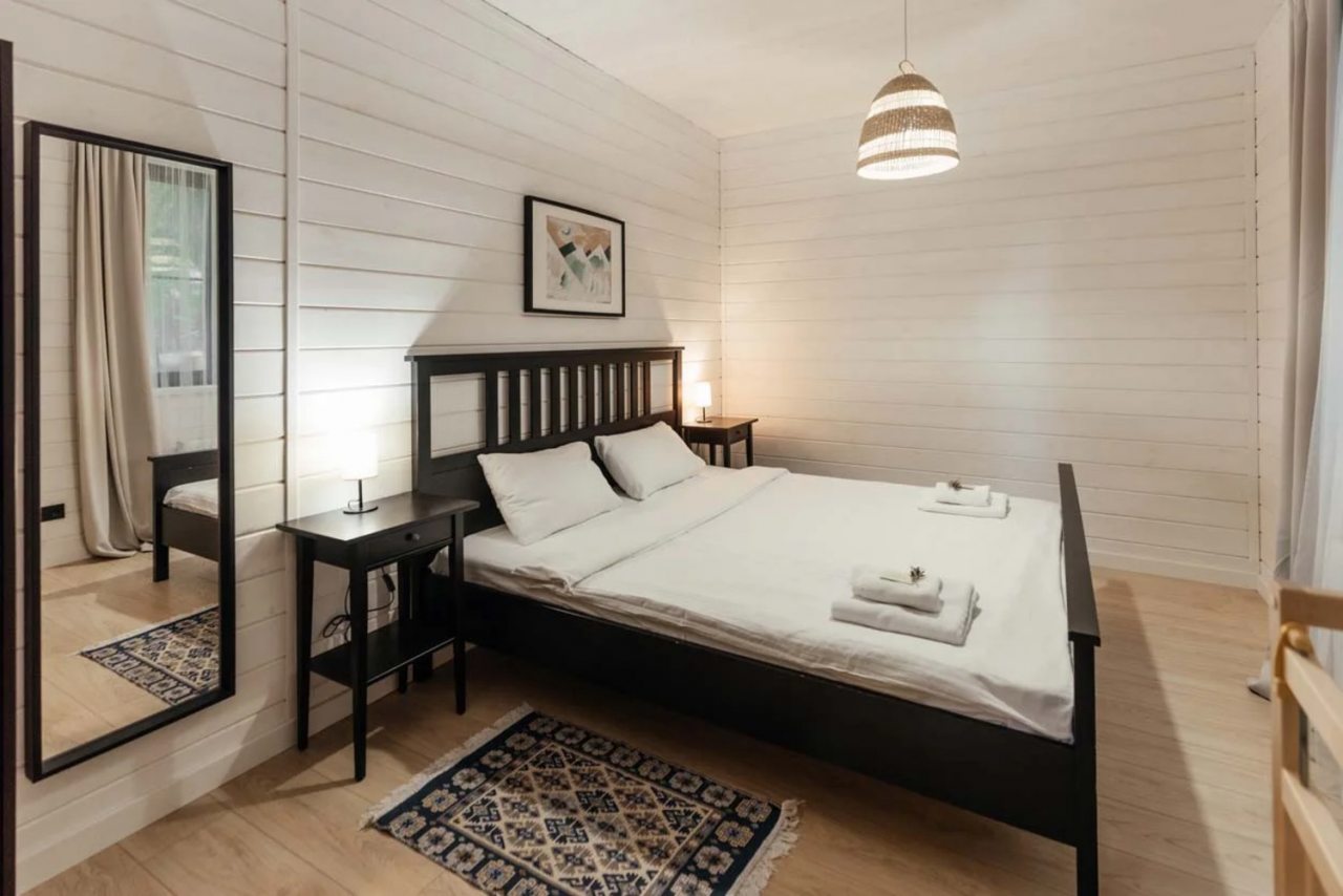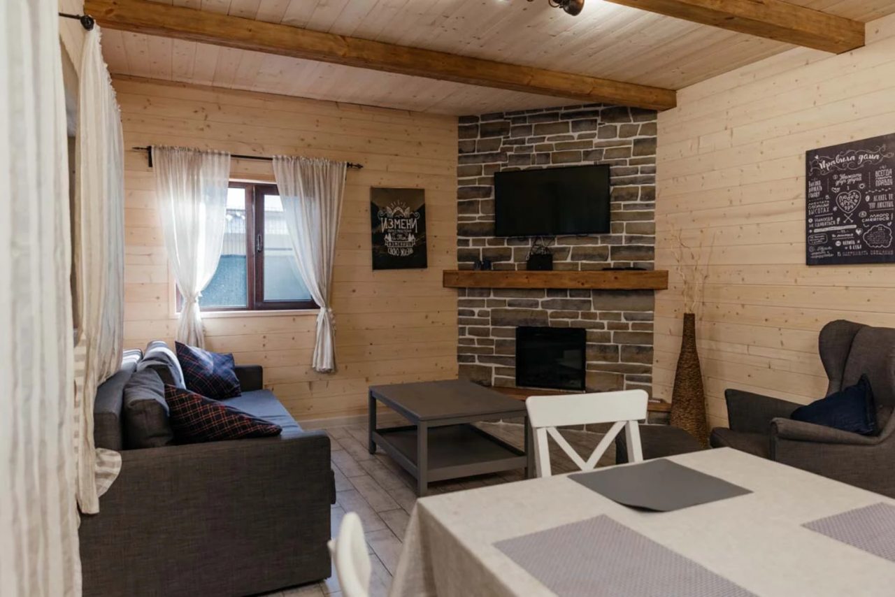 В этом апарт-отеле мы брали небольшой коттедж на компанию и отмечали здесь юбилей нашего отца. Собрались всей огромной семьей. Здесь 10 спальных мест, нас было девять человек. Разместились все отлично! Дом уютный и комфортабельный с шикарной террасой и оптимальным внутренним обустройством. Со всеми коммуникациями разобрались быстро. Электричество подведено и к спальным местам. Напряжения хватало даже если все включали.