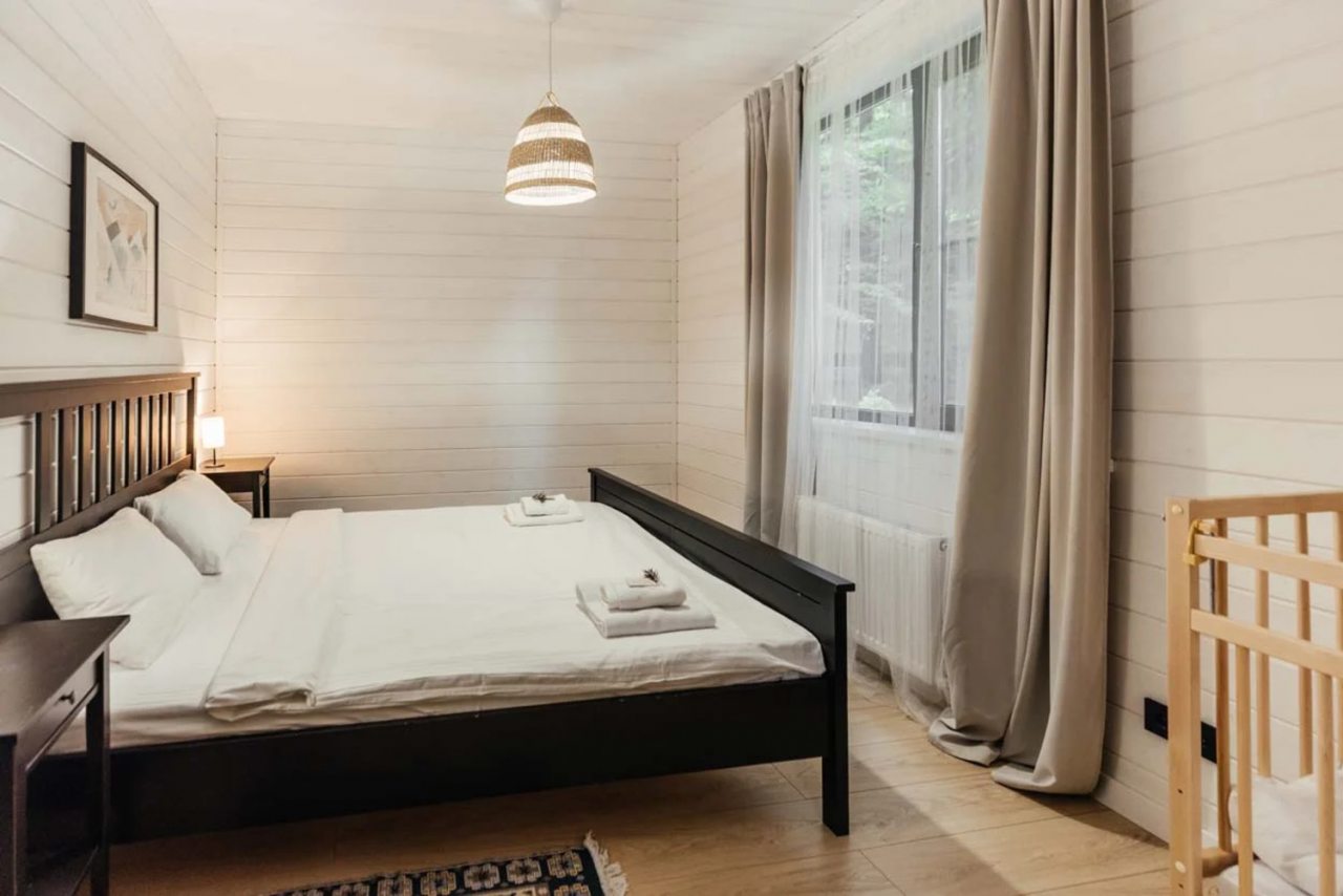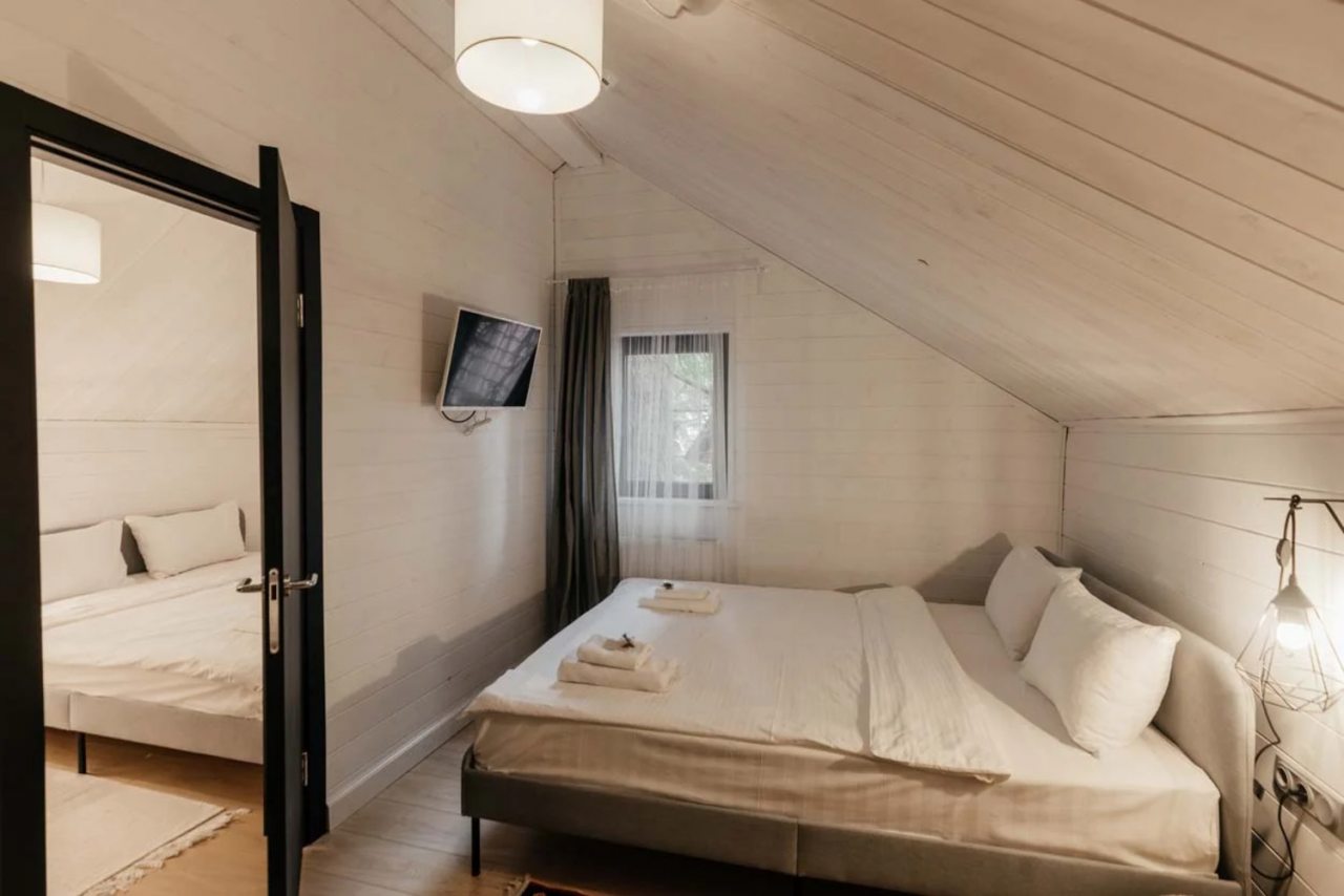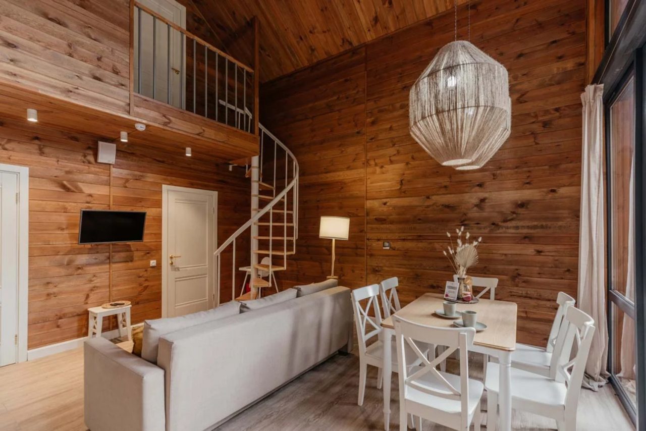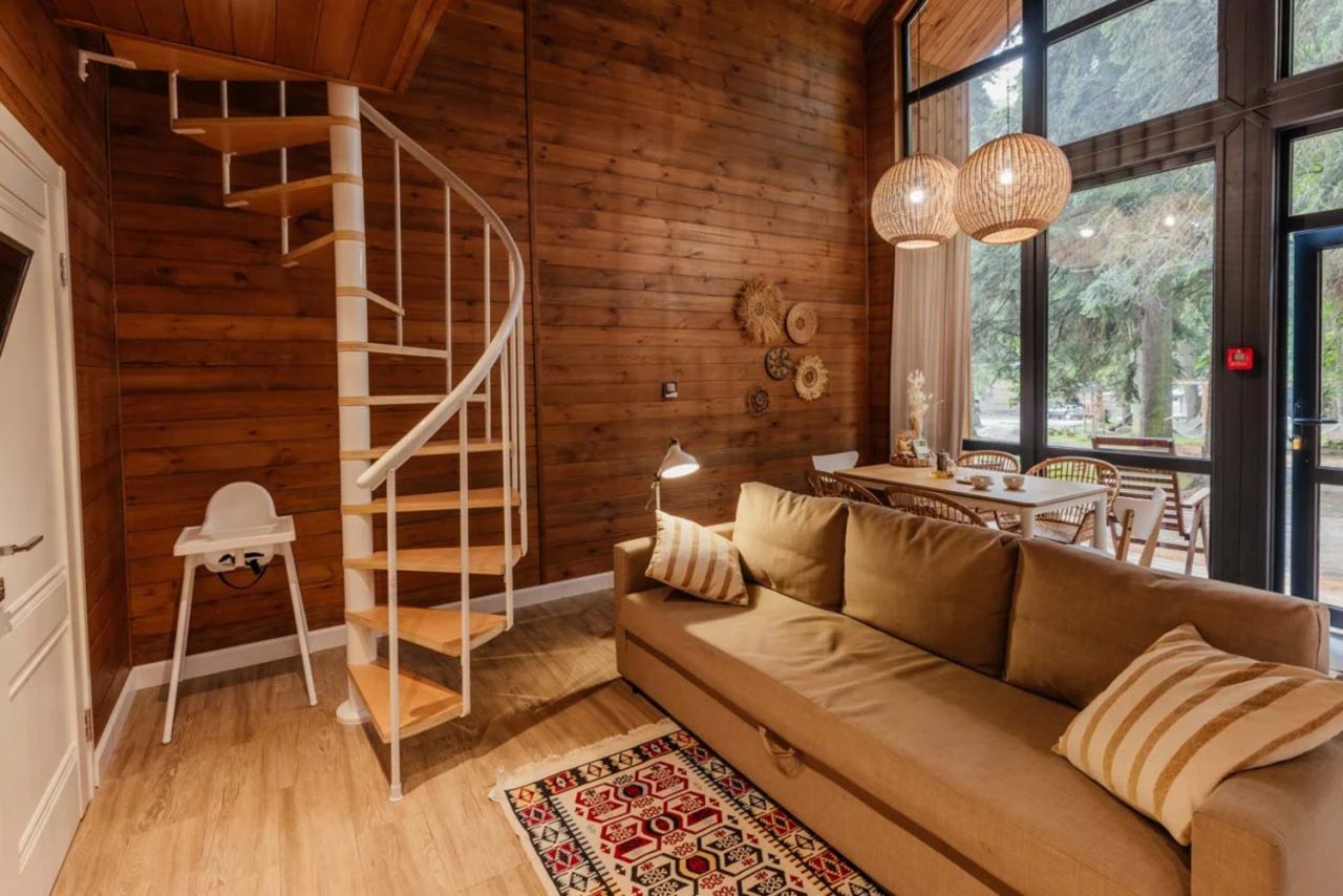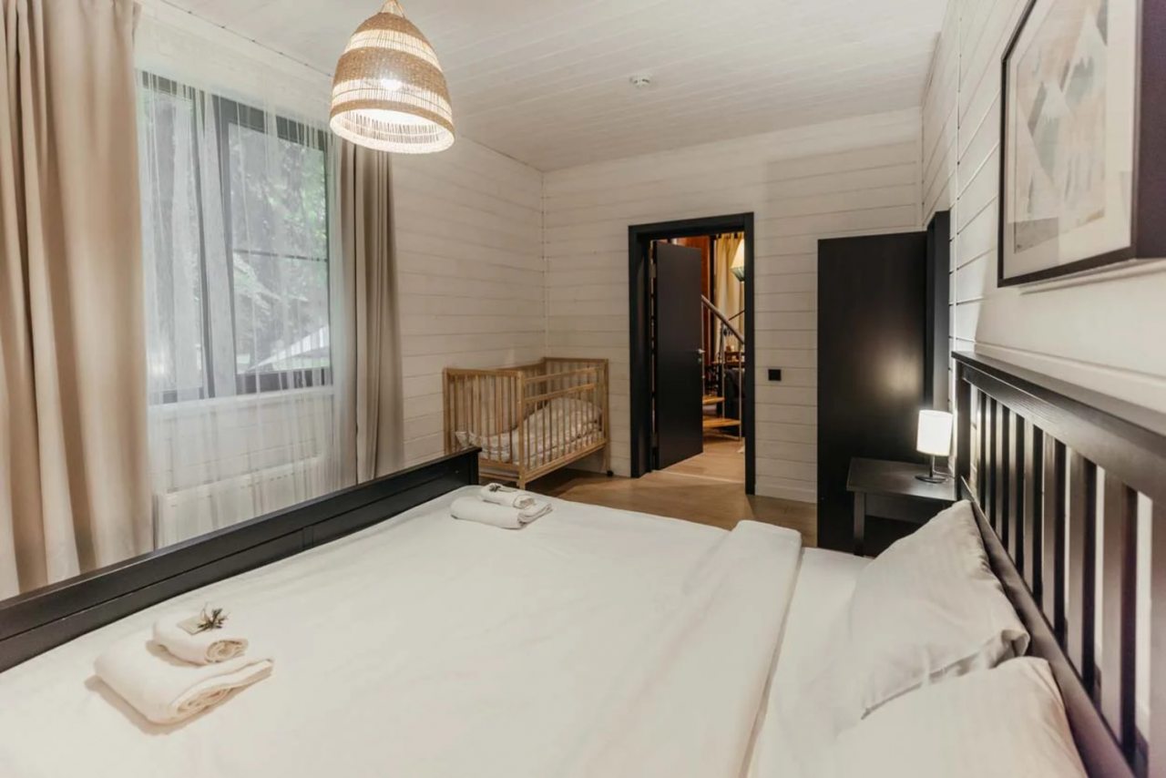 В этом апарт-отеле мы брали небольшой коттедж на компанию и отмечали здесь юбилей нашего отца. Собрались всей огромной семьей. Здесь 10 спальных мест, нас было девять человек. Разместились все отлично! Дом уютный и комфортабельный с шикарной террасой и оптимальным внутренним обустройством. Со всеми коммуникациями разобрались быстро. Электричество подведено и к спальным местам. Напряжения хватало даже если все включали.