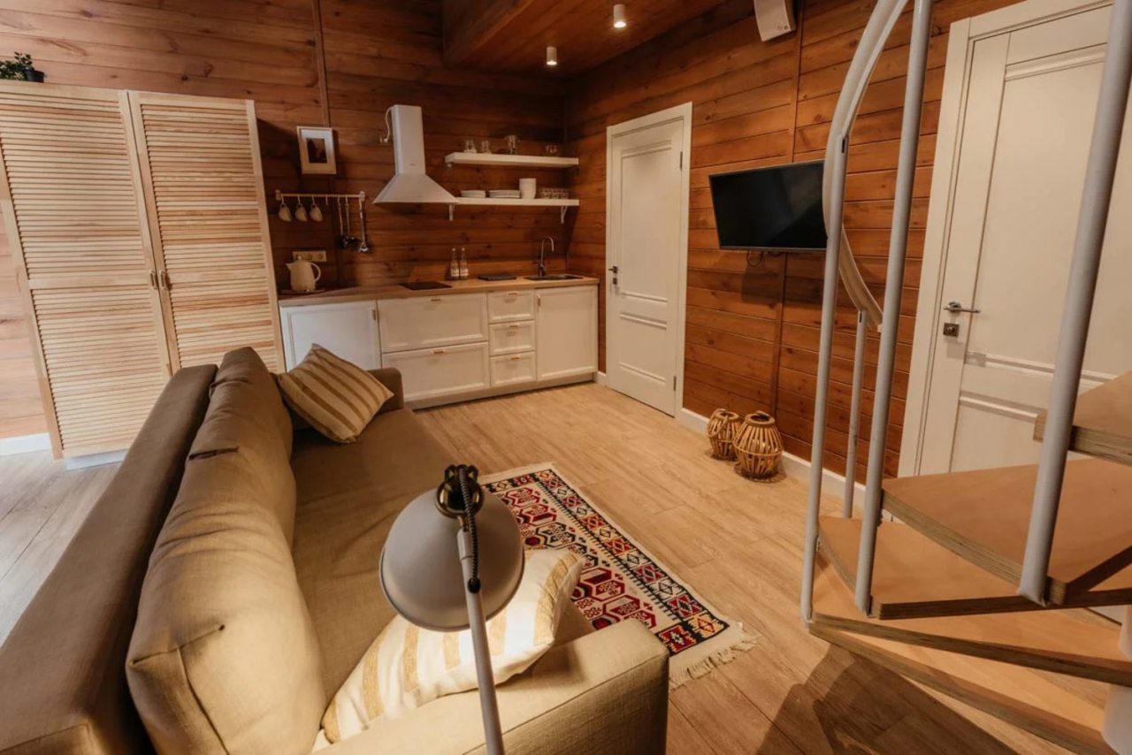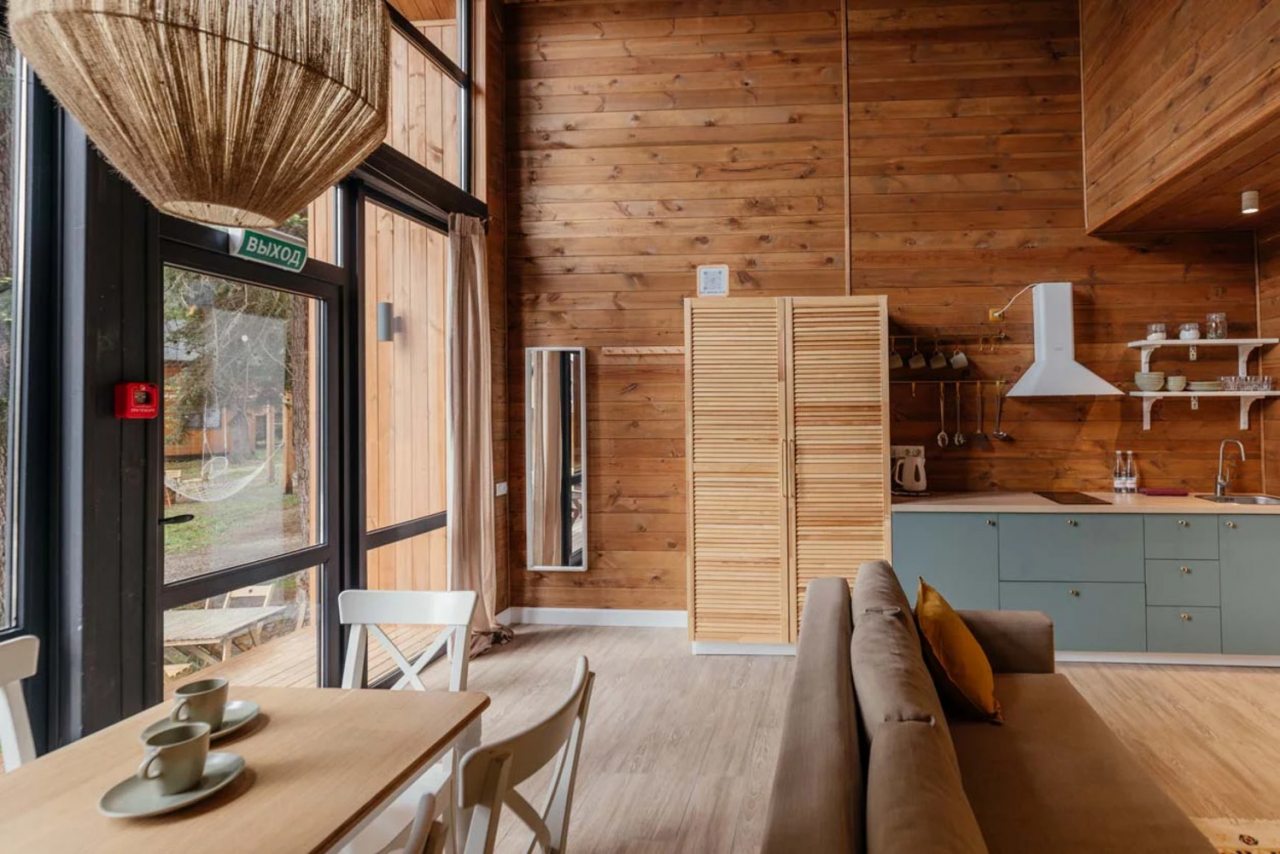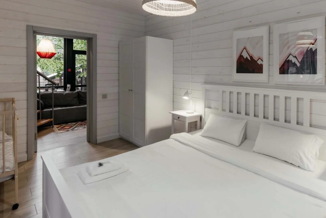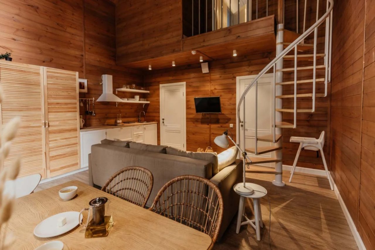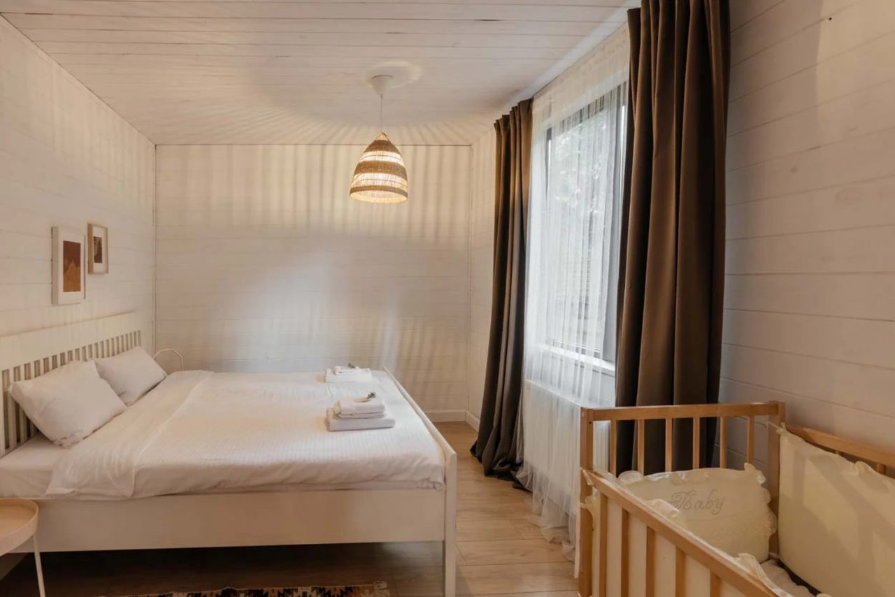 В этом апарт-отеле мы брали небольшой коттедж на компанию и отмечали здесь юбилей нашего отца. Собрались всей огромной семьей. Здесь 10 спальных мест, нас было девять человек. Разместились все отлично! Дом уютный и комфортабельный с шикарной террасой и оптимальным внутренним обустройством. Со всеми коммуникациями разобрались быстро. Электричество подведено и к спальным местам. Напряжения хватало даже если все включали.