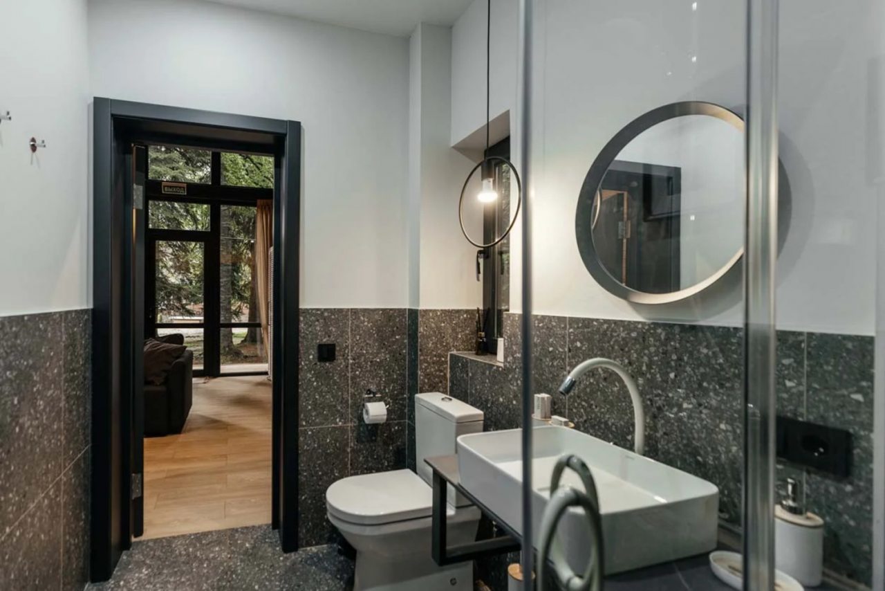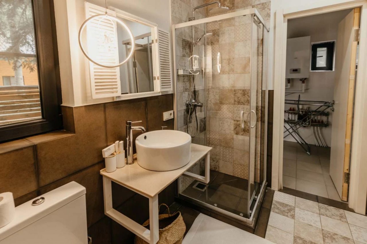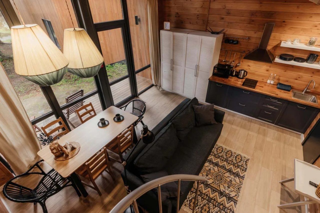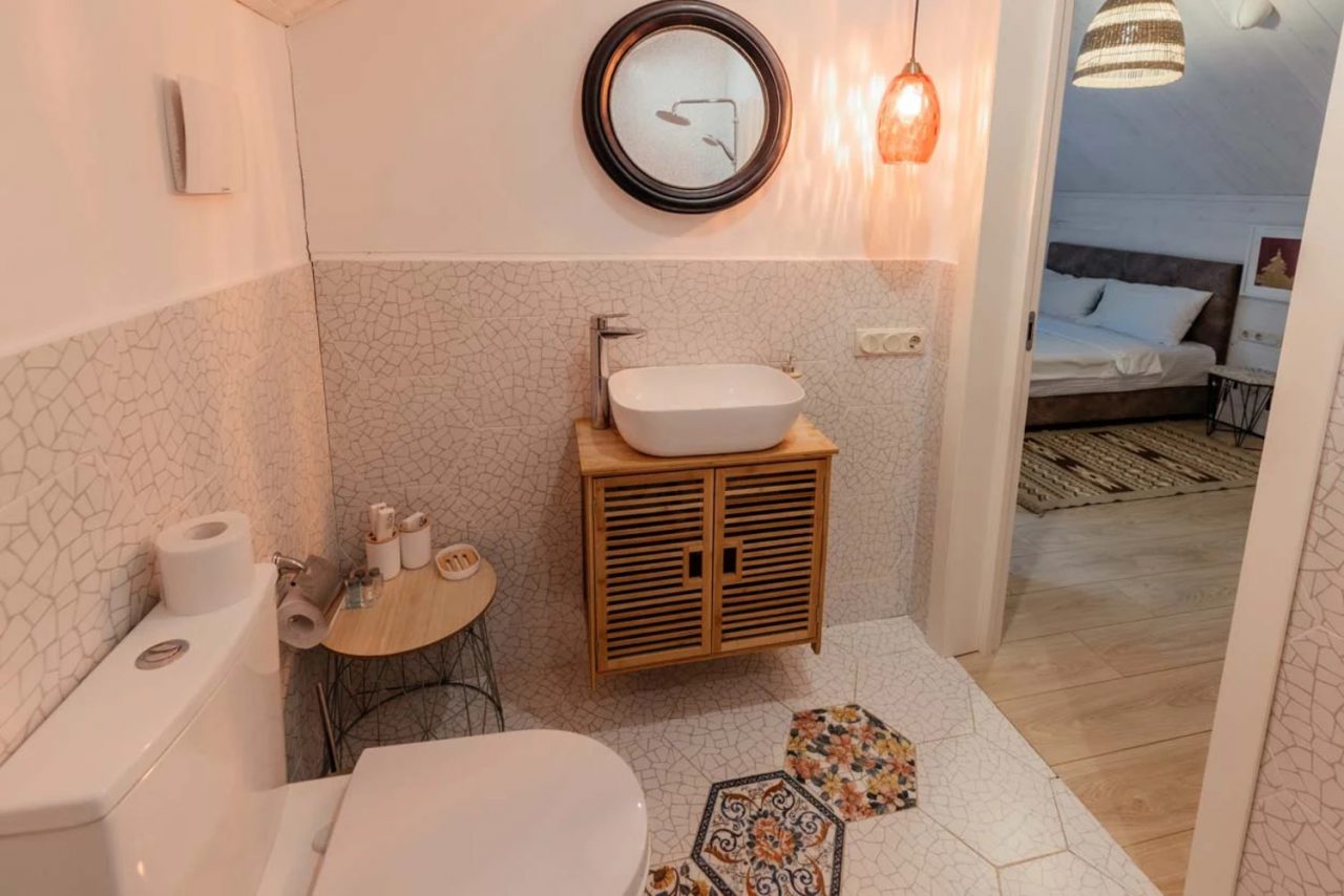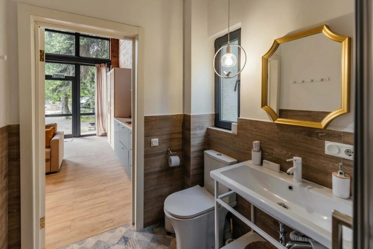В этом апарт-отеле мы брали небольшой коттедж на компанию и отмечали здесь юбилей нашего отца. Собрались всей огромной семьей. Здесь 10 спальных мест, нас было девять человек. Разместились все отлично! Дом уютный и комфортабельный с шикарной террасой и оптимальным внутренним обустройством. Со всеми коммуникациями разобрались быстро. Электричество подведено и к спальным местам. Напряжения хватало даже если все включали.