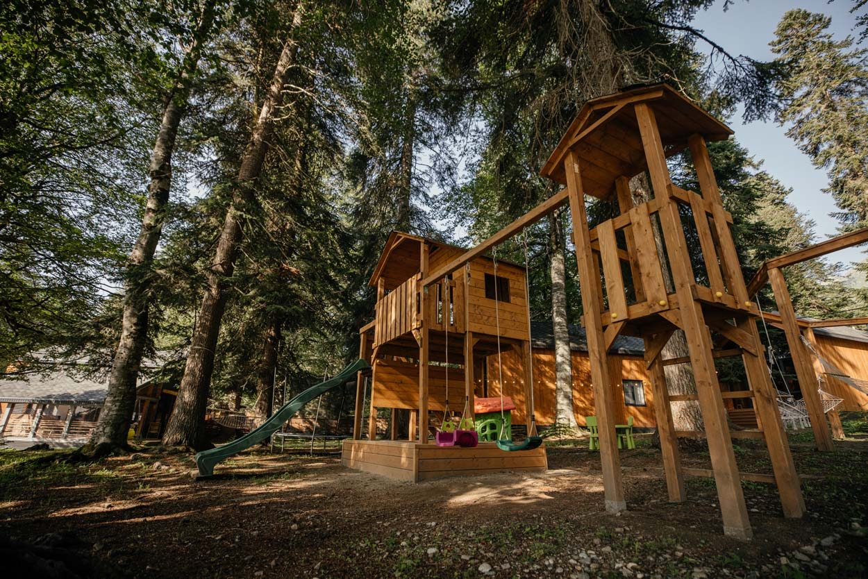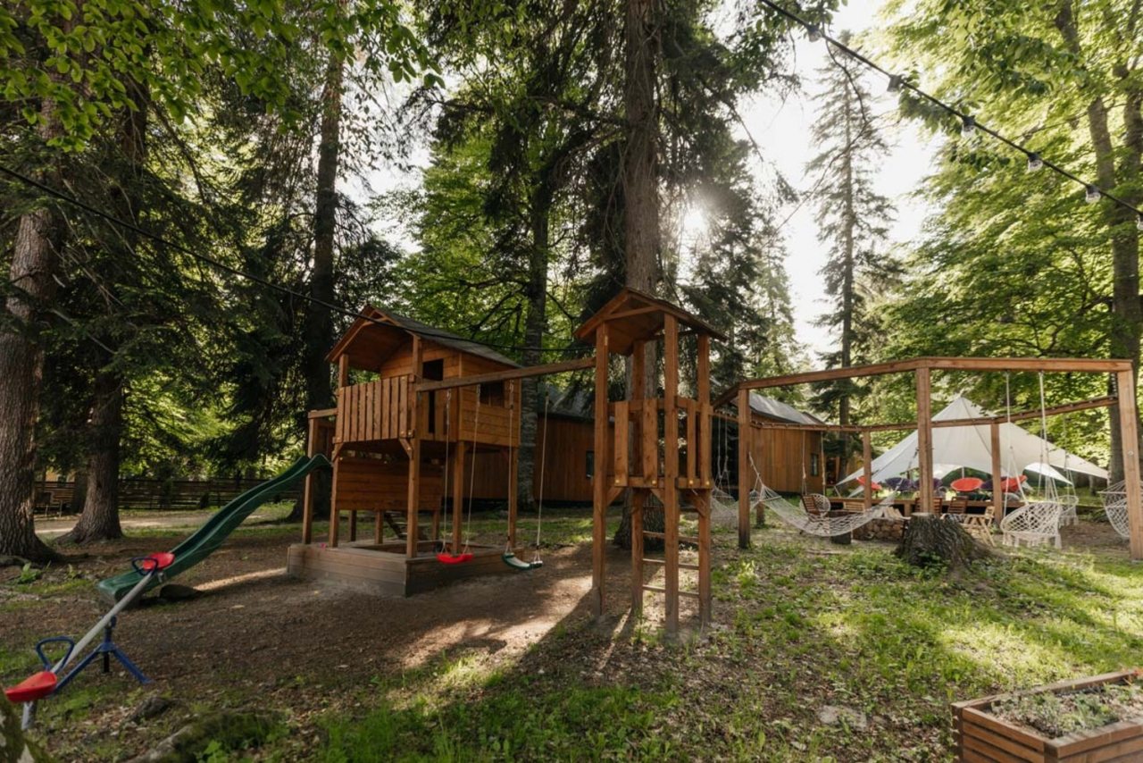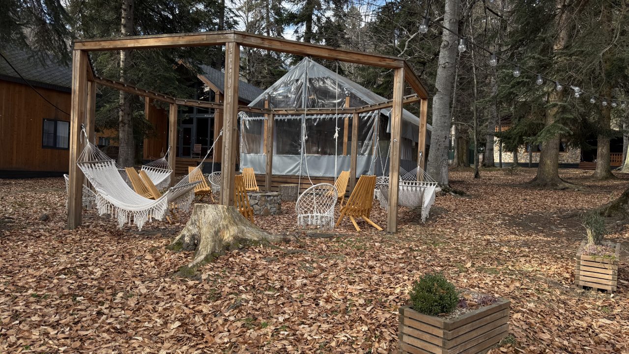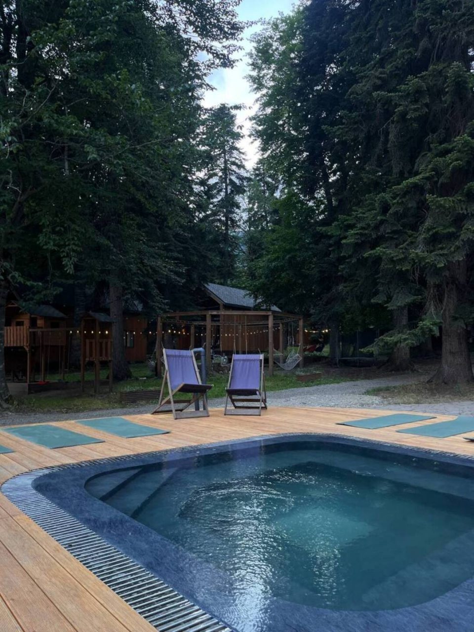 Для развлечений на территории объекта расположены: банный комплекс, бассейн с зоной для детей, площадка для йоги, летний кинотеатр, беседки и теннисный корт. Помимо этого, имеются места отдыха и релаксации с гамаками, качелями и очагом. Отель находится в прекрасном экологическом чистом районе, среди кавказских гор и долин. Поблизости располагаются горная вершина «Останец», река Большой Зеленчук. Расстояние до железнодорожного вокзала — 65,8 км, до аэропорта — 79,1 км.
