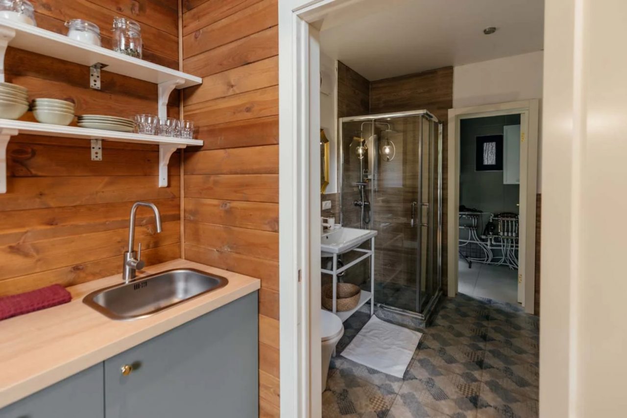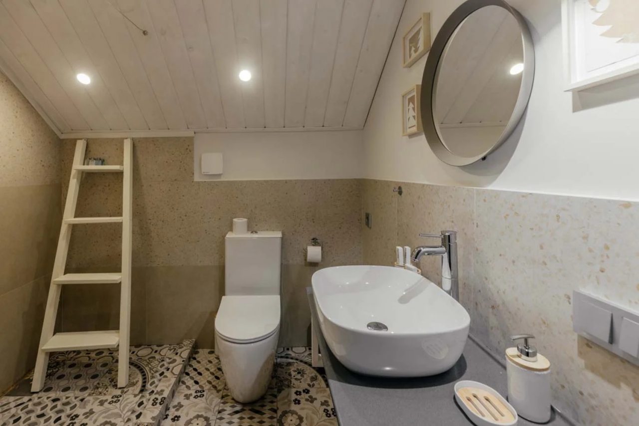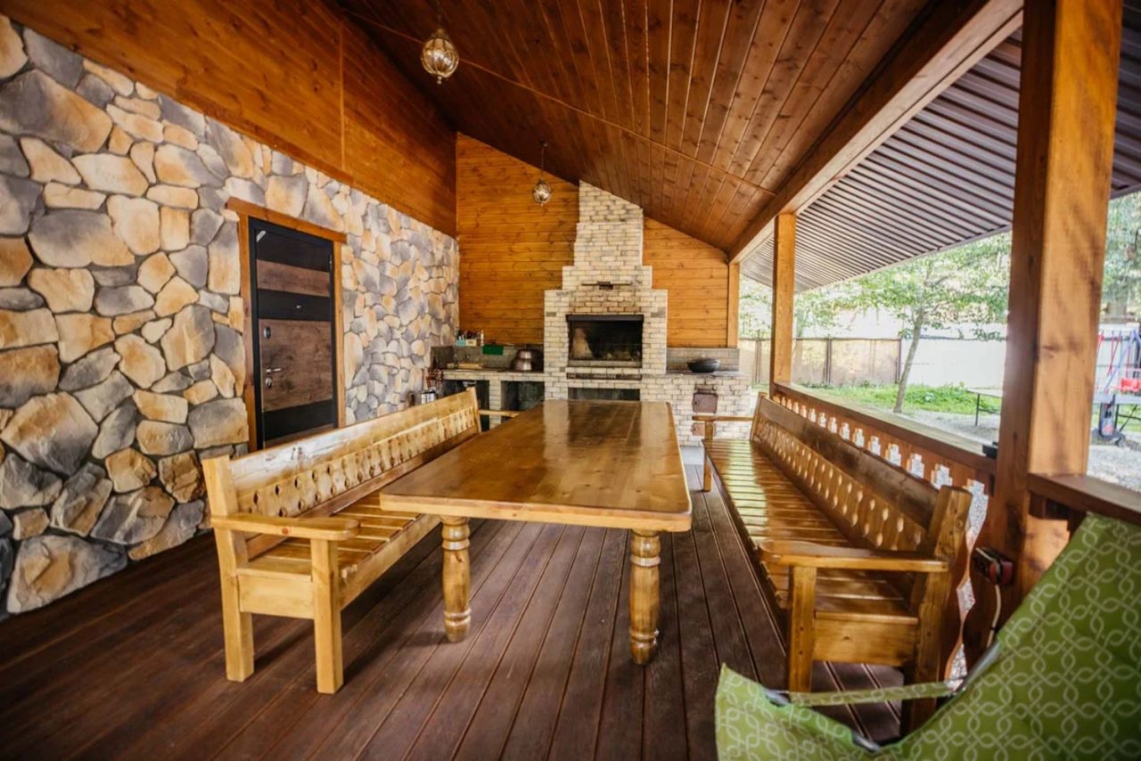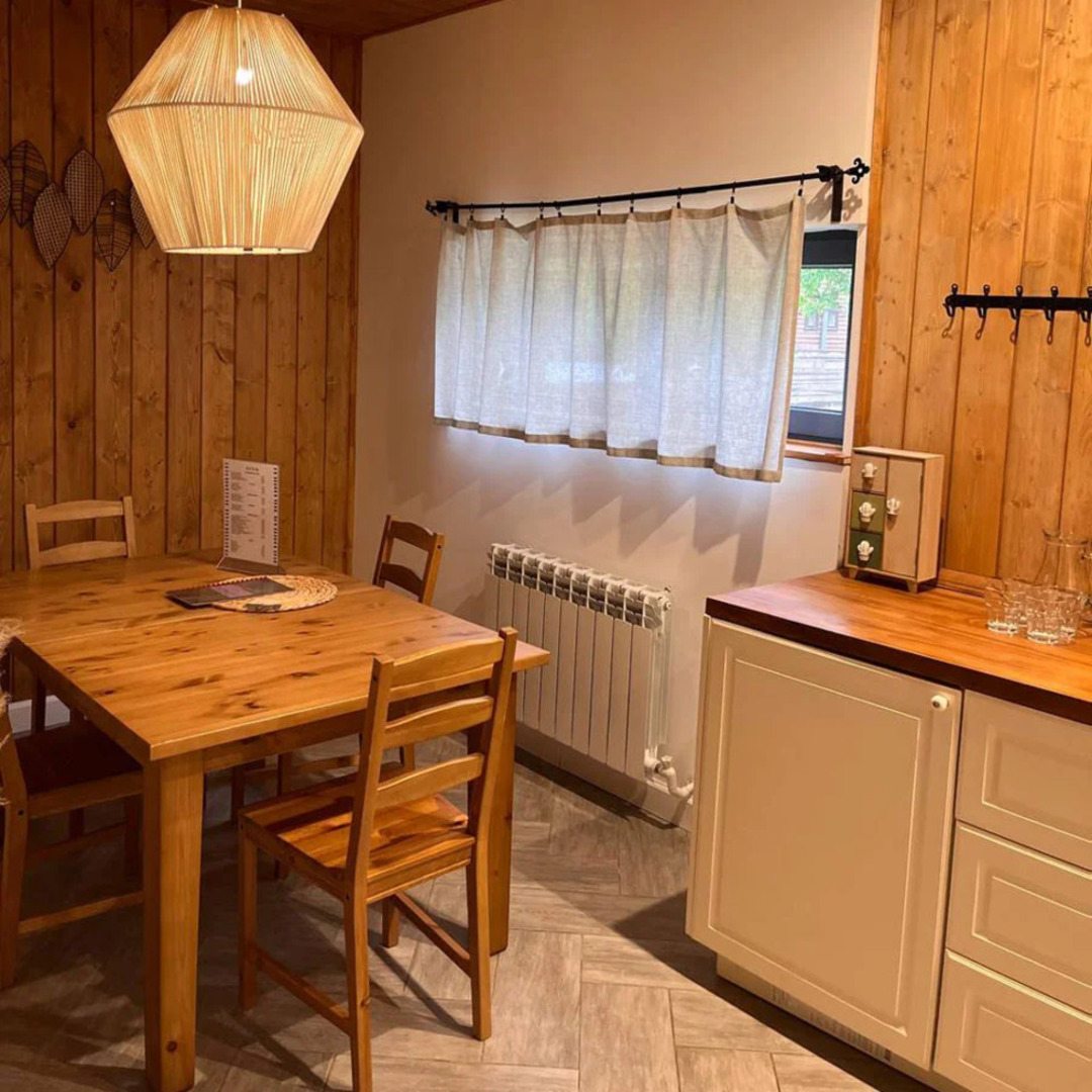 Из недостатков: холодильник слишком маленький, но завтраки и пицца отличные. Нет посудомойки и стиральной машины. Горячая вода тоже не всегда была. Есть мангал с дровами.