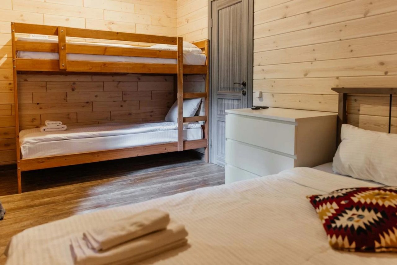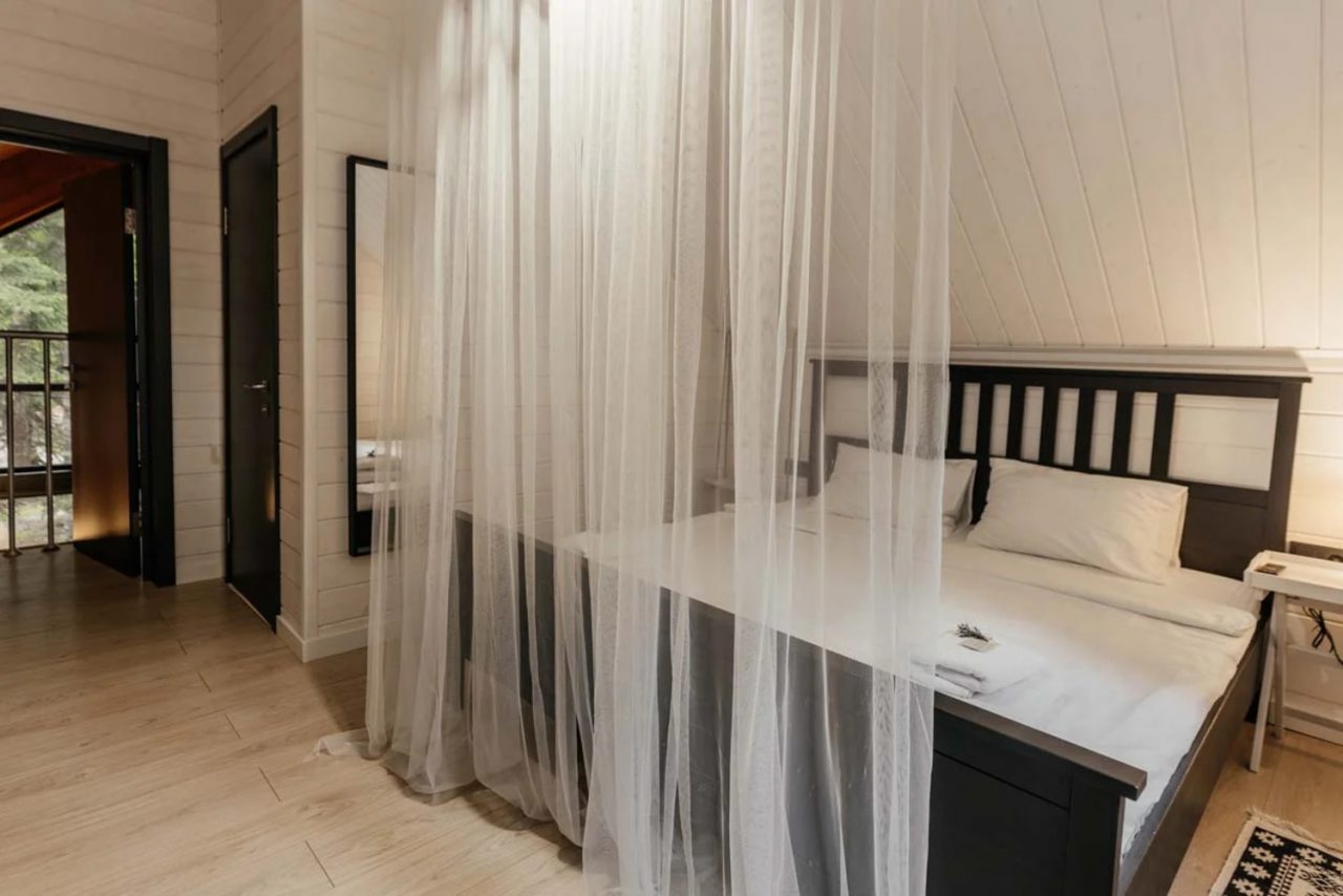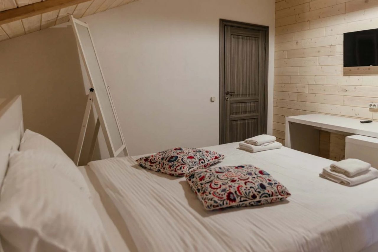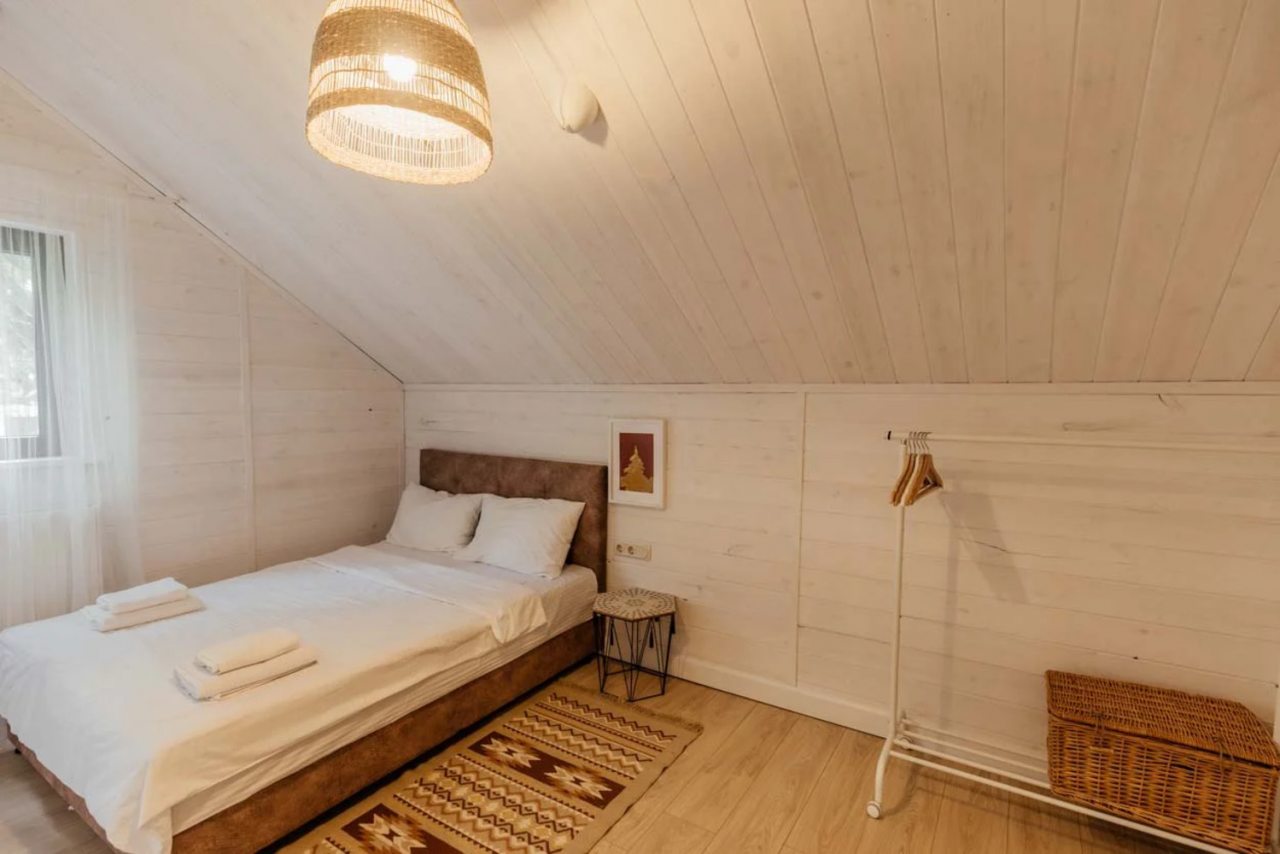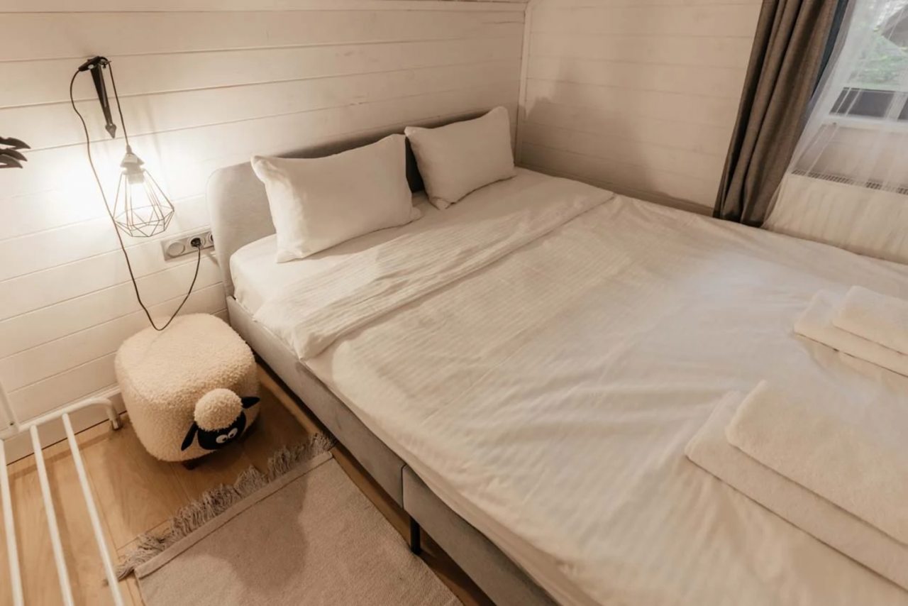 Мы снимали коттедж. В нем было все нужное. Спальные места свежие, не отсыревшие, удобные матрасы. Ванная комната с душем, с горячей водой без перебоев, нам хватало. Есть кухня, небольшая, но все нужное в наличии. Есть баня, нужно бронировать заранее свое время. Природа вокруг сказочная. Довольны приемом.