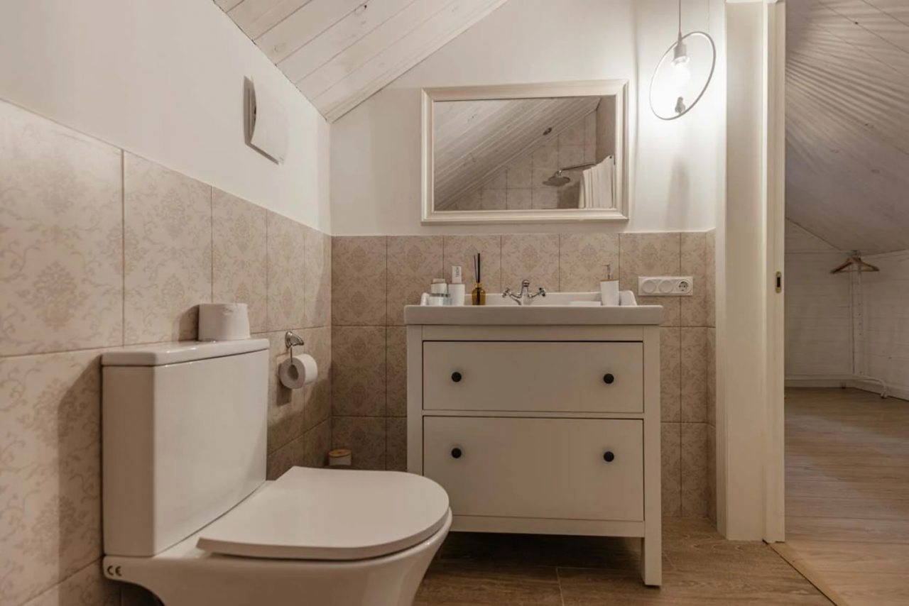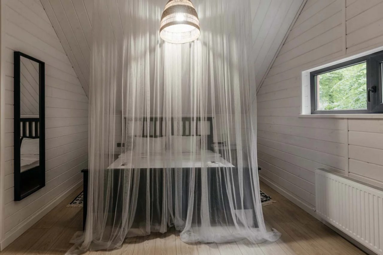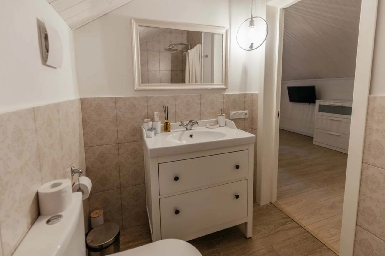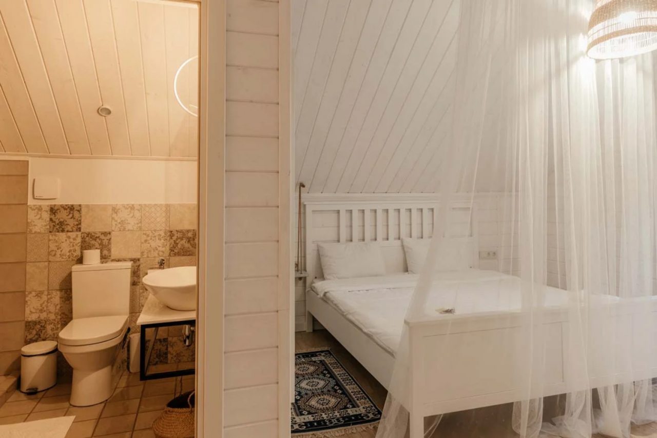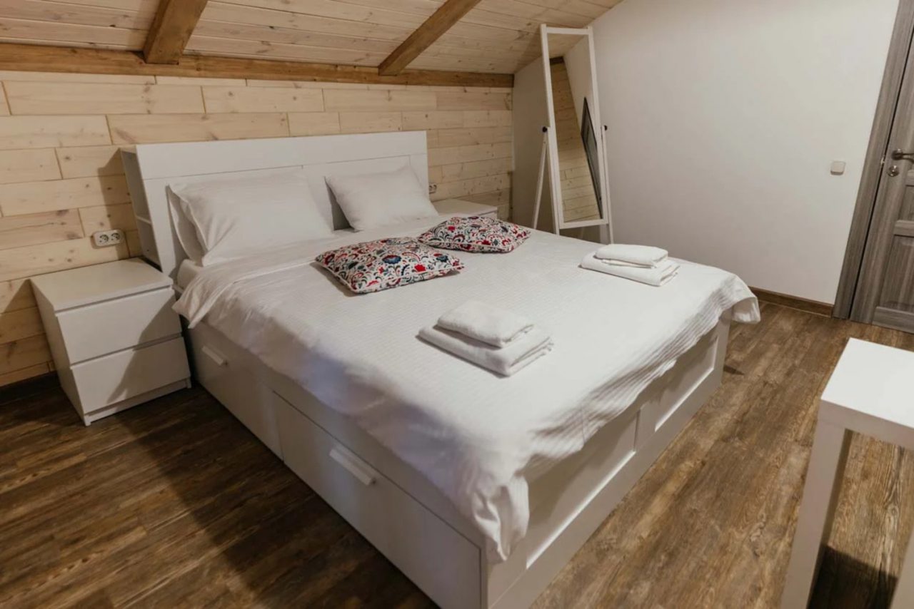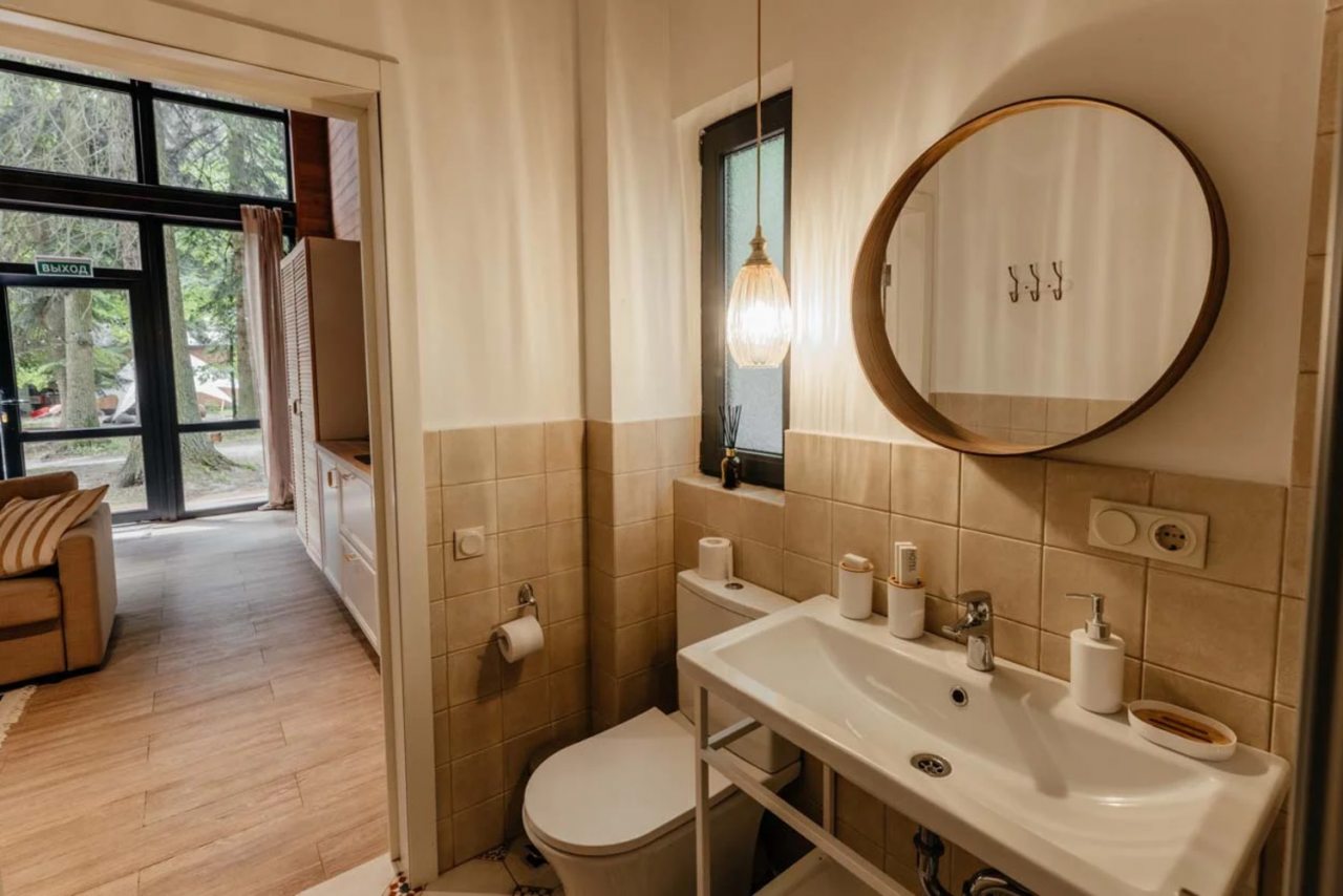 Мы снимали коттедж. В нем было все нужное. Спальные места свежие, не отсыревшие, удобные матрасы. Ванная комната с душем, с горячей водой без перебоев, нам хватало. Есть кухня, небольшая, но все нужное в наличии. Есть баня, нужно бронировать заранее свое время. Природа вокруг сказочная. Довольны приемом.
