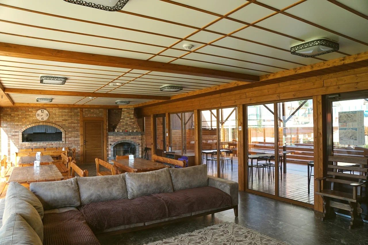 Для проживания постояльцам предоставляются коттеджи с четырехместными номерами. В гостевом доме присутствует все для проживания: панорамные окна, теплый пол, телевизор.