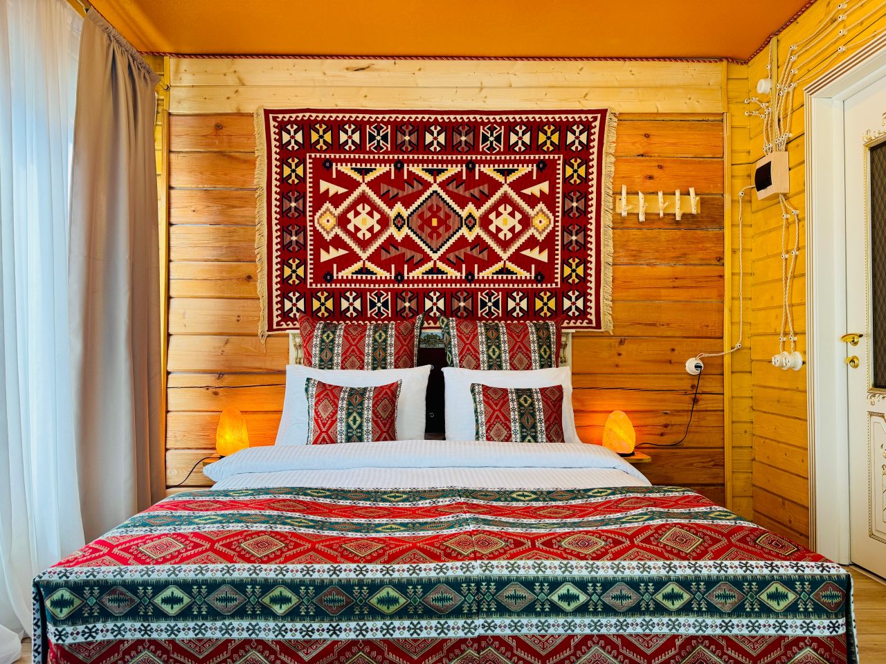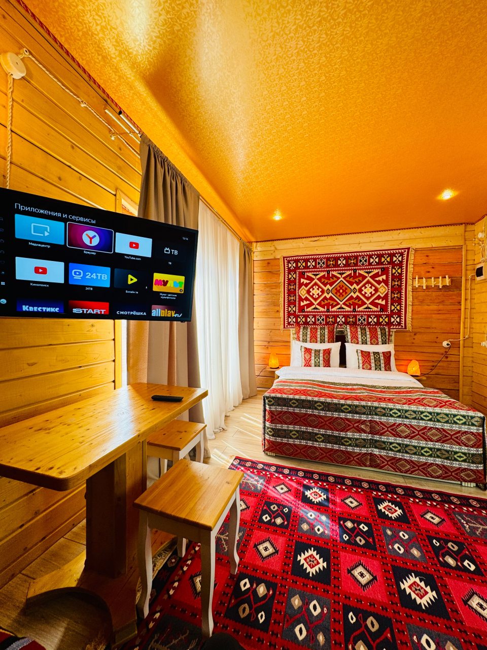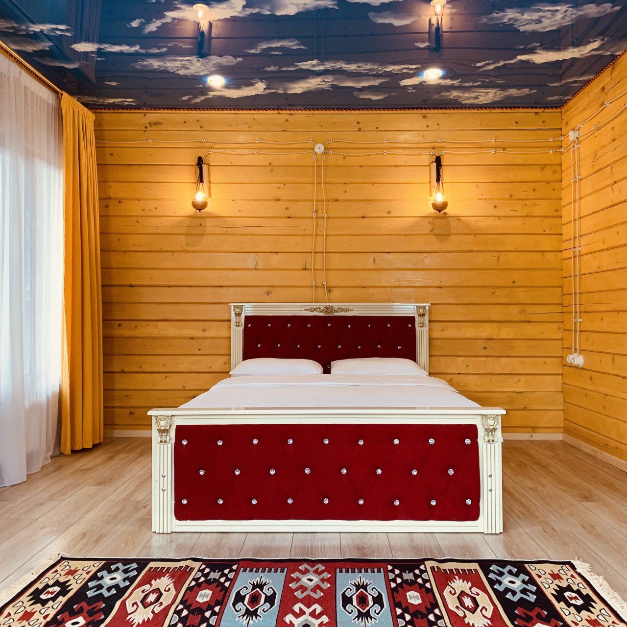 В гостевом доме представлены номера различных категорий комфортности с высокими потолками и стенами из экологичного бруса. В номерах есть телевизор, Wi-Fi, мини-холодильник. Во всех вариантах свои ванные комнаты с душевой кабиной.