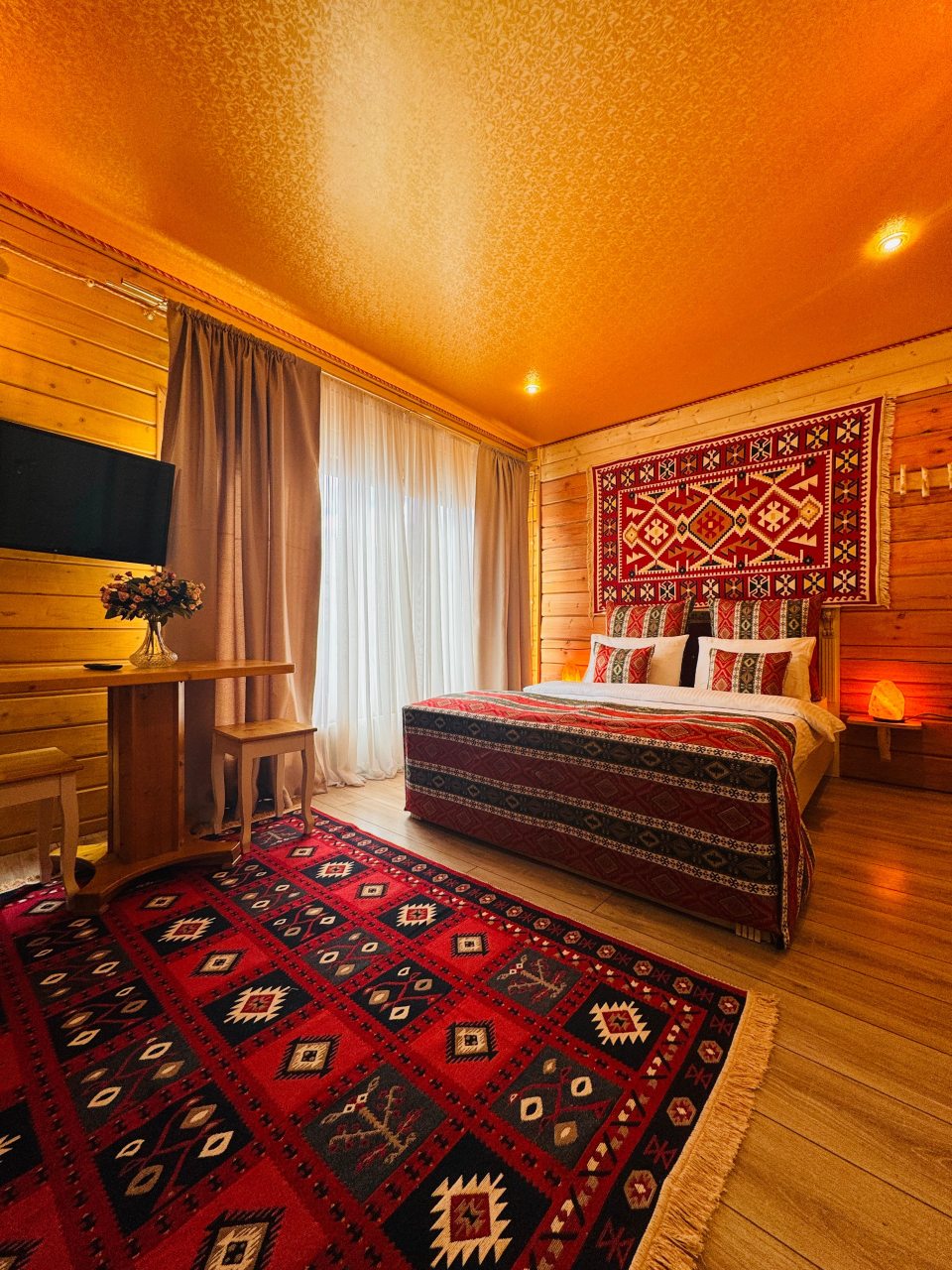 Это прекрасный отель! При желании можно заказать в отеле завтраки, обеды. Заказывали завтраки, еда здесь просто потрясающая! Номера просторные, все необходимое есть! Виды нереальные на горы!!! Хозяева очень отзывчивые. Отель однозначно рекомендую!