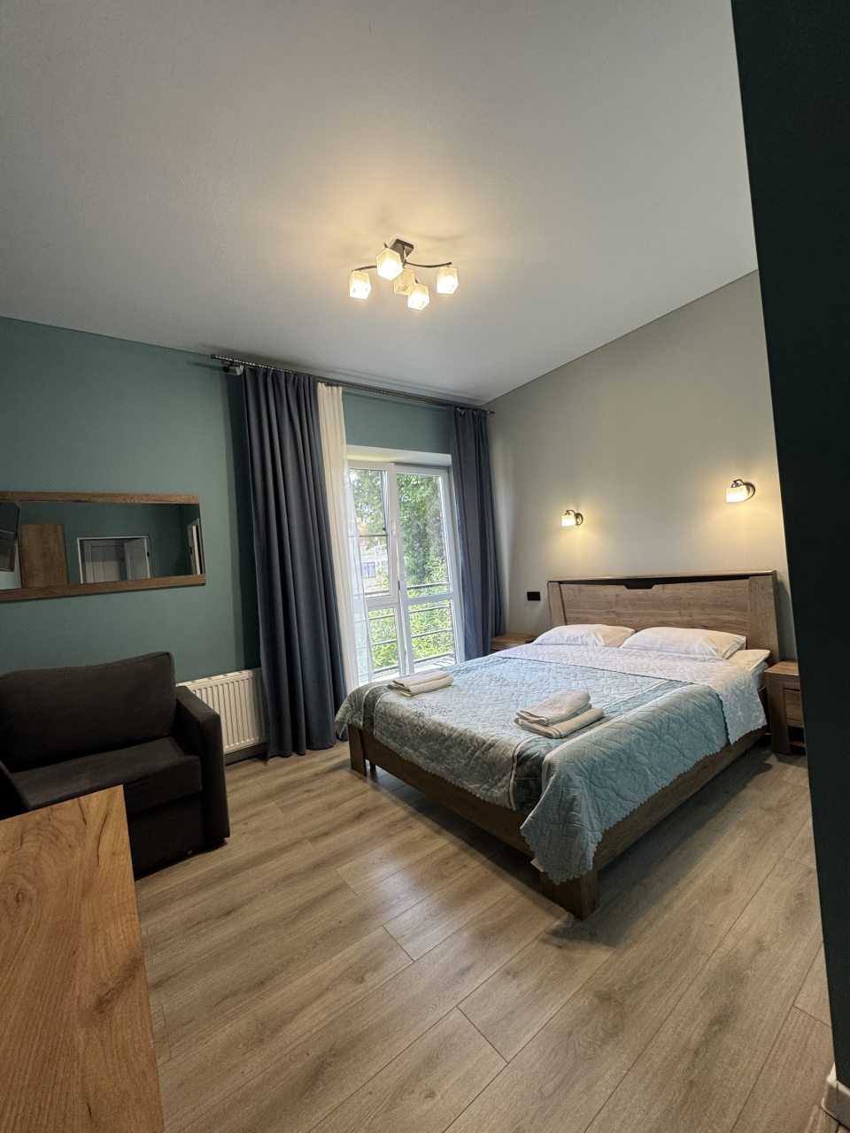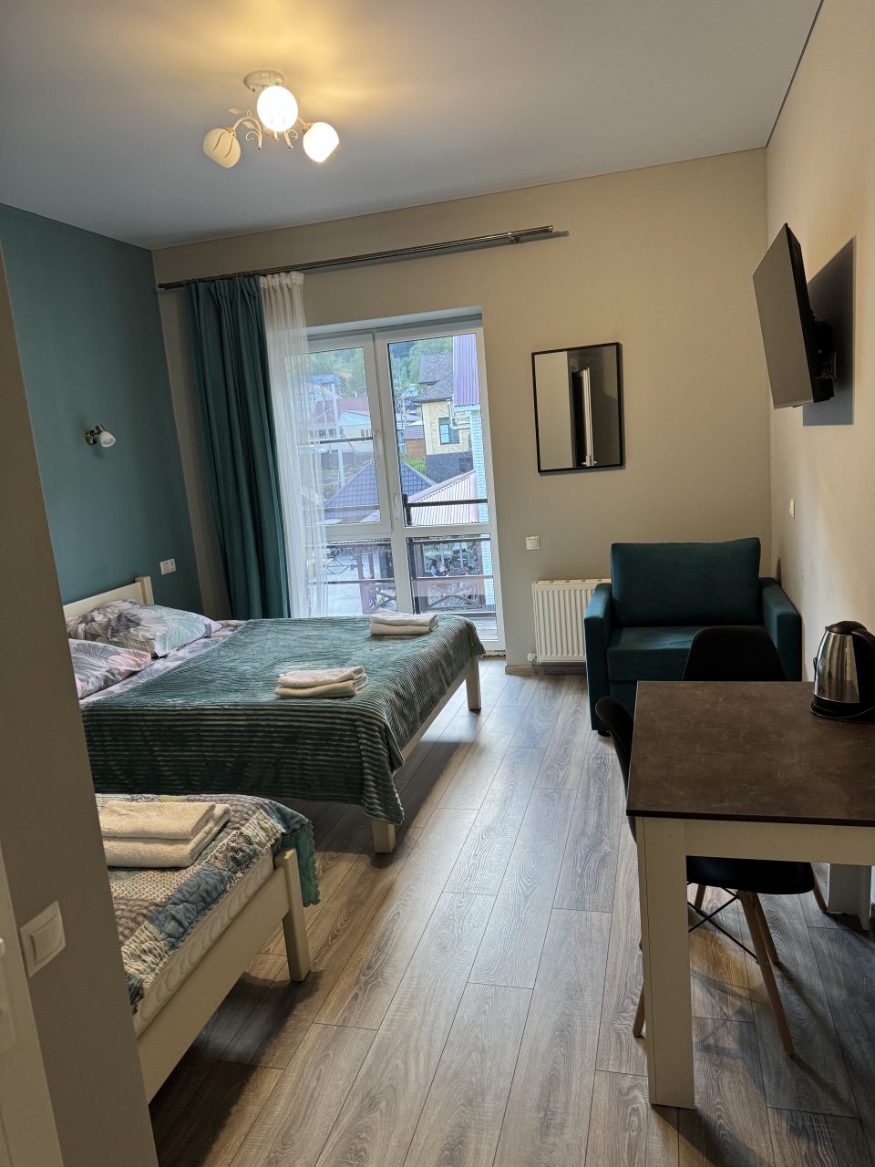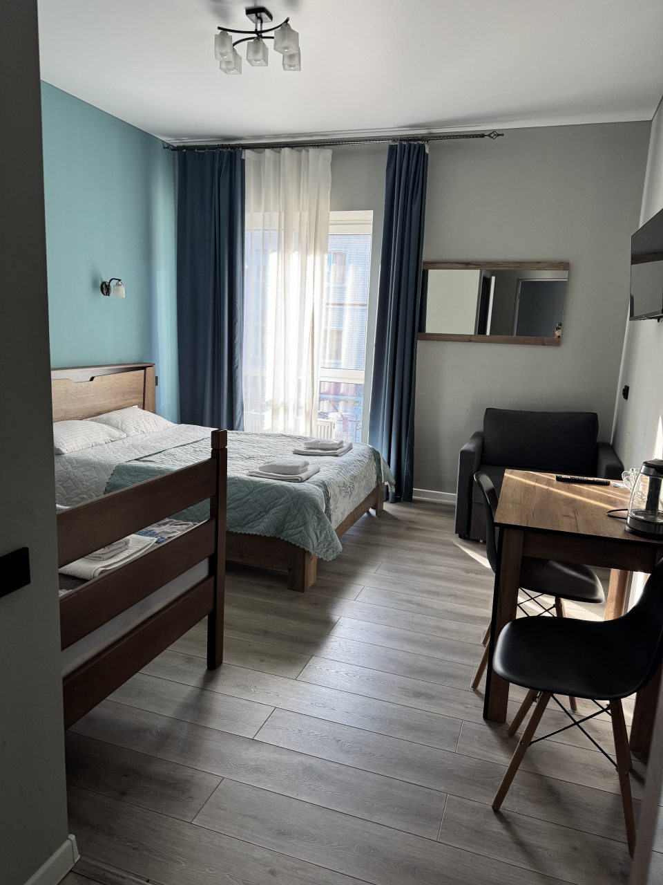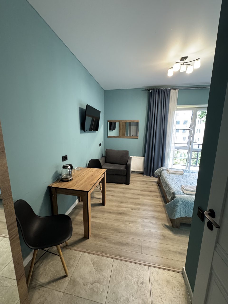 Чистота, современный ремонт, наличие столовой со всем необходимым, красивый вид из окна с балконом, интернет вай фай