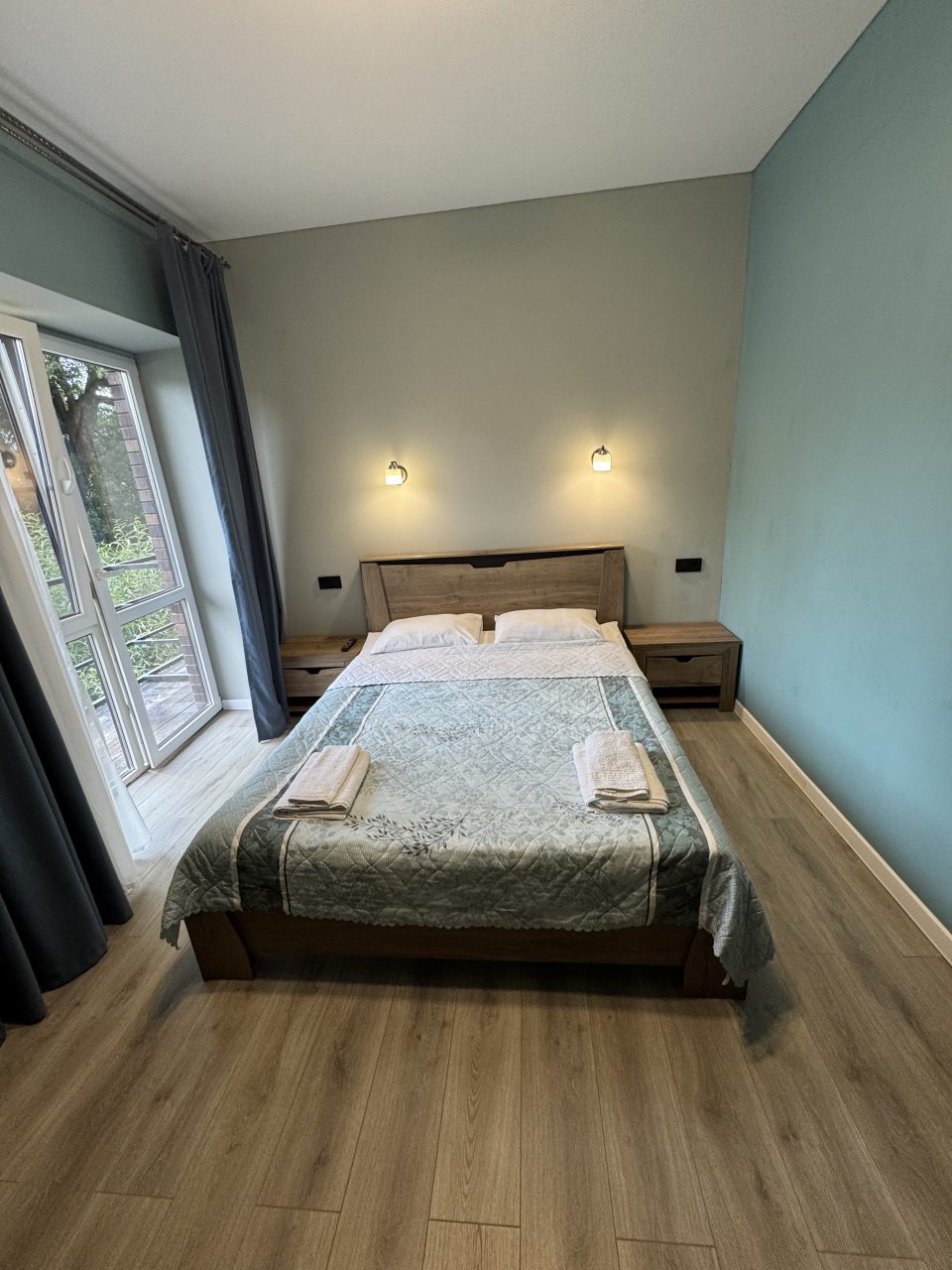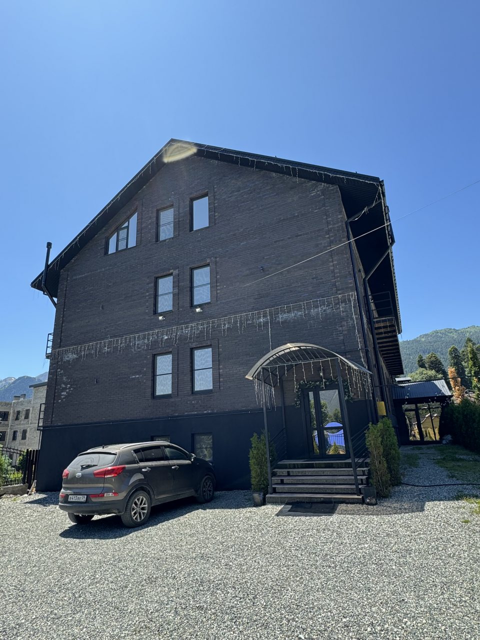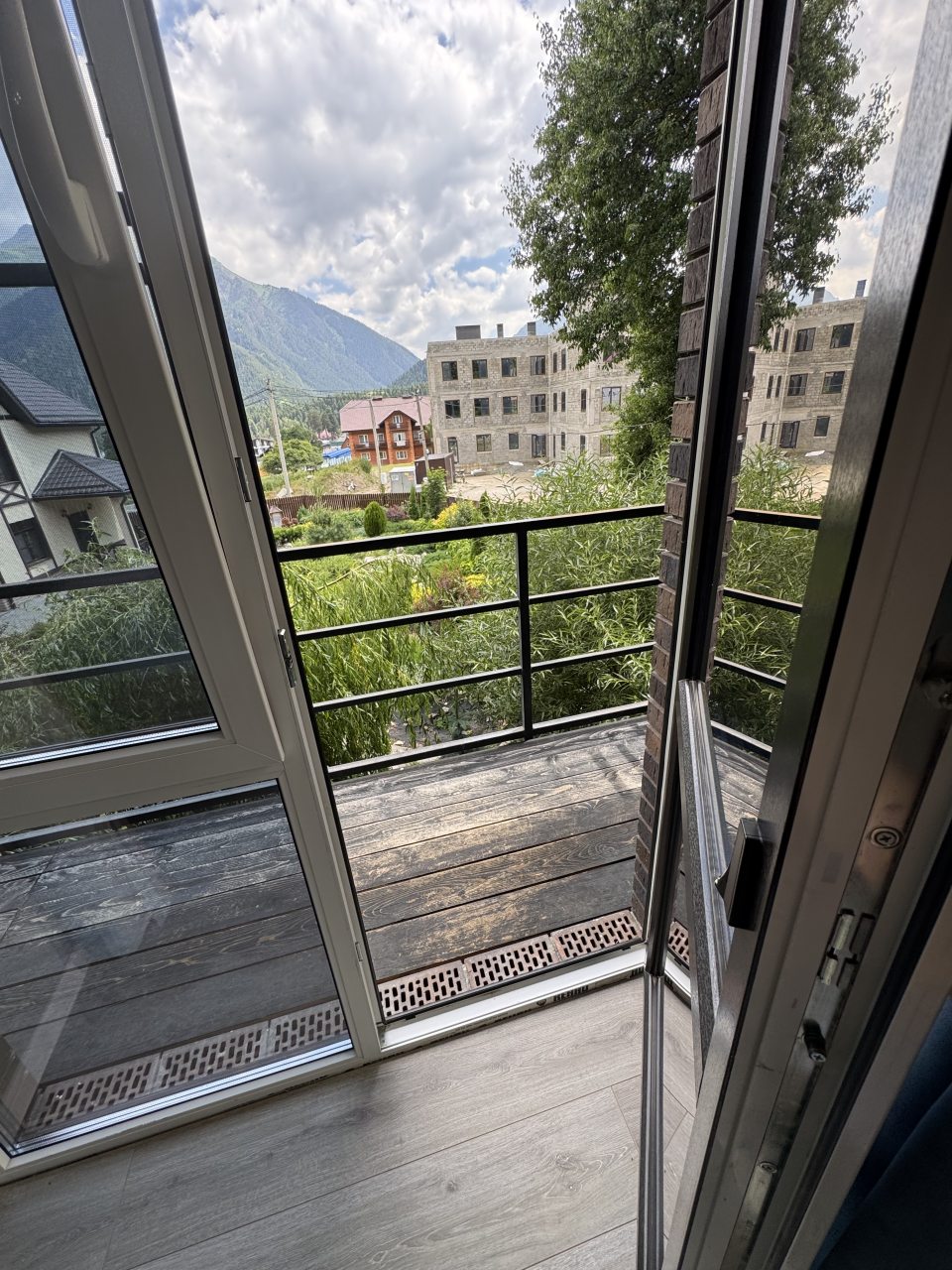 Внутри гостиница очень уютная, с хорошим ремонтом и чистотой. Приятный дворик с детской горкой и качелями добавляет комфорта для семей с детьми. Кухня оборудована газовой плитой, что удобно для самостоятельного приготовления еды. Большой балкон предоставляет прекрасное место для отдыха на свежем воздухе.