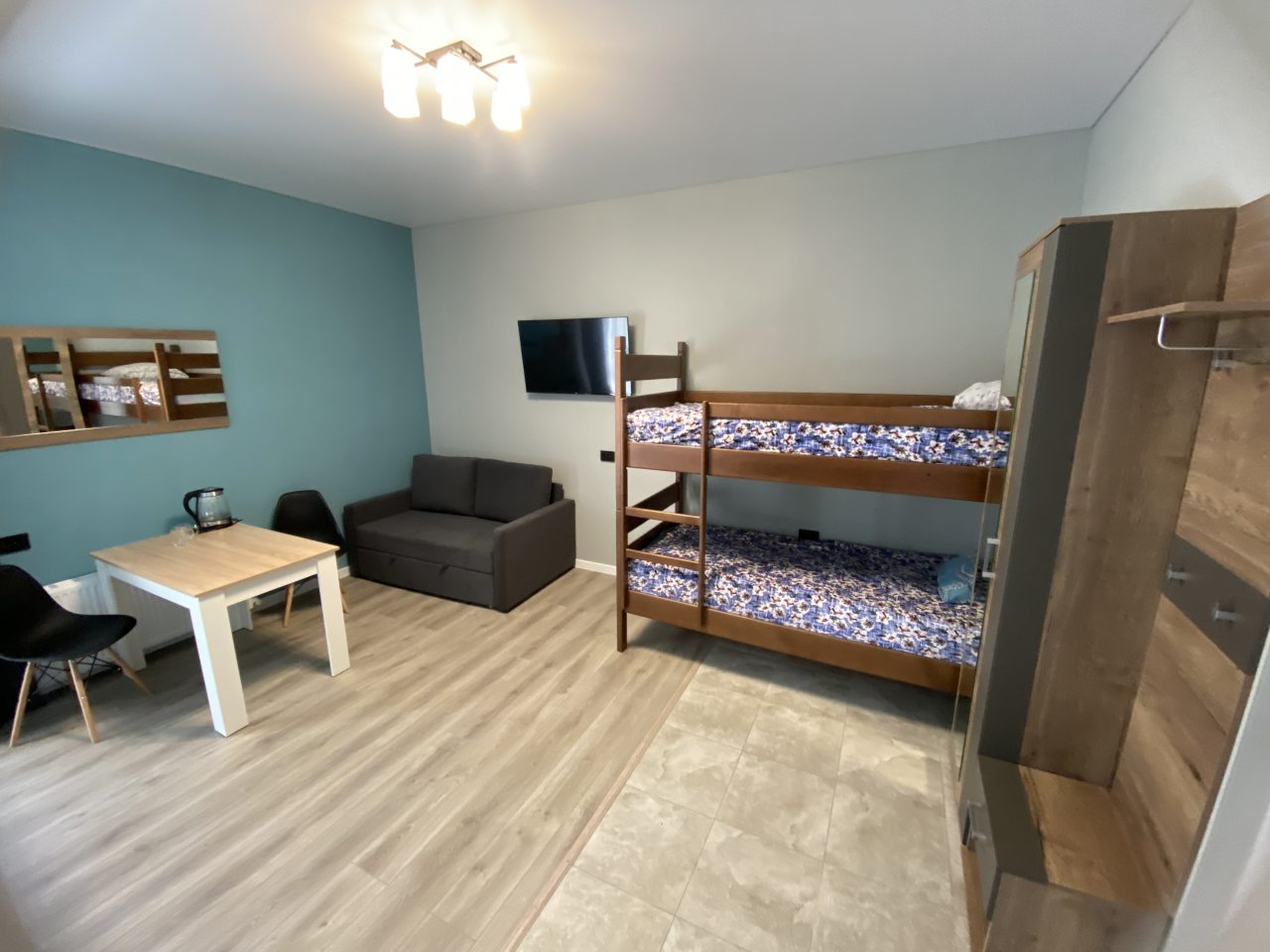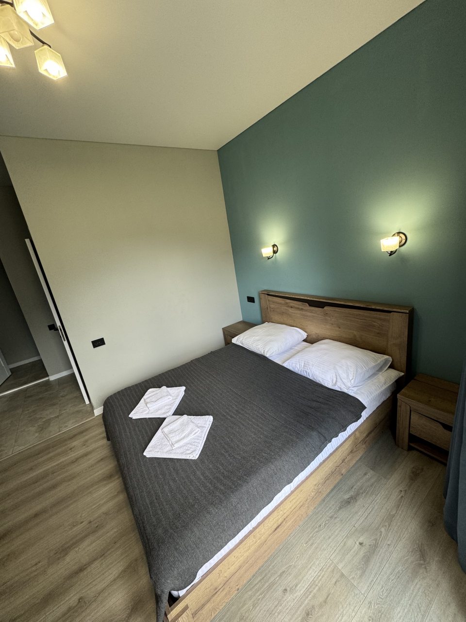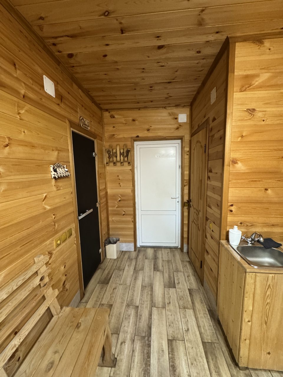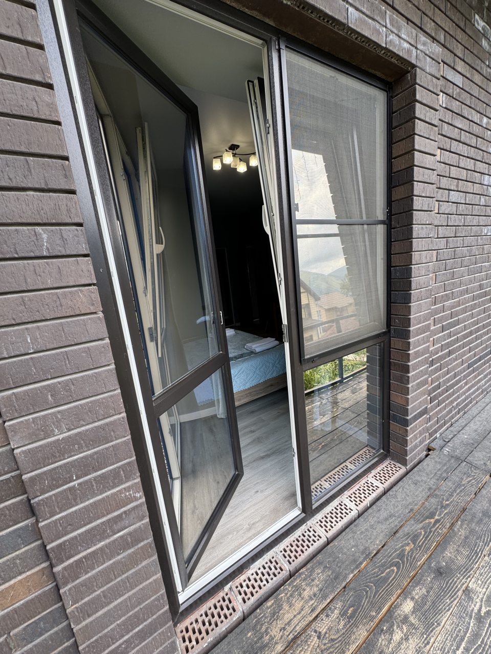 Внутри гостиница очень уютная, с хорошим ремонтом и чистотой. Приятный дворик с детской горкой и качелями добавляет комфорта для семей с детьми. Кухня оборудована газовой плитой, что удобно для самостоятельного приготовления еды. Большой балкон предоставляет прекрасное место для отдыха на свежем воздухе.