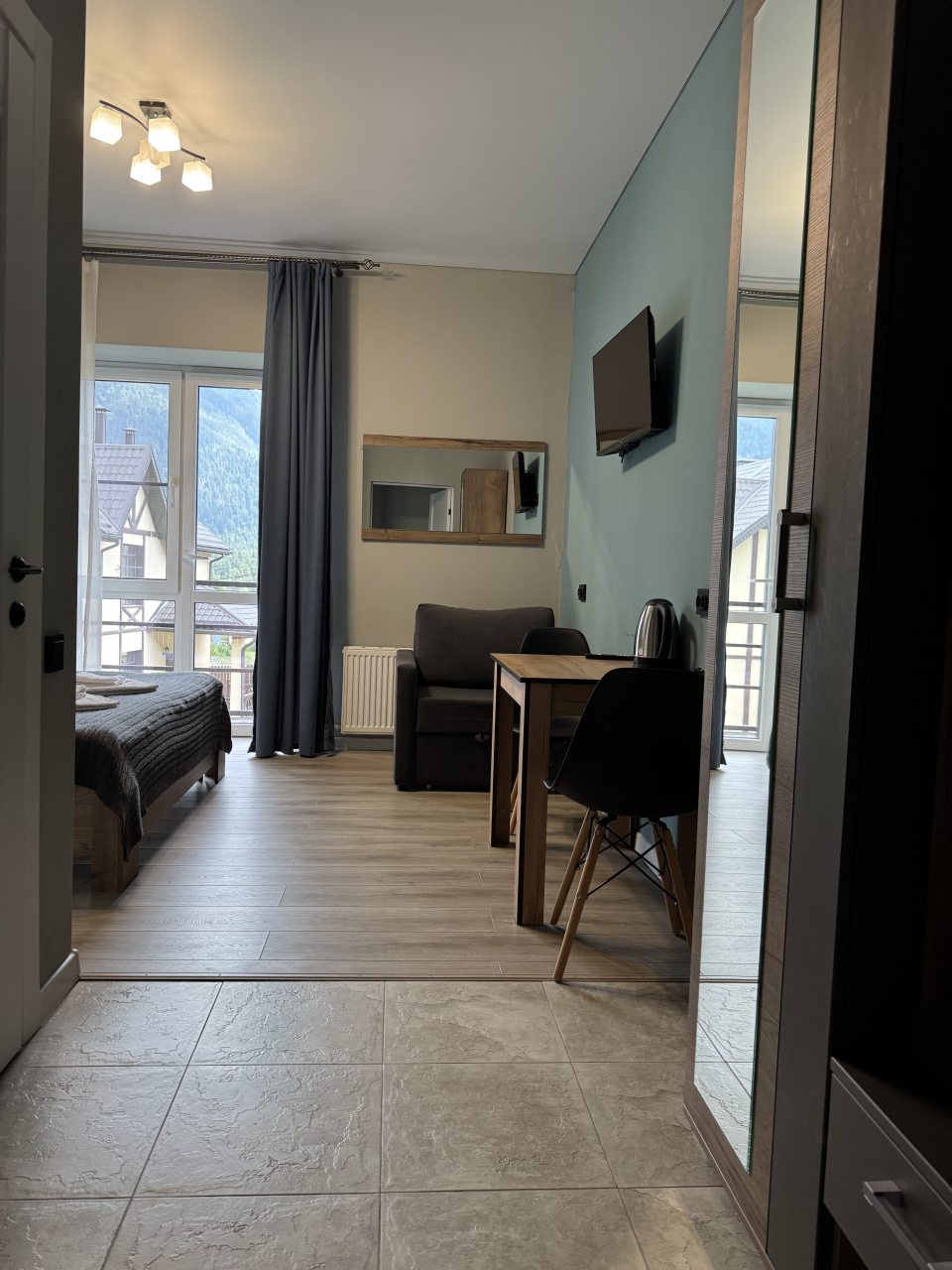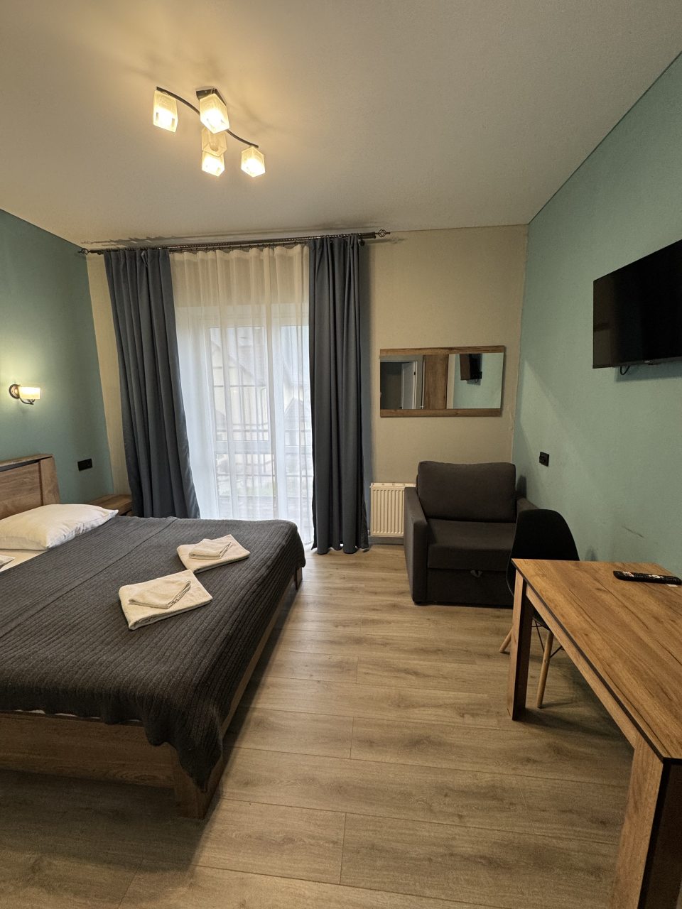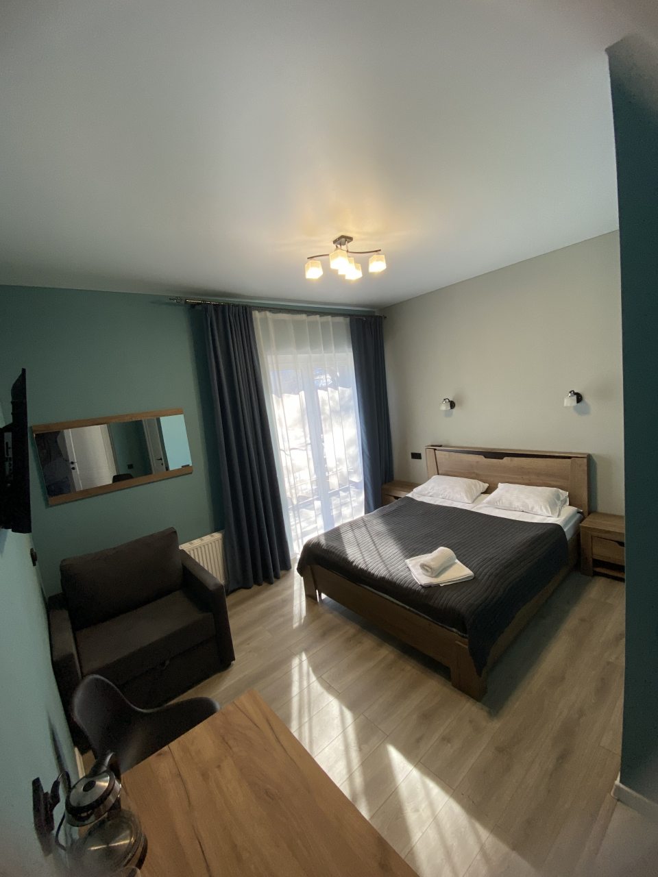 В распоряжении гостей уютные номера с собственной ванной комнатой, спальными местами, шкафом, телевизором и Wi-Fi. Из окон открывается великолепный вид на горы.
