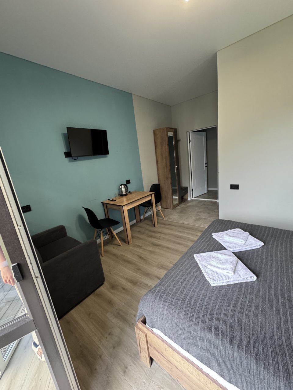 Из недостатков: нет моб.связи (наверно везде в посёлке), в отеле работает вай фай, нет стойки ресепшн, нет уборки номеров, мы проживали 3 дня, никто не заходил в номер. Нет туалетной бумаги и мусорной корзины в комнате.