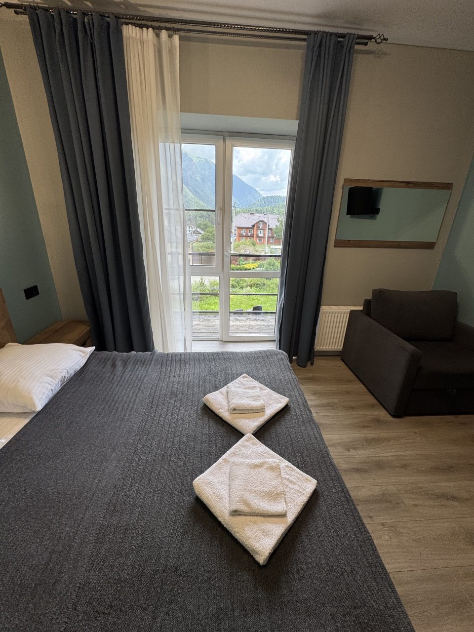 Прекрасный отдых! Это был наш первый визит в этот гостевой дом, и мы не разочарованы! Очень уютные номера, отличное обслуживание, внимательные сотрудники. Мы пользовались услугами спа, а именно баней, а также ездили на экскурсии, организованные отелем. Вид на горы просто потрясающий! Обязательно вернемся!