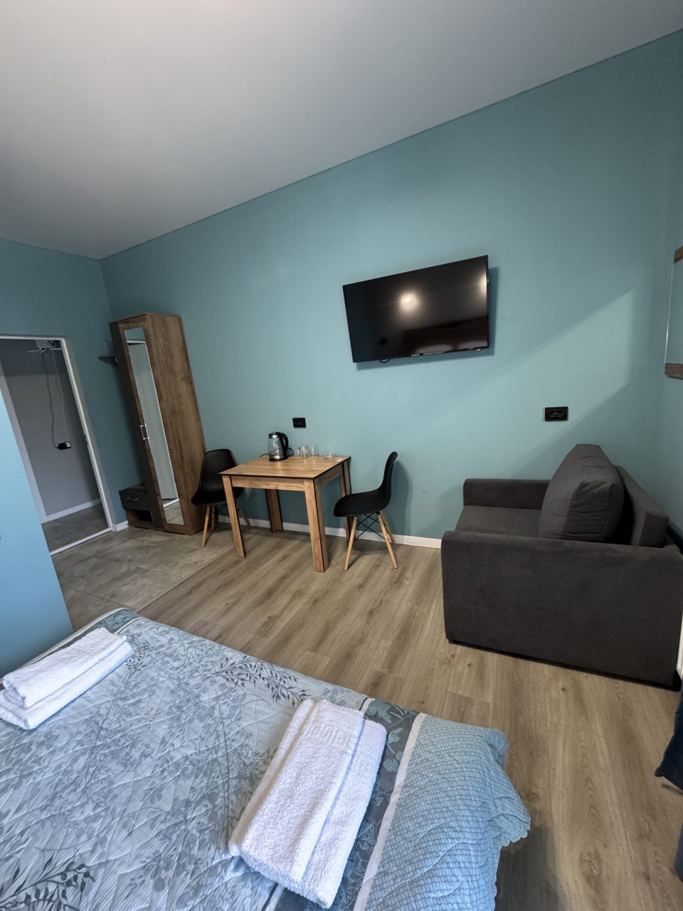 Из недостатков: неясно, куда выносить мусор, который скопился в комнате. Также в номере не было стаканов, что создало неудобства при наливании напитков. Пришлось купить пластиковые стаканчики.
