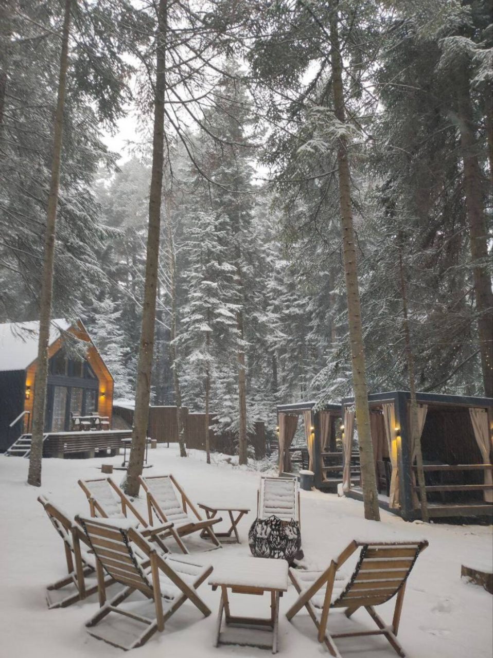 Сказочное место для семейного времяпрепровождения. Детям и нам с мужем очень понравилось. Есть все необходимое для отдыха. Даже мягкие халаты. Очень классно, что окна панорамные и из них открывается красивый лесной пейзаж.
