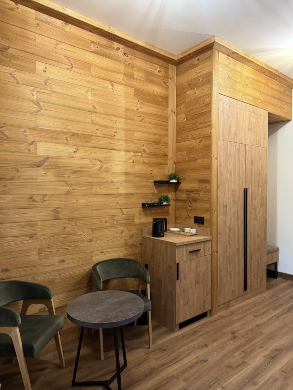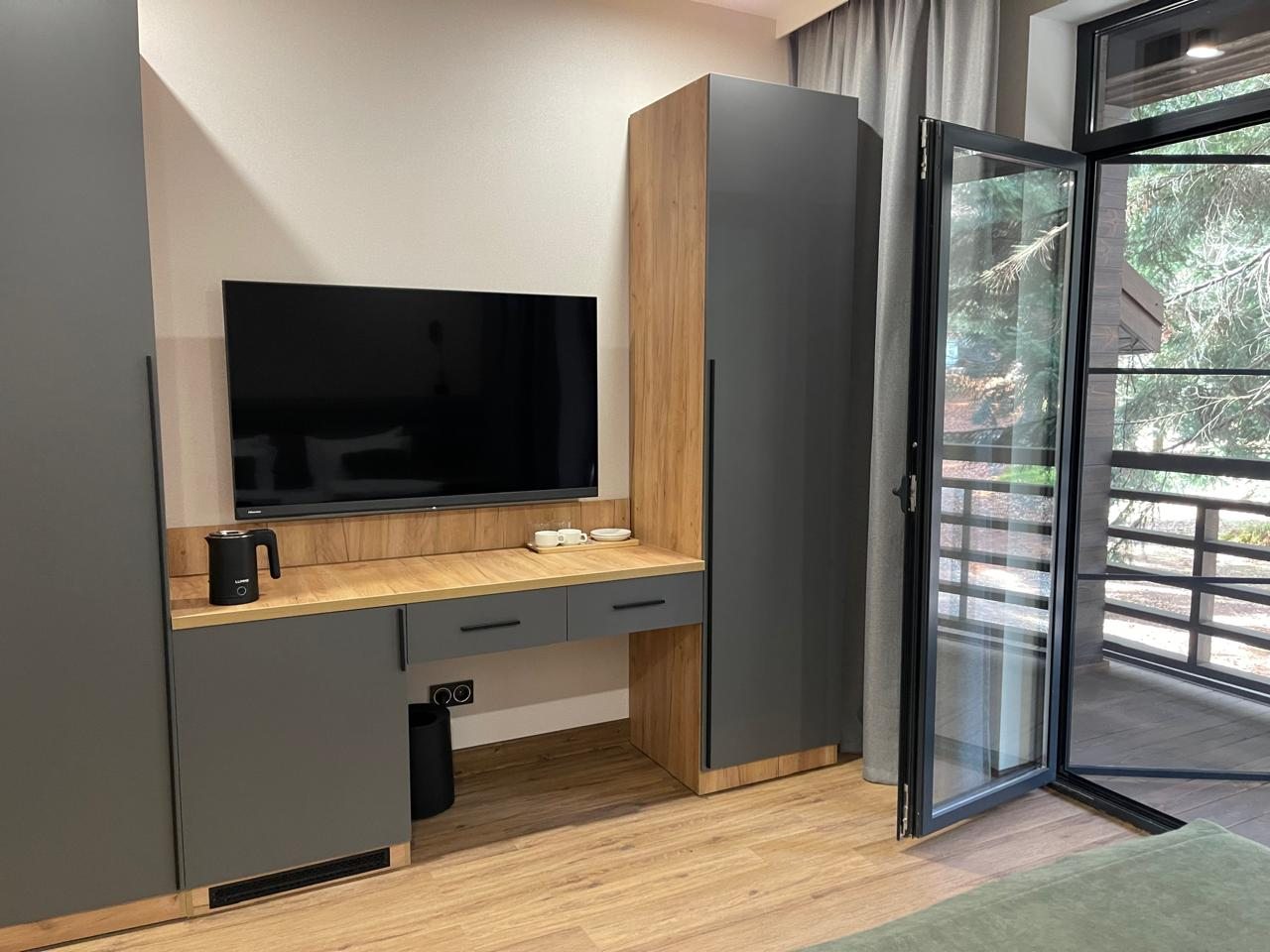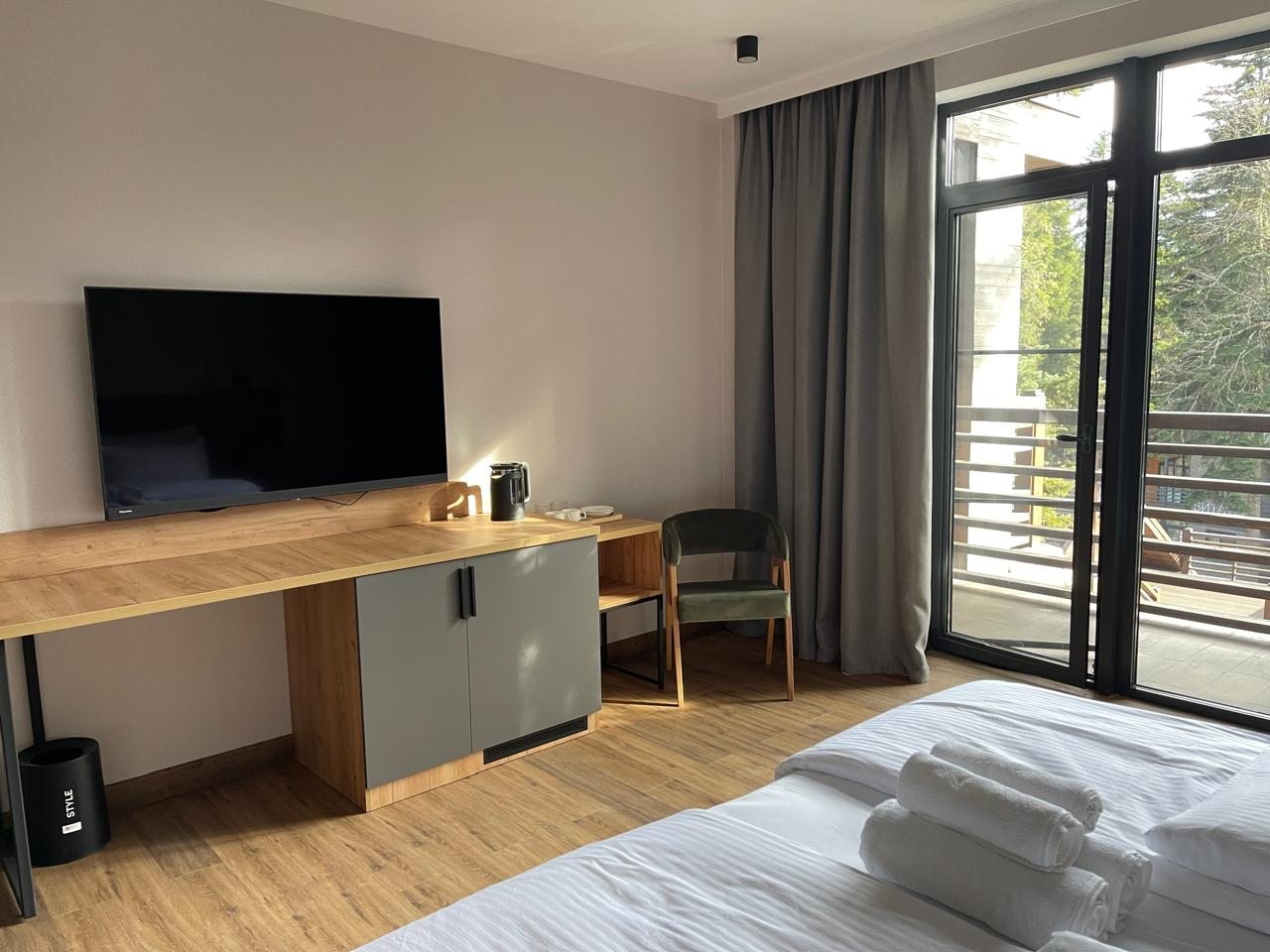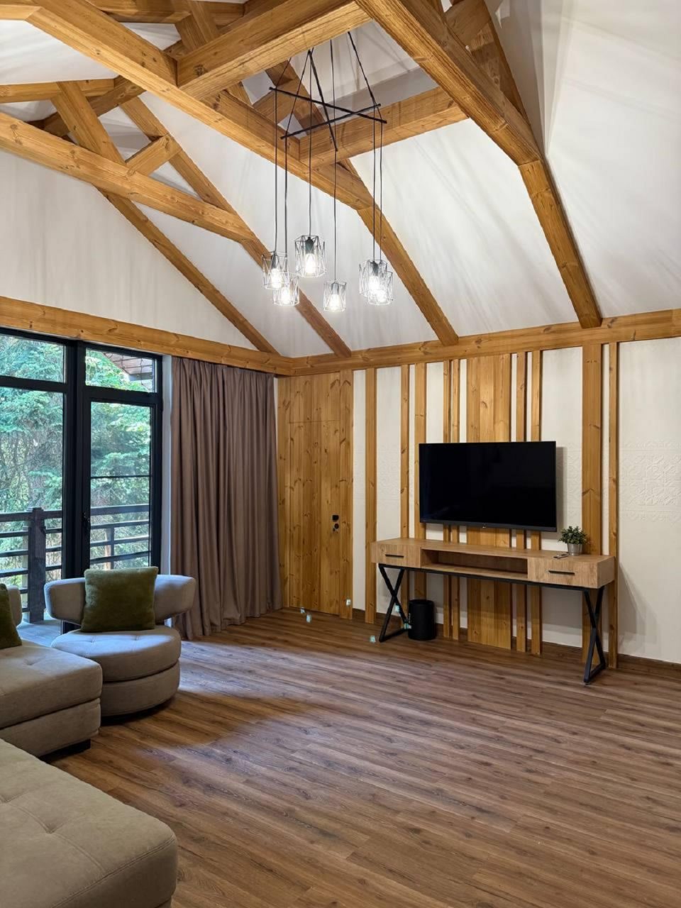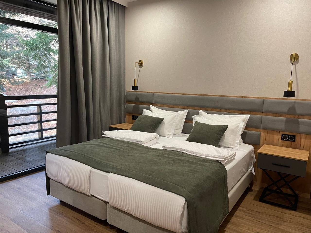 Для проживания предлагаются различные категории номеров — от уютного двухместного «Стандарта» до просторного четырёхместного «Делюкса» с террасой. В каждом номере вас ожидает качественная мебель и техника, удобная кровать и санузел с необходимой сантехникой и комплектом полотенец. Из окон можно созерцать величественные ели, за счет чего создается неповторимая атмосфера единения с природой.