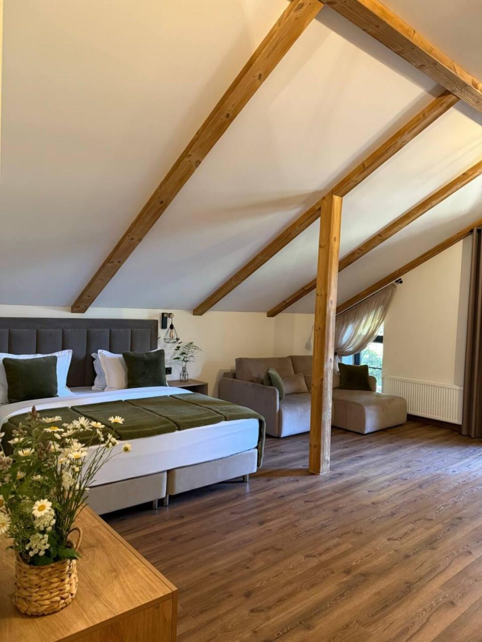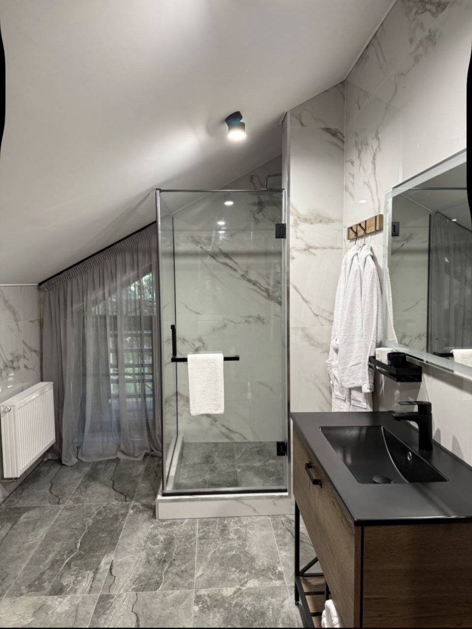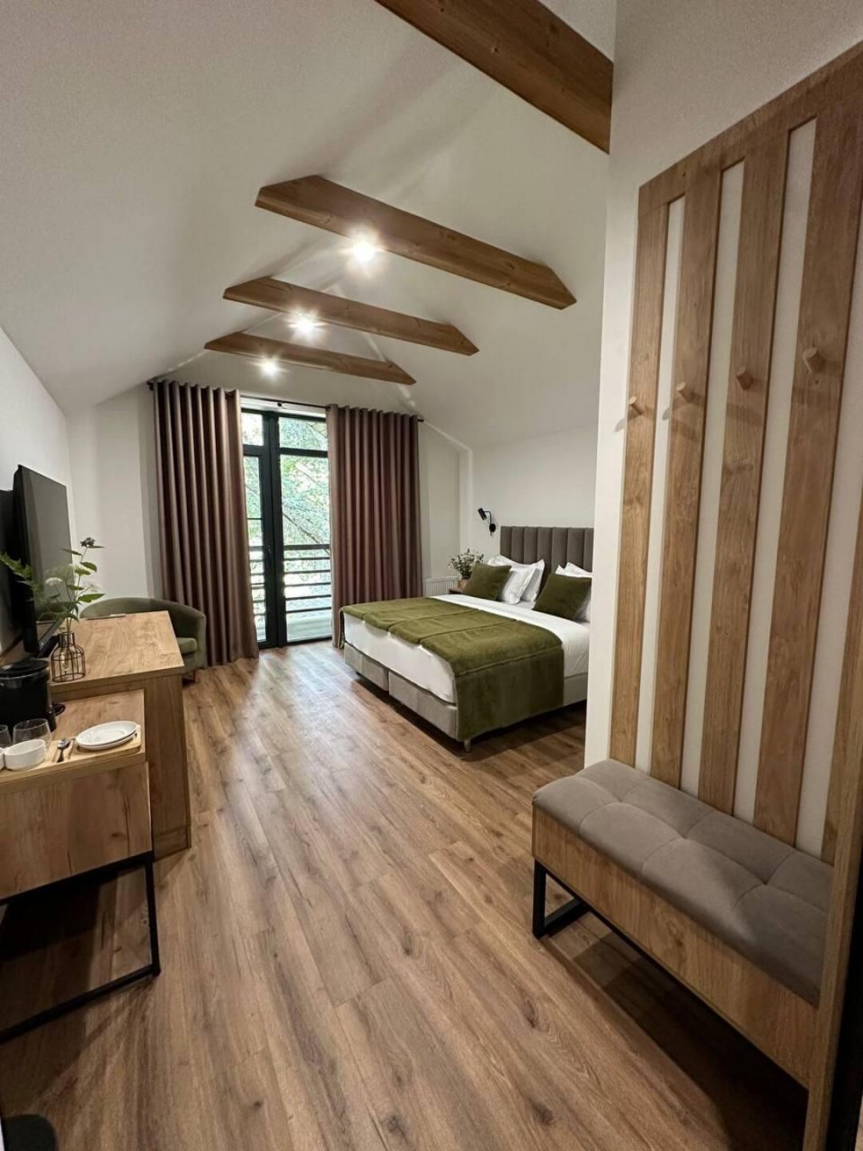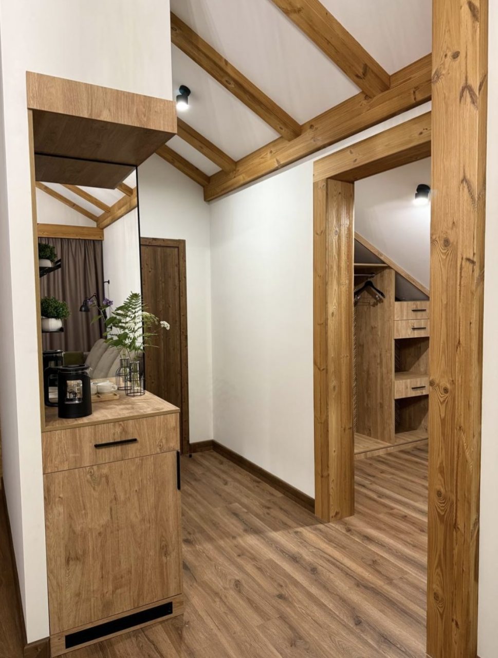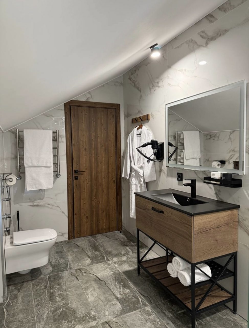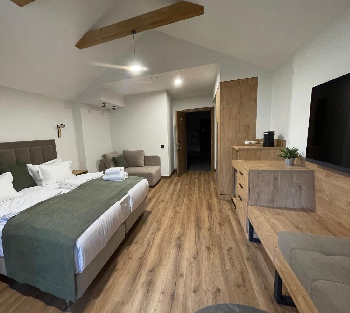Для проживания предлагаются различные категории номеров — от уютного двухместного «Стандарта» до просторного четырёхместного «Делюкса» с террасой. В каждом номере вас ожидает качественная мебель и техника, удобная кровать и санузел с необходимой сантехникой и комплектом полотенец. Из окон можно созерцать величественные ели, за счет чего создается неповторимая атмосфера единения с природой.