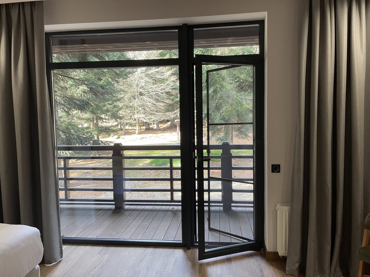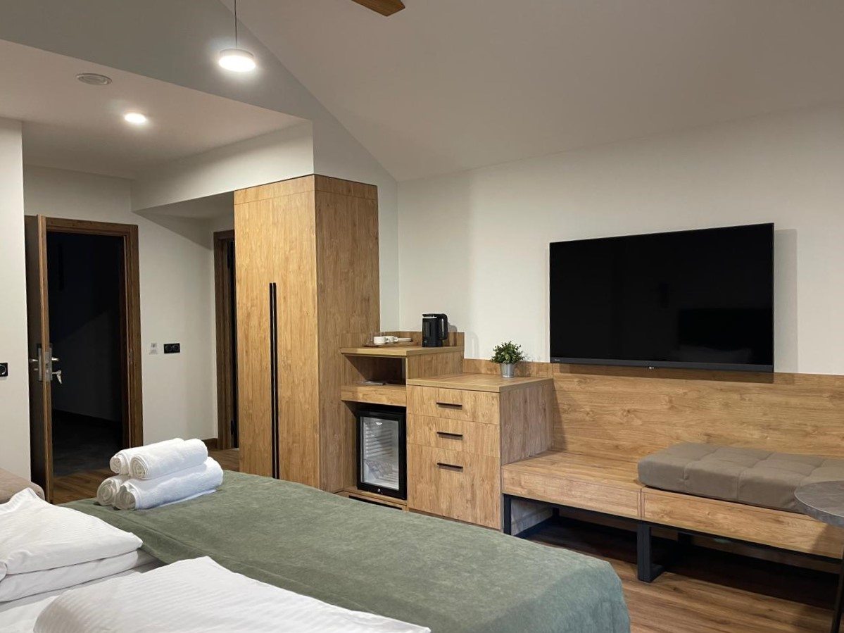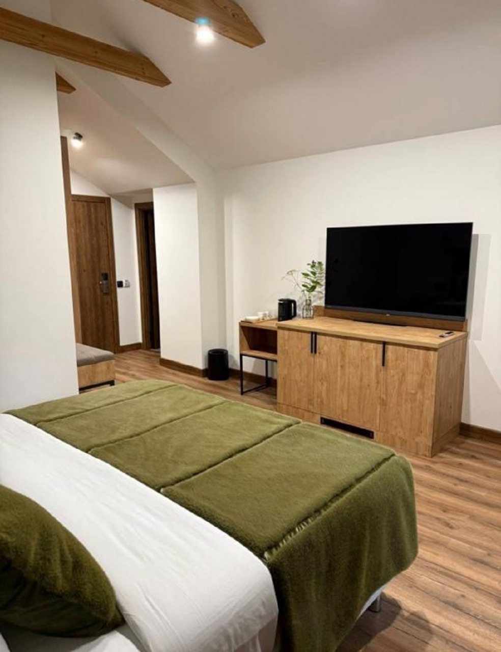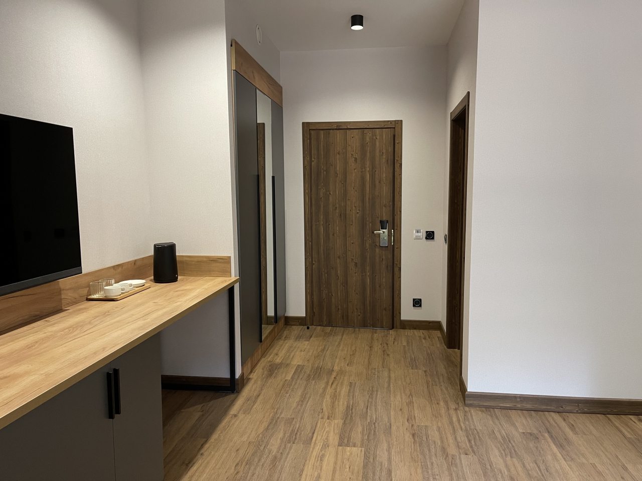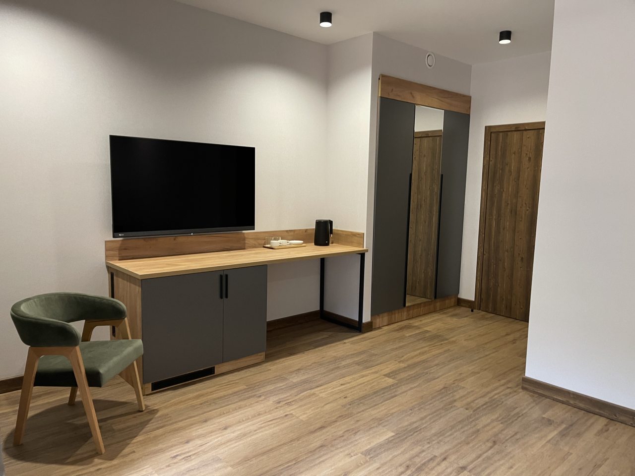 Для проживания предлагаются различные категории номеров — от уютного двухместного «Стандарта» до просторного четырёхместного «Делюкса» с террасой. В каждом номере вас ожидает качественная мебель и техника, удобная кровать и санузел с необходимой сантехникой и комплектом полотенец. Из окон можно созерцать величественные ели, за счет чего создается неповторимая атмосфера единения с природой.