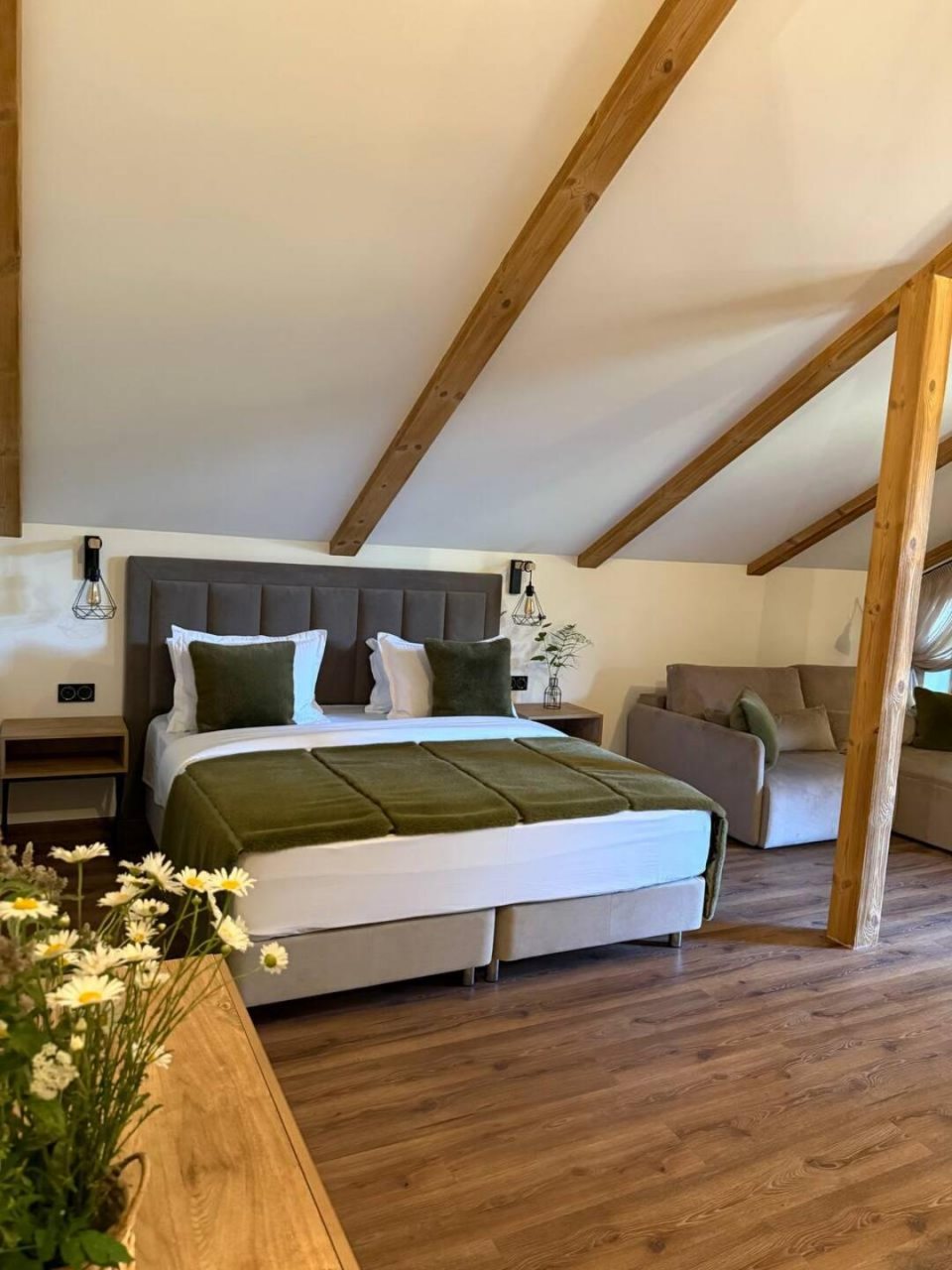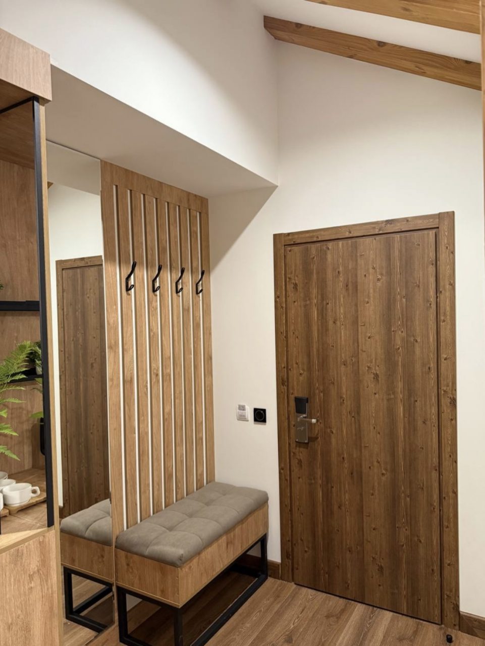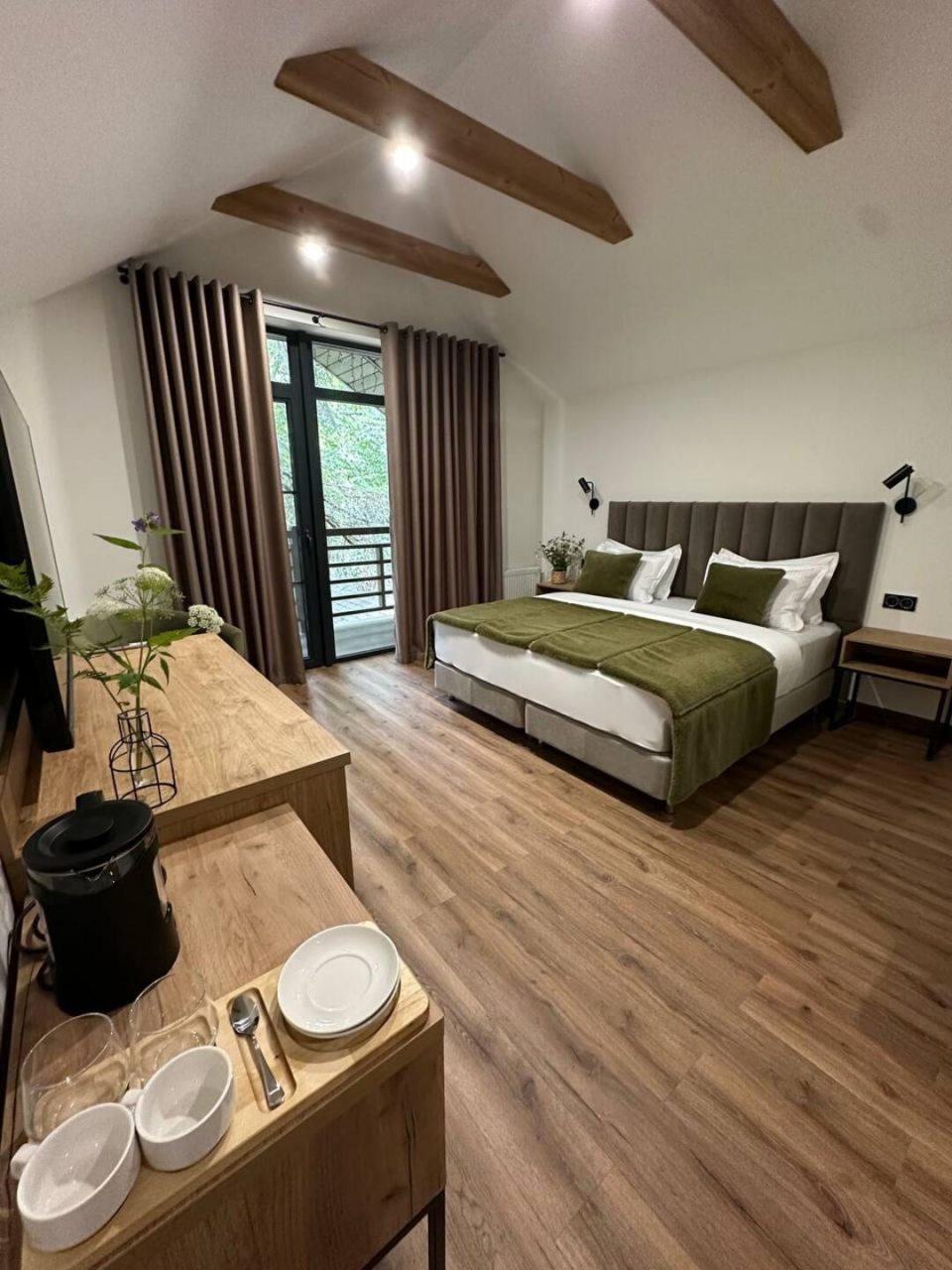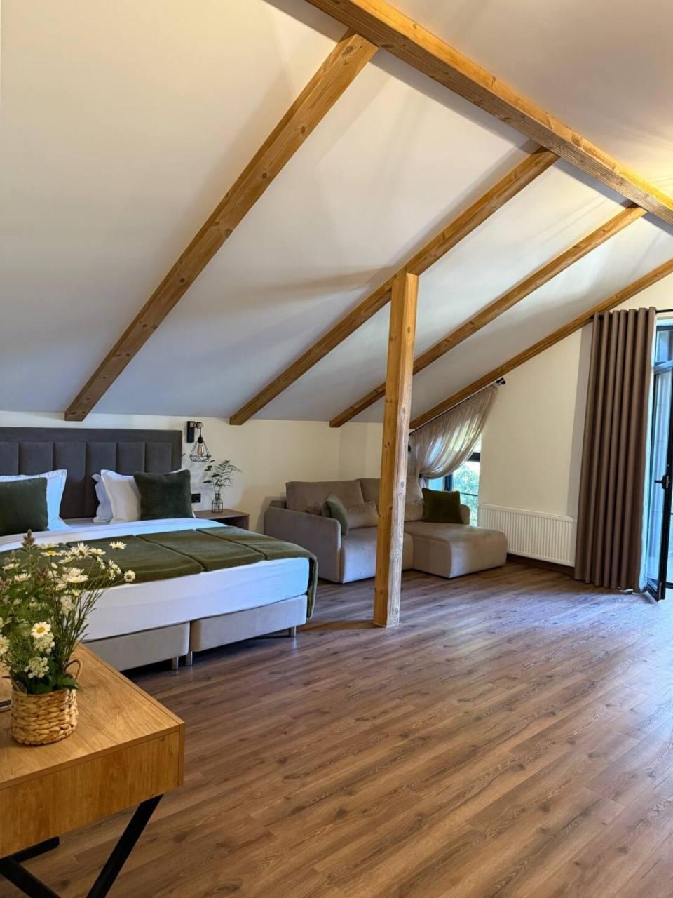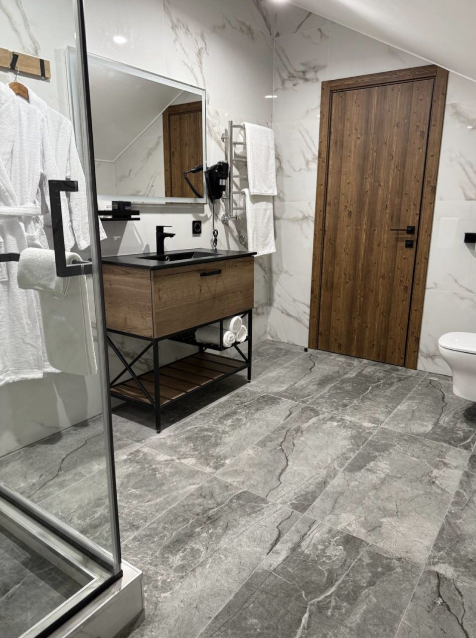 Для проживания предлагаются различные категории номеров — от уютного двухместного «Стандарта» до просторного четырёхместного «Делюкса» с террасой. В каждом номере вас ожидает качественная мебель и техника, удобная кровать и санузел с необходимой сантехникой и комплектом полотенец. Из окон можно созерцать величественные ели, за счет чего создается неповторимая атмосфера единения с природой.