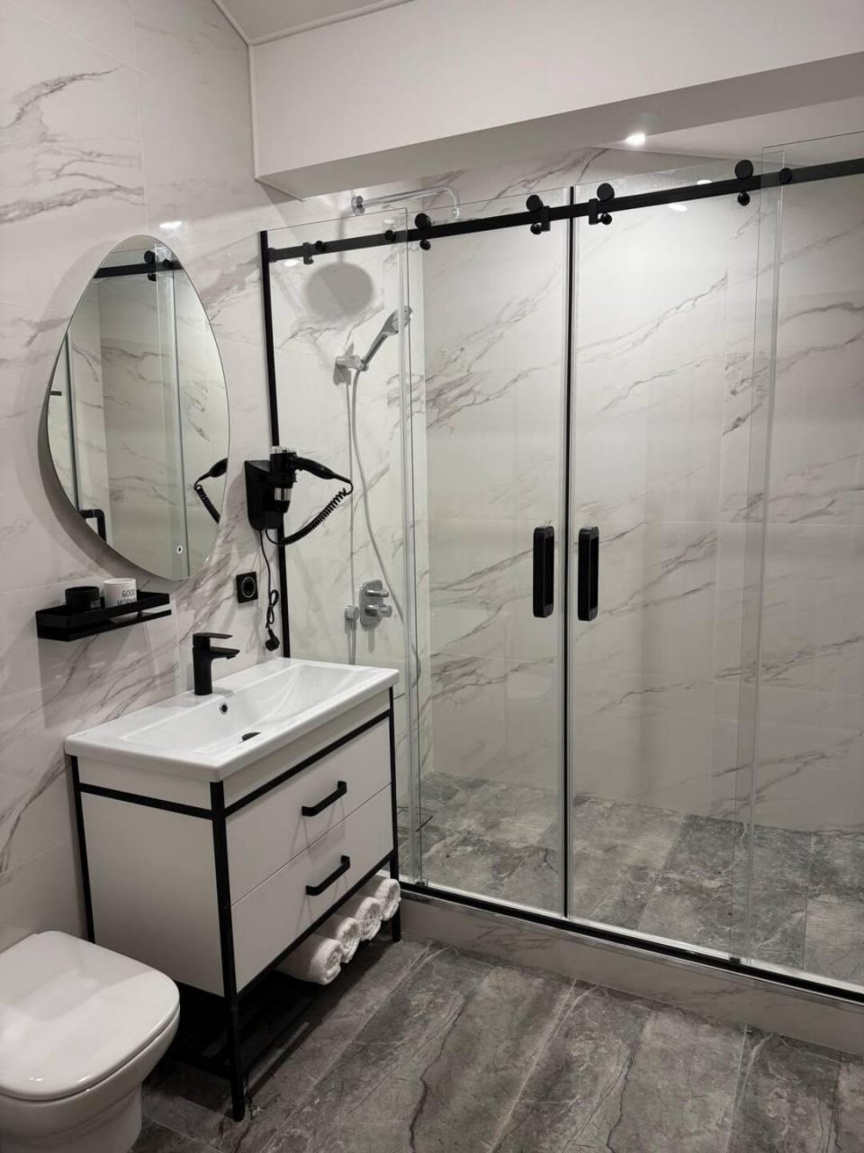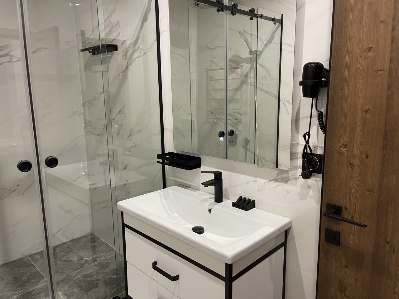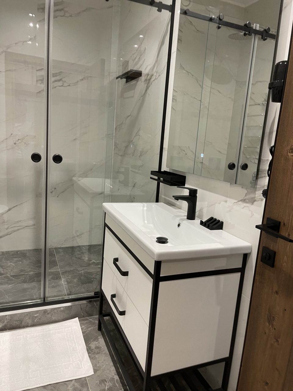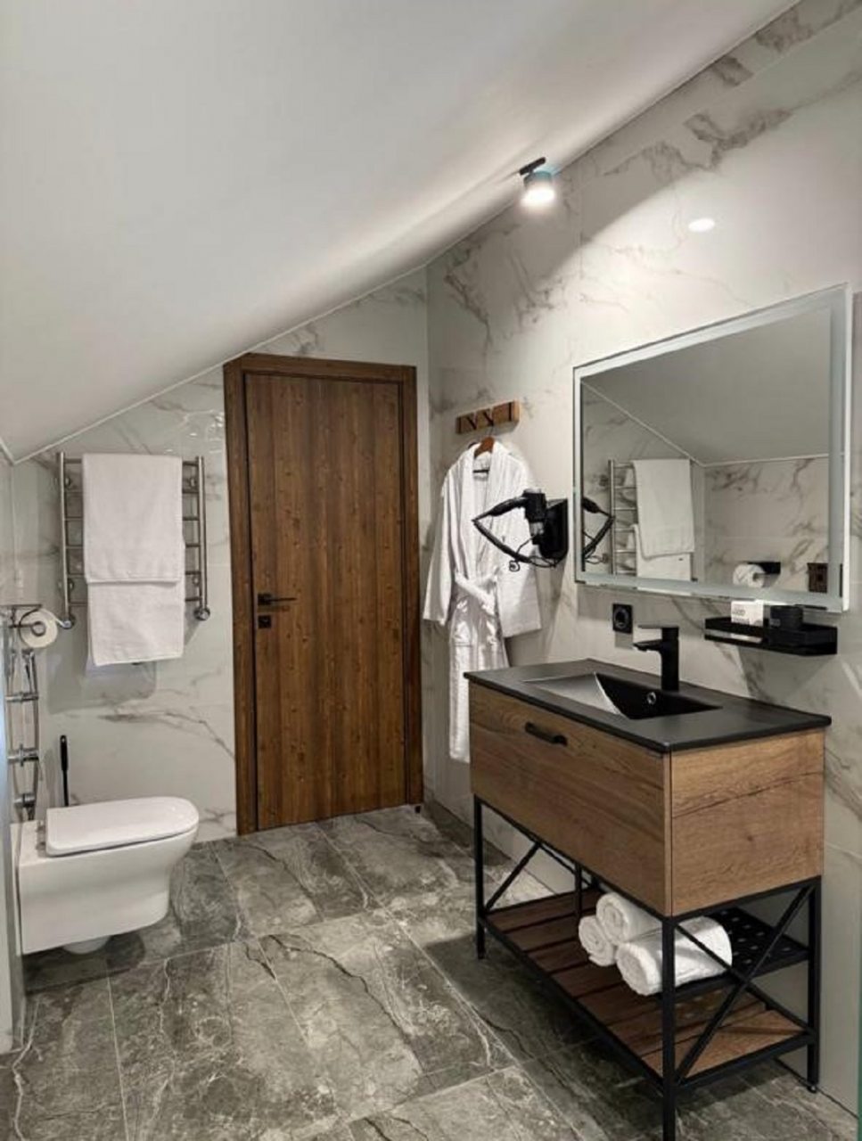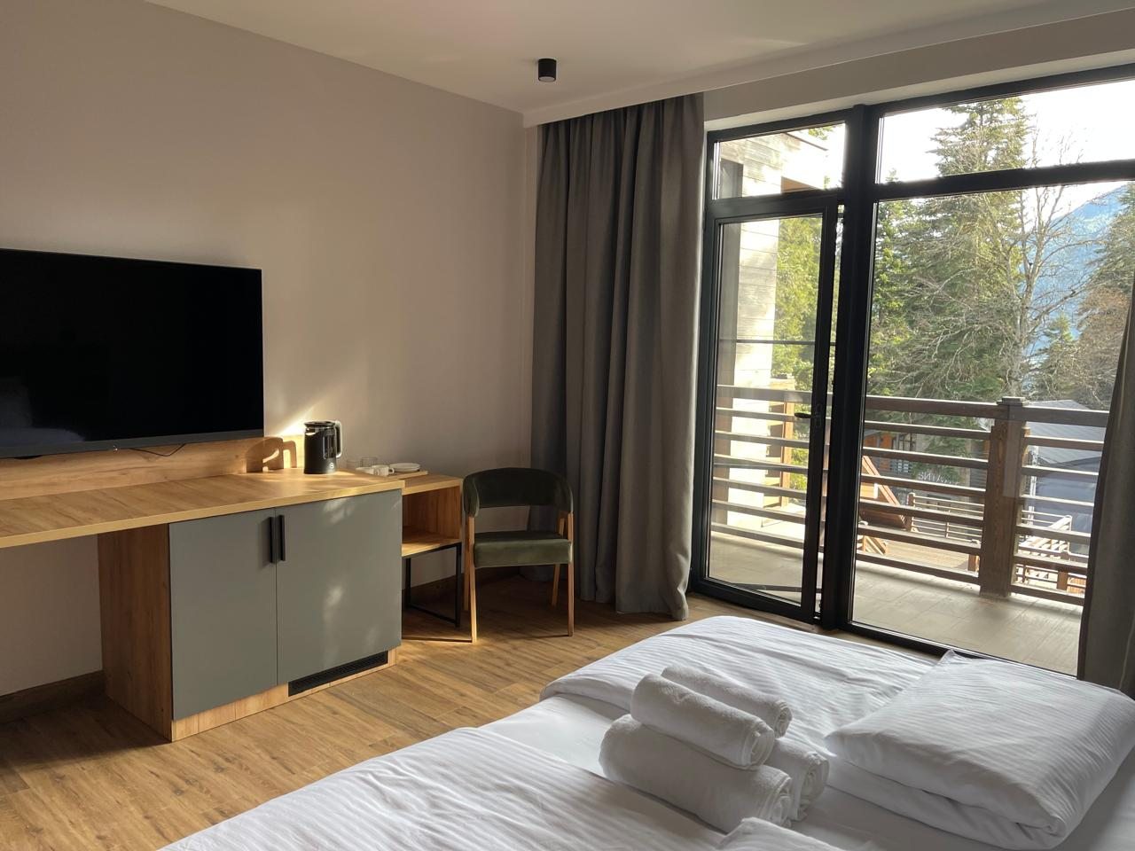 Среди дополнительных преимуществ — закрытая парковка с видеонаблюдением, доступ к сети Wi-Fi. Рядом — Древний камень X века и баня. Расстояние до ближайшего железнодорожного вокзала «Роза Хутор» — 80,3 км, а до аэропорта в Сочи — 107,5 км.