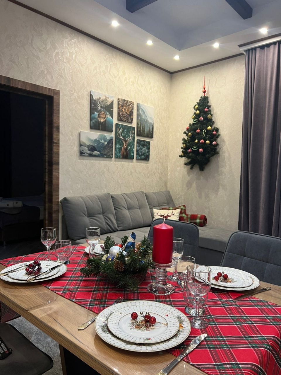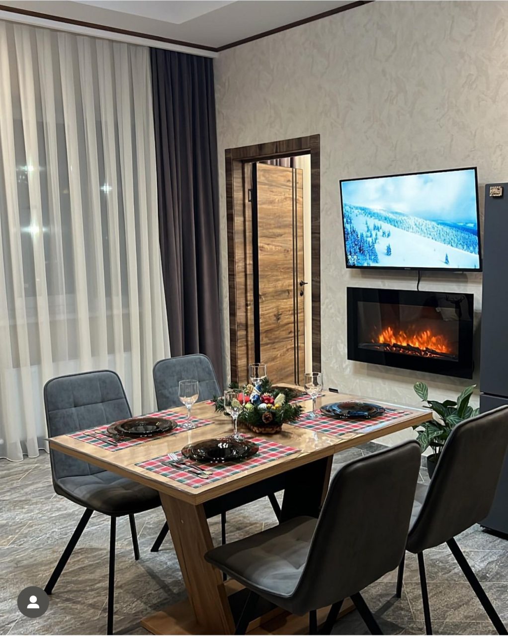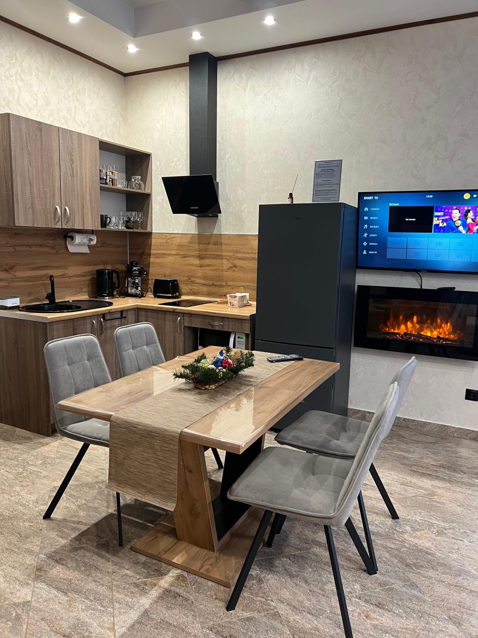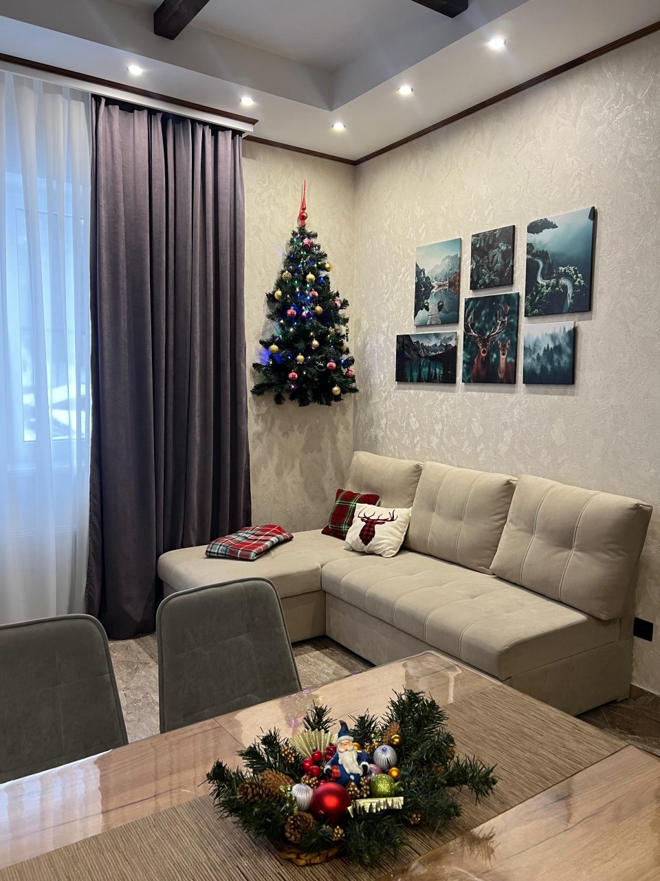 Современные и стильные номера состоят из трёх комнат: кухни-гостиной, двух полноценных спален с большим санузлом. Кроме того, присутствуют апартаменты «Трёхкомнатные 6 спальных мест», которые имеют все необходимое для комфортного размещения: раскладной диван, две большие двуспальные кровати, шкаф для одежды, столик, тумбочки, телевизор, большой санузле с душевой кабиной, феном, полотенцами, стиральной машиной и другими удобствами. А если вы занимаетесь спортом, то вам пригодится сушка для спортивного инвентаря и одежды, которая работает в зимний период. Также есть возможность заселения вместе с домашним питомцем.