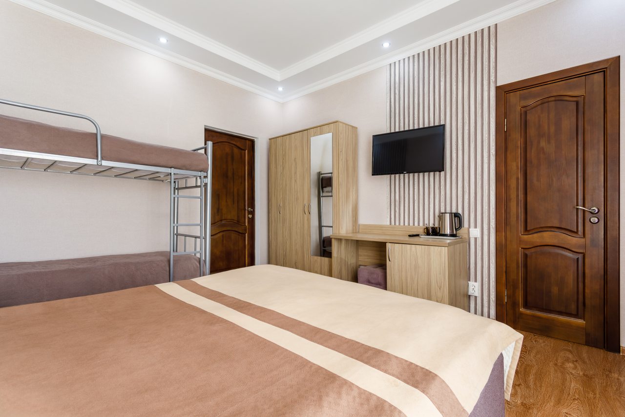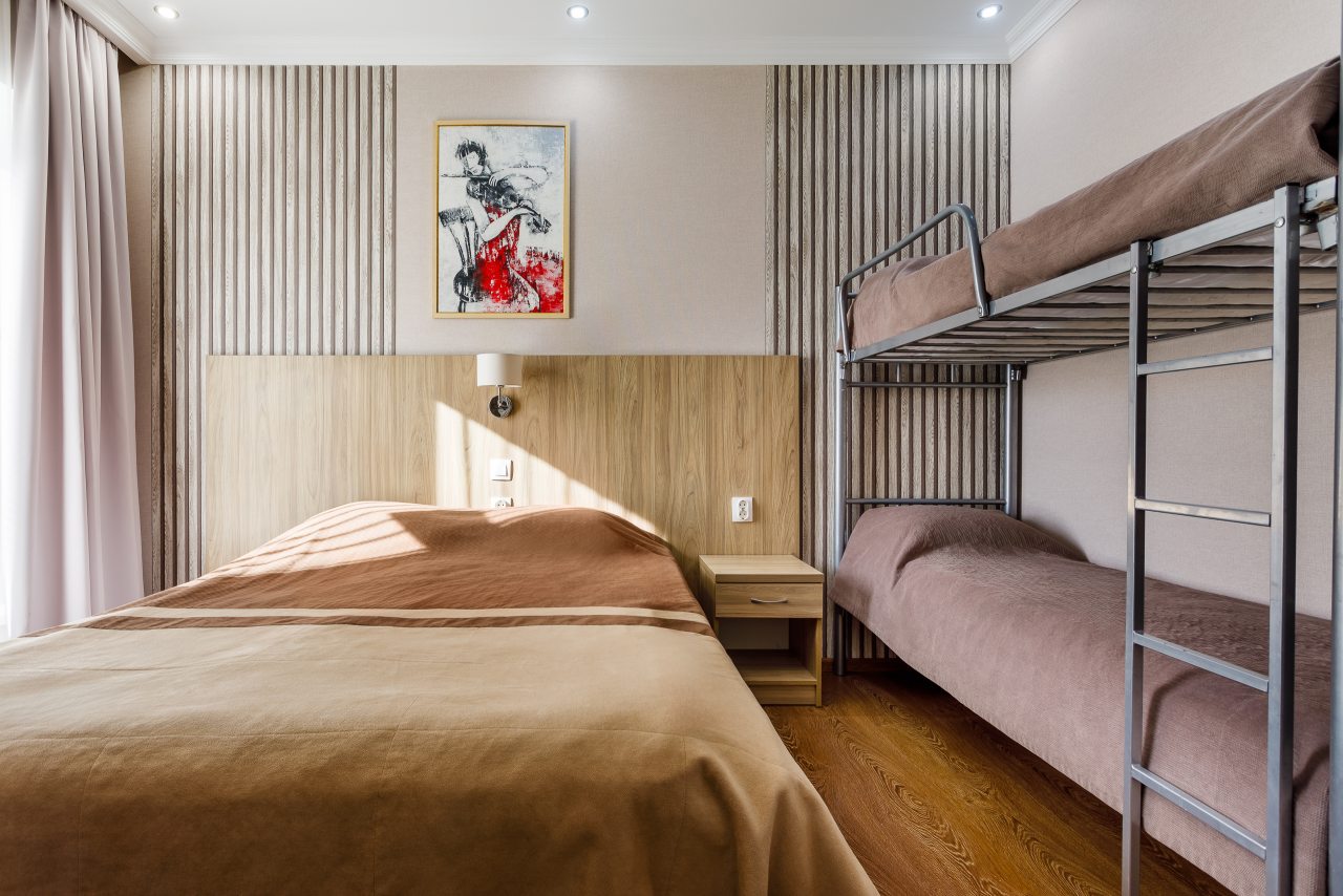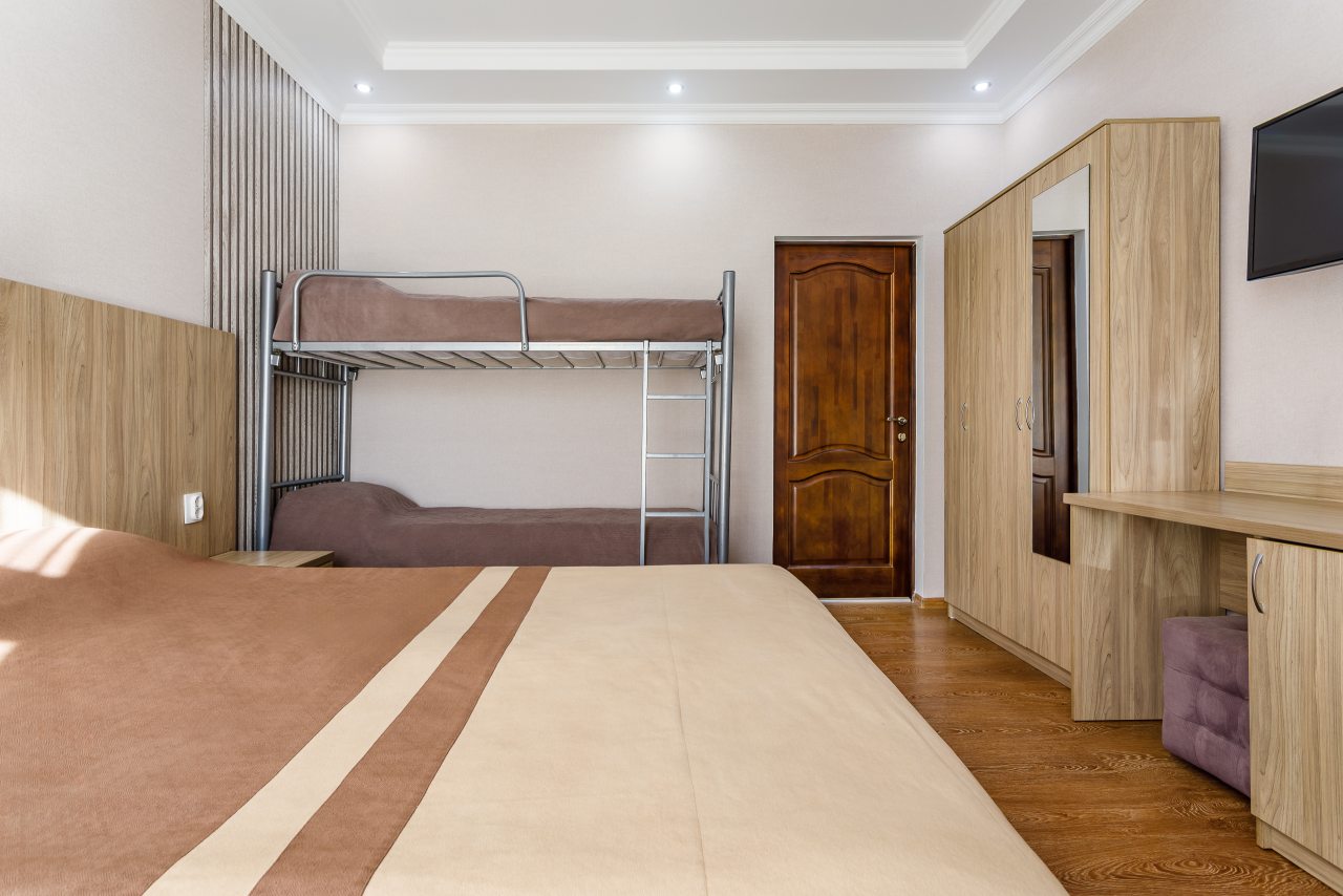 Дети до 7 лет размещаются бесплатно без предоставления доп. мест. Практически в каждой категории номеров есть доп. места, стоимость дополнительного места - 500 руб./сутки.