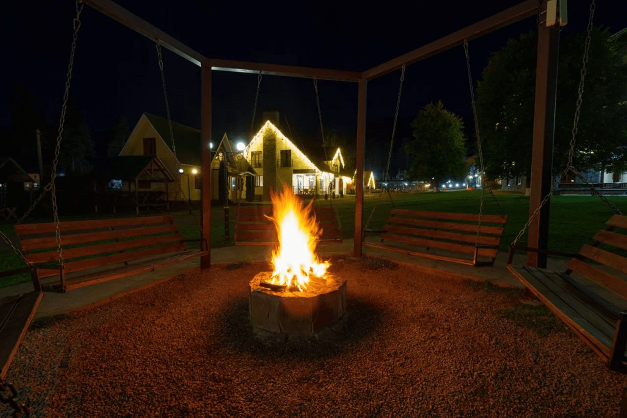 Среди дополнительных удобств — сушильная комната на 110 пар лыж и горнолыжной экипировки, крытые беседки в количестве 8 штук, детская и спортивная площадки, парковка, удобные качели у костра на свежем воздухе. Разнообразить досуг можно посещением конного клуба, сплавом по реке или экскурсией к водопадам. До ближайшего железнодорожного вокзала «Роза Хутор» — 81,3 км, а до аэропорта в Сочи — 108,5 км.