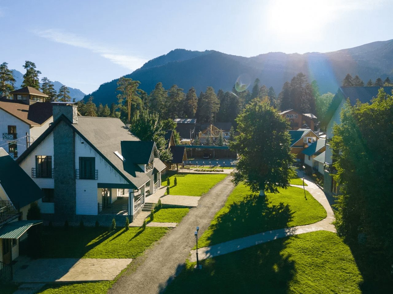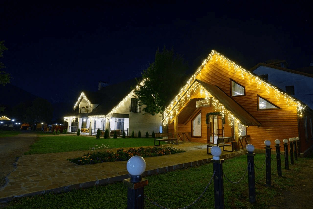 «Орлиное Гнездо» — это современная и комфортабельная гостиница в 70 соток, которая расположилась в живописном Архызе, в радиусе километра от реки Большой Зеленчук.