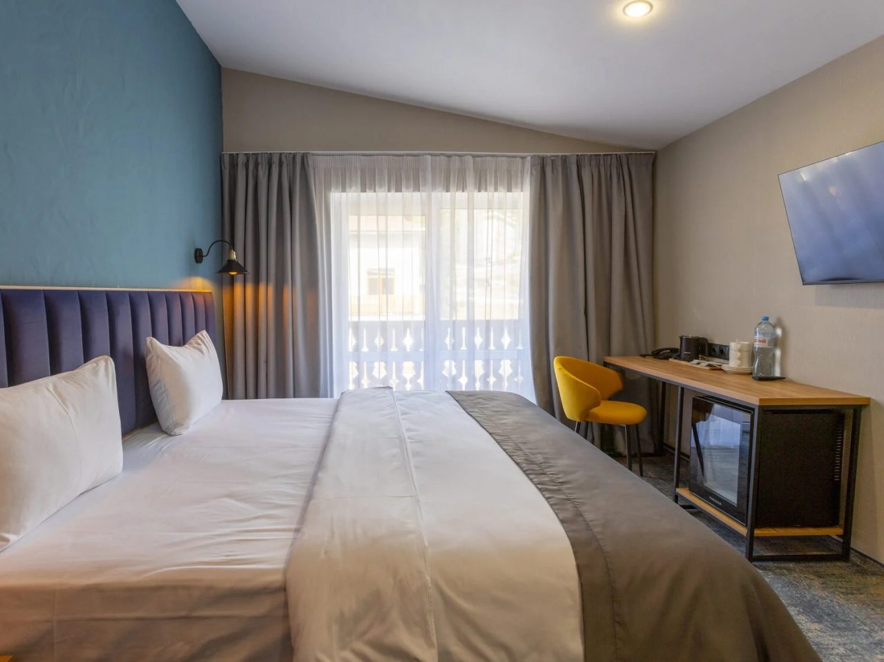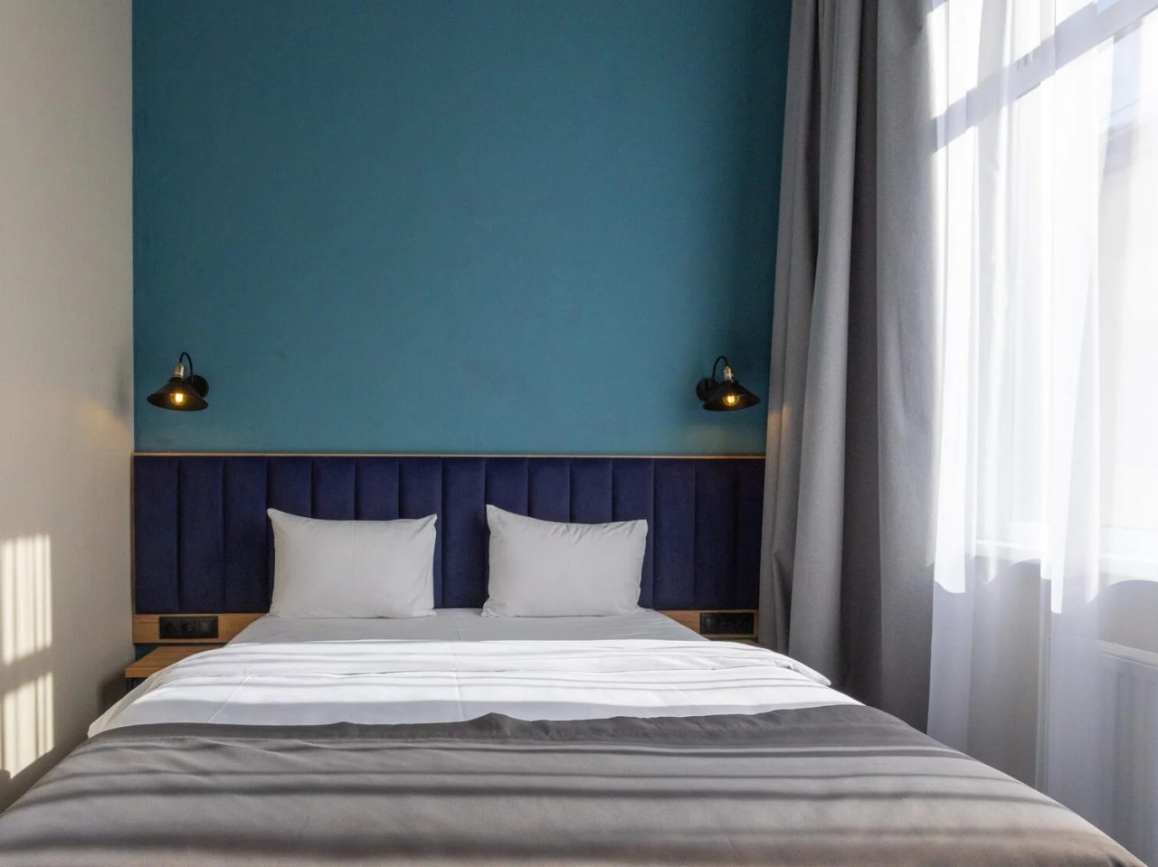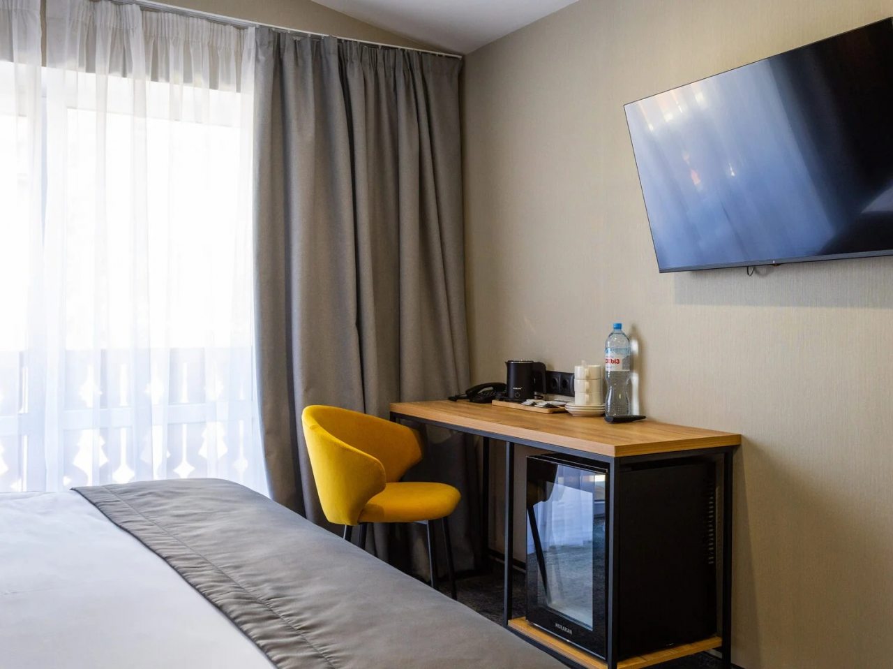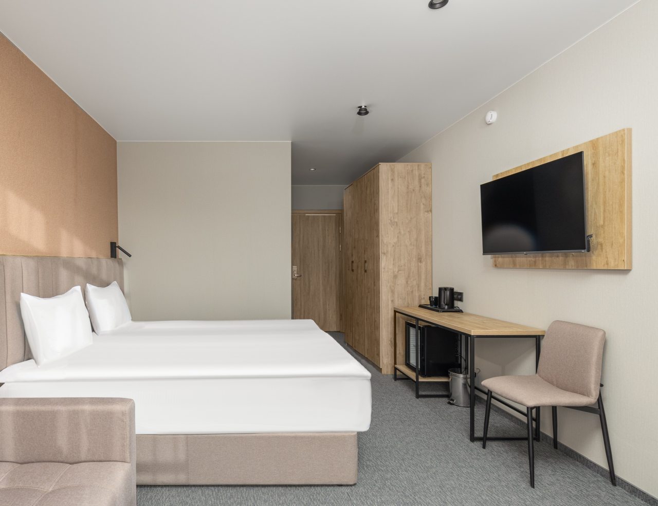 Здесь созданы все условия для максимального расслабления и комфорта. Номера оснащены двуспальной кроватью, подходят как для одноместного, так двухместного размещения. Каждый из них имеет стандартный набор техники и мебели: плазменный телевизор, рабочая зона с удобными стульями и сейф. Ванная комната укомплектована косметическими средствами и набором чистых полотенец.