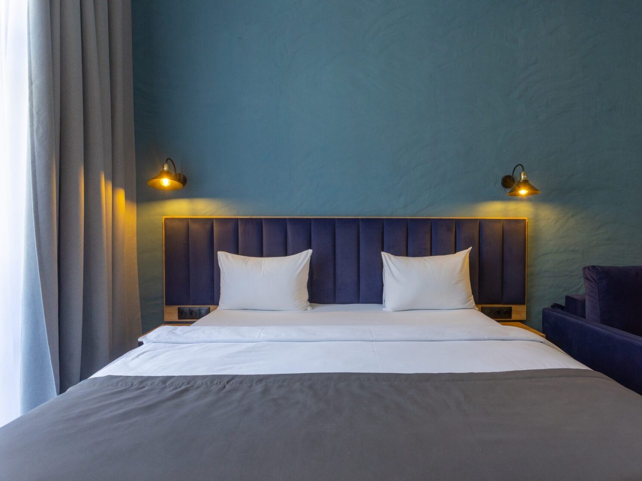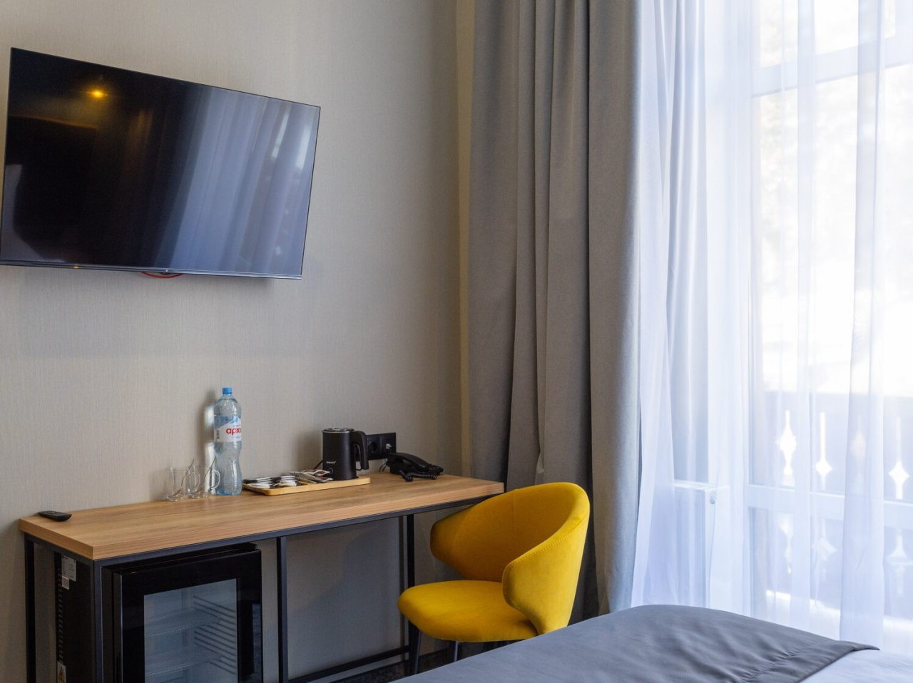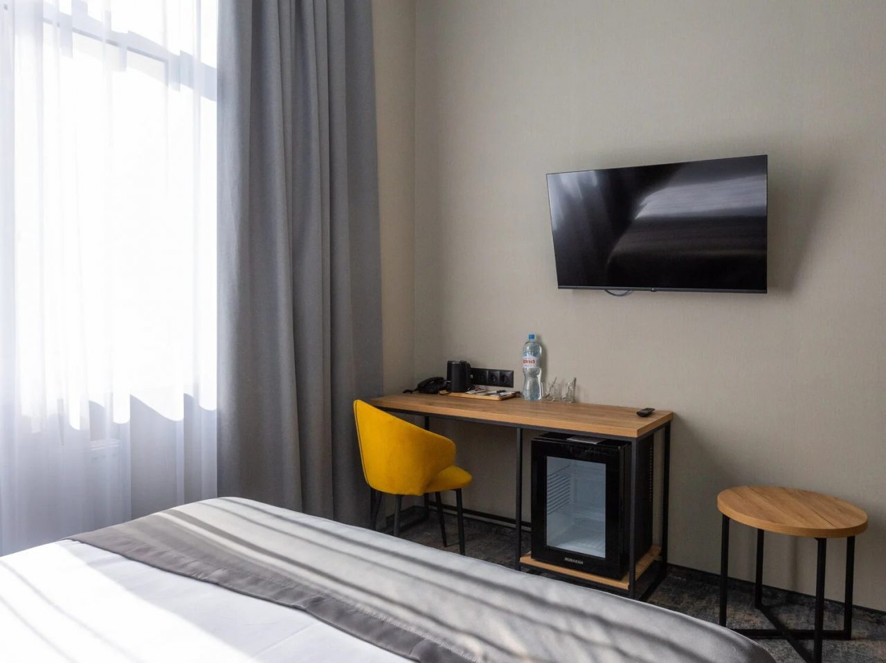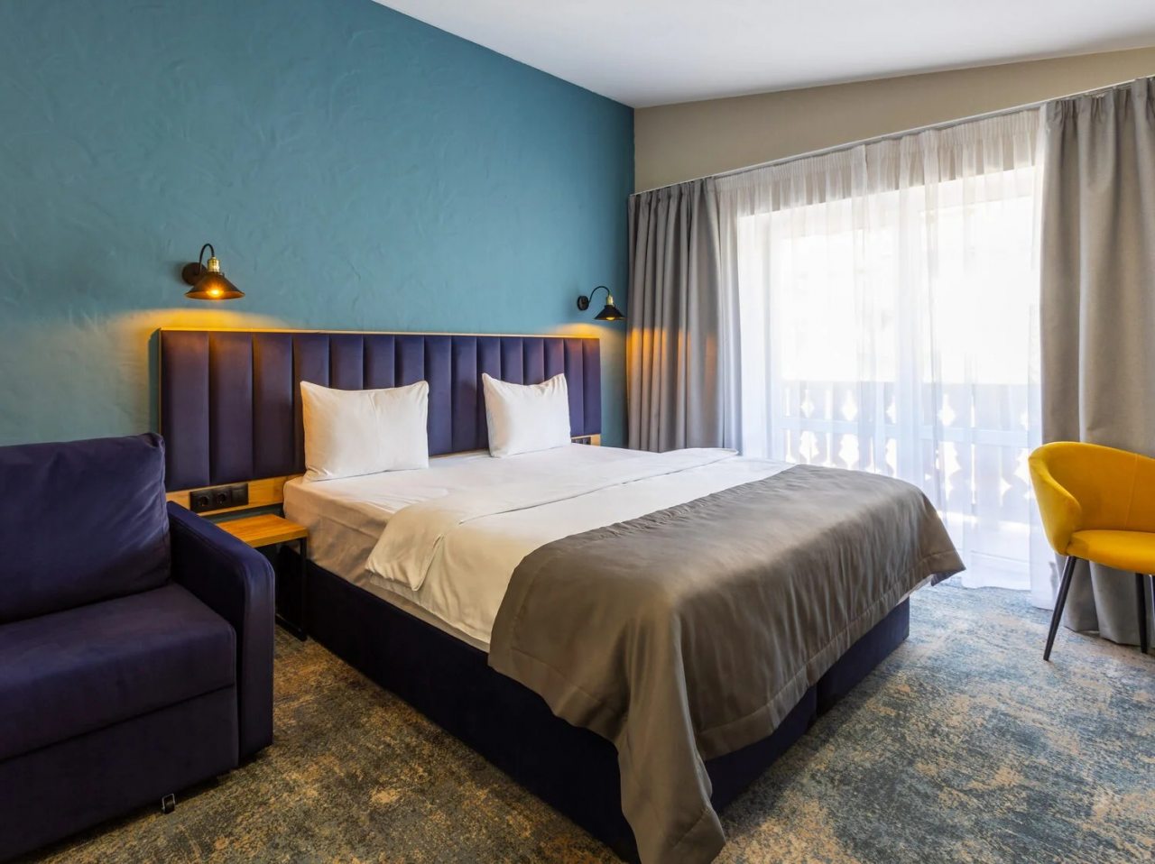 Здесь созданы все условия для максимального расслабления и комфорта. Номера оснащены двуспальной кроватью, подходят как для одноместного, так двухместного размещения. Каждый из них имеет стандартный набор техники и мебели: плазменный телевизор, рабочая зона с удобными стульями и сейф. Ванная комната укомплектована косметическими средствами и набором чистых полотенец.