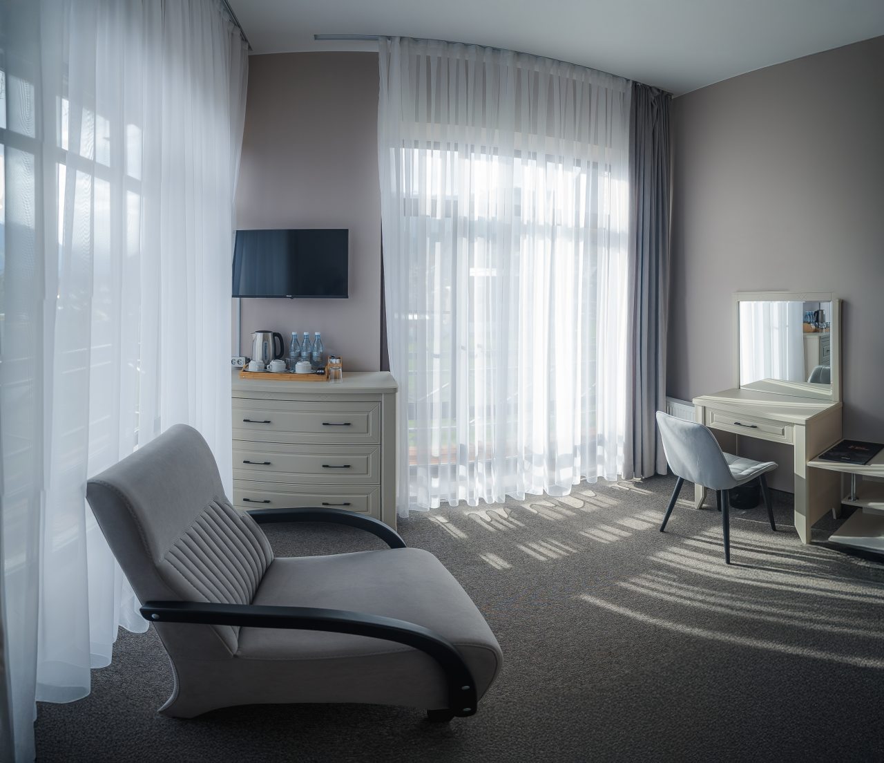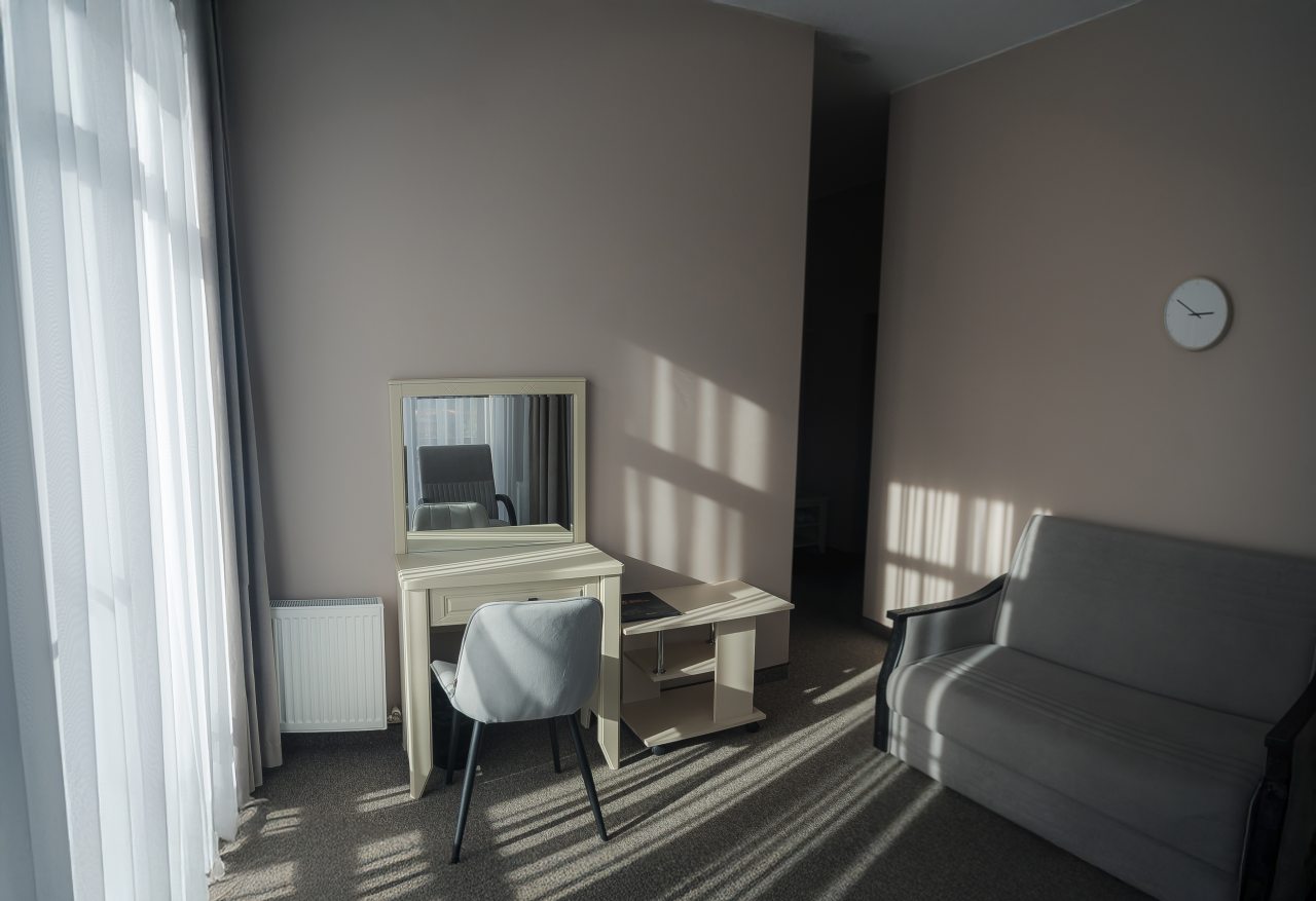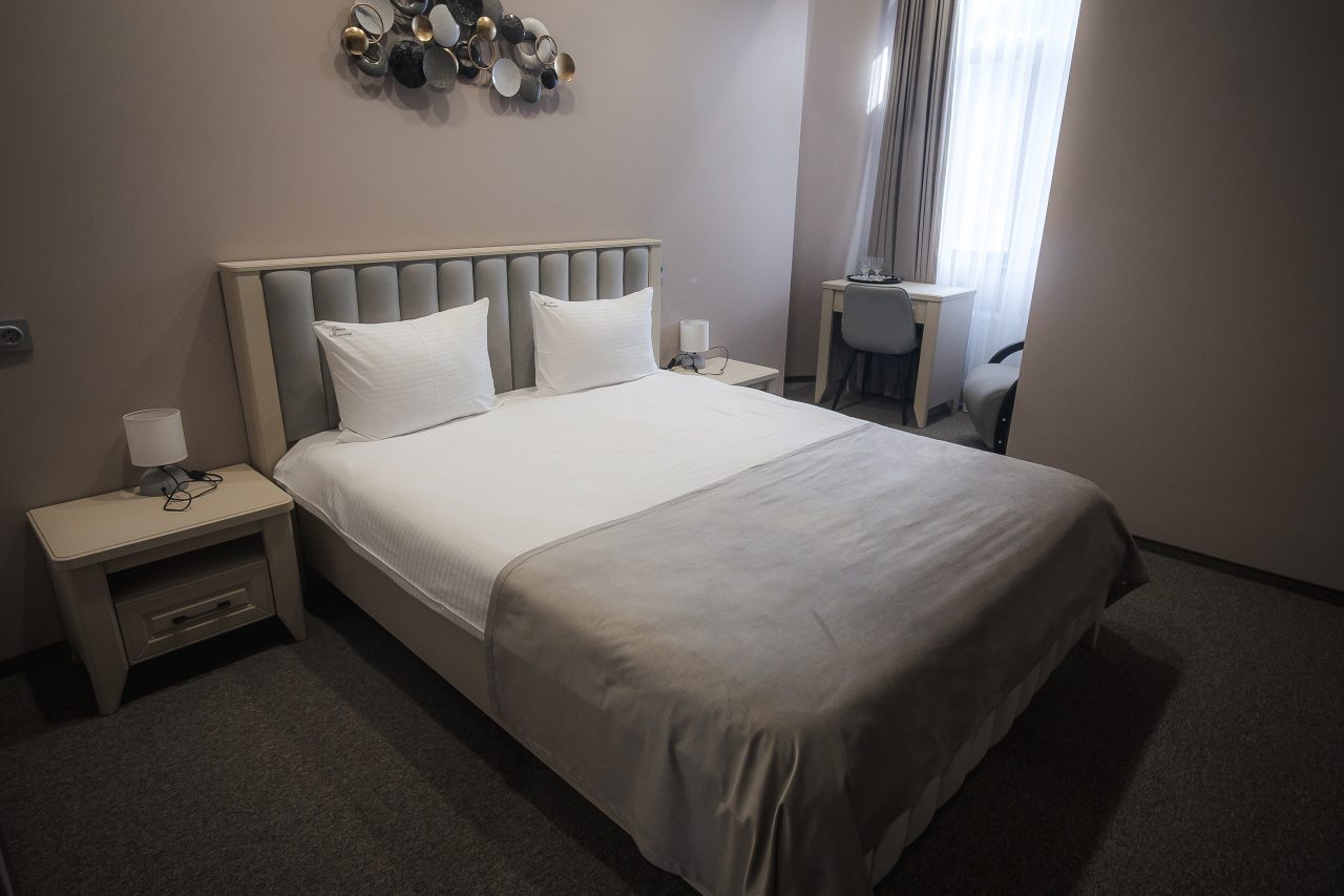 В номере вас ожидает качественная техника и мебель, в том числе удобная кровать с мягким изголовьем, прикроватные светильники, затемненные шторы, набор полотенец, индивидуальный санузел с душевой, феном и гигиеническими принадлежностями.