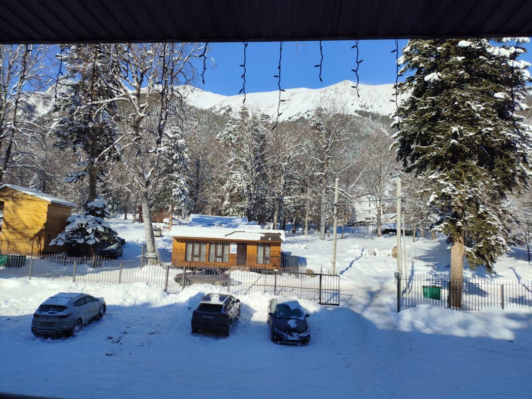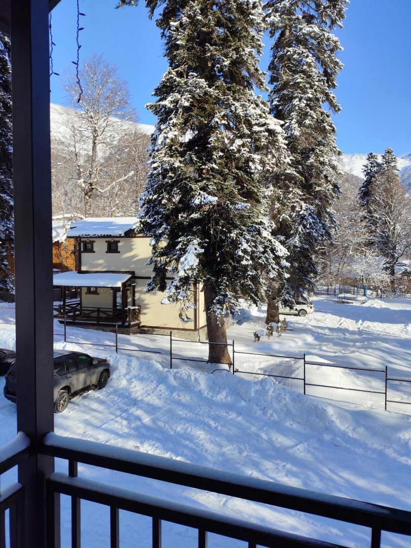Отель с сушкой для снаряжения и общей хорошей кухней. Подъёмник недалеко. Условия отличные, тепло и комфортно было зимой. В комнате огромный плазменный телек с приложениями с подпиской, на улице мангал и место у костра для релакса и бесед. Никаких претензий тут быть не может, потому что идеально.